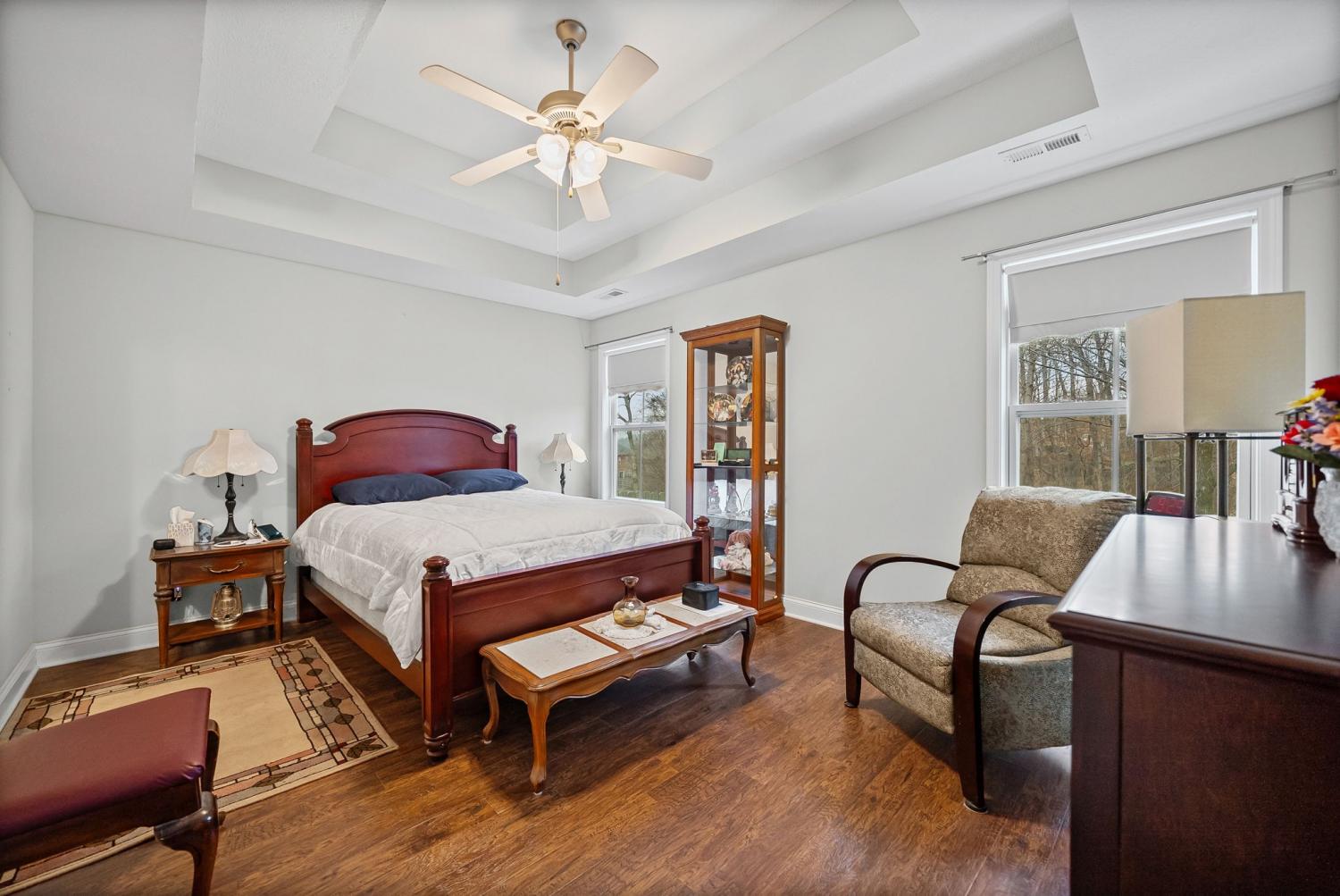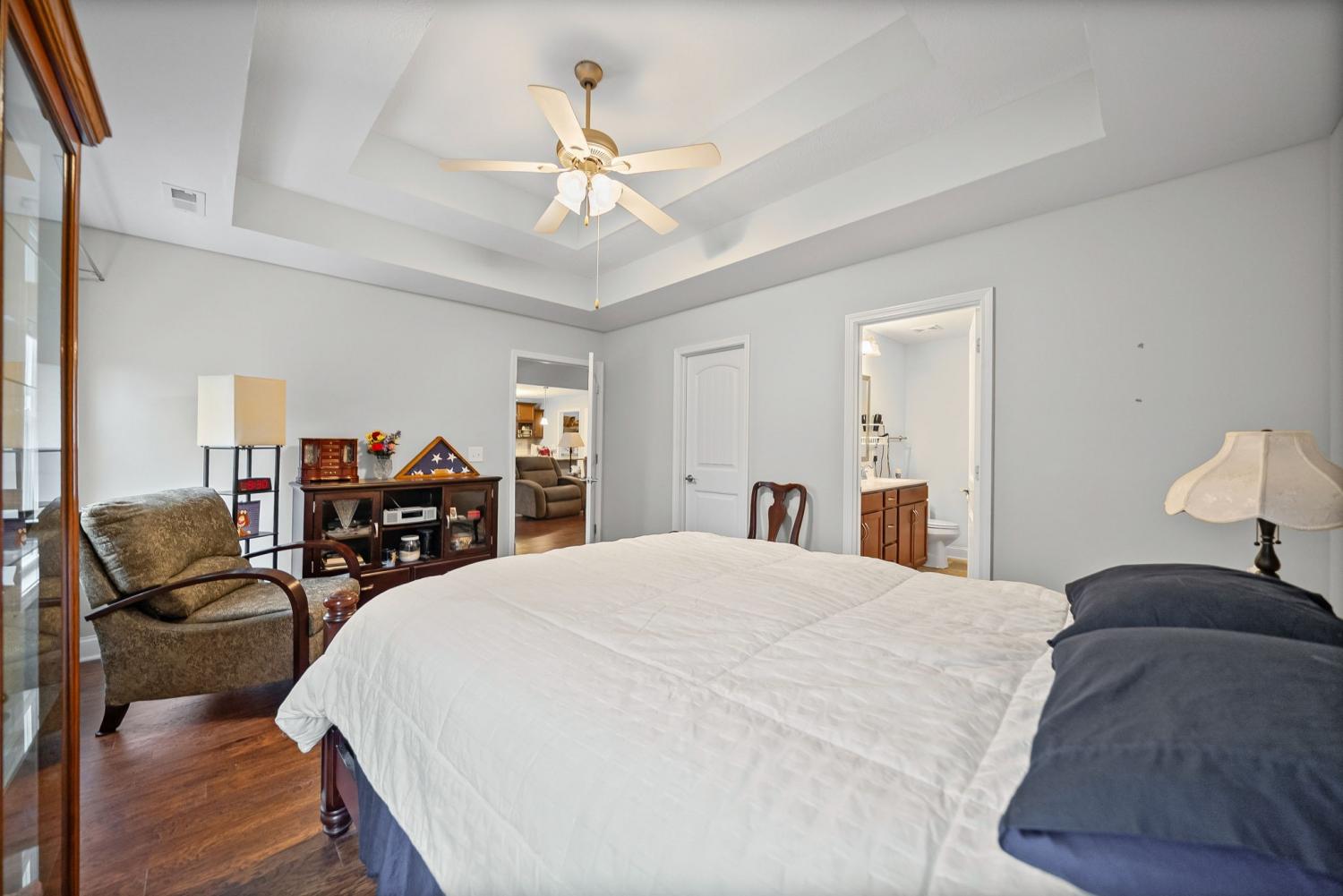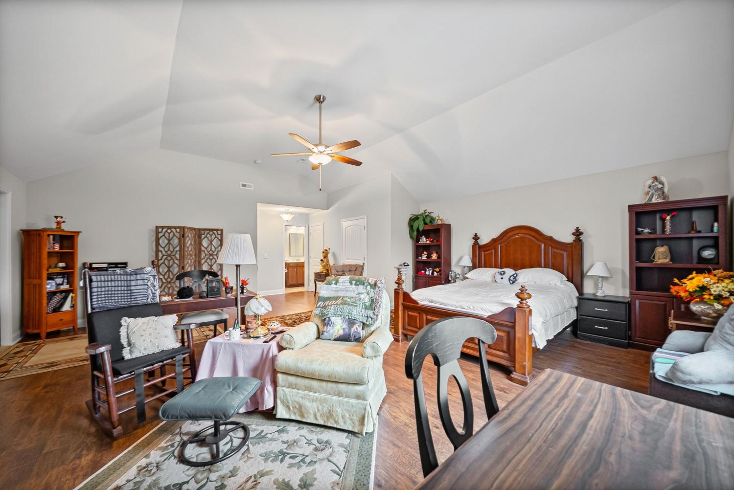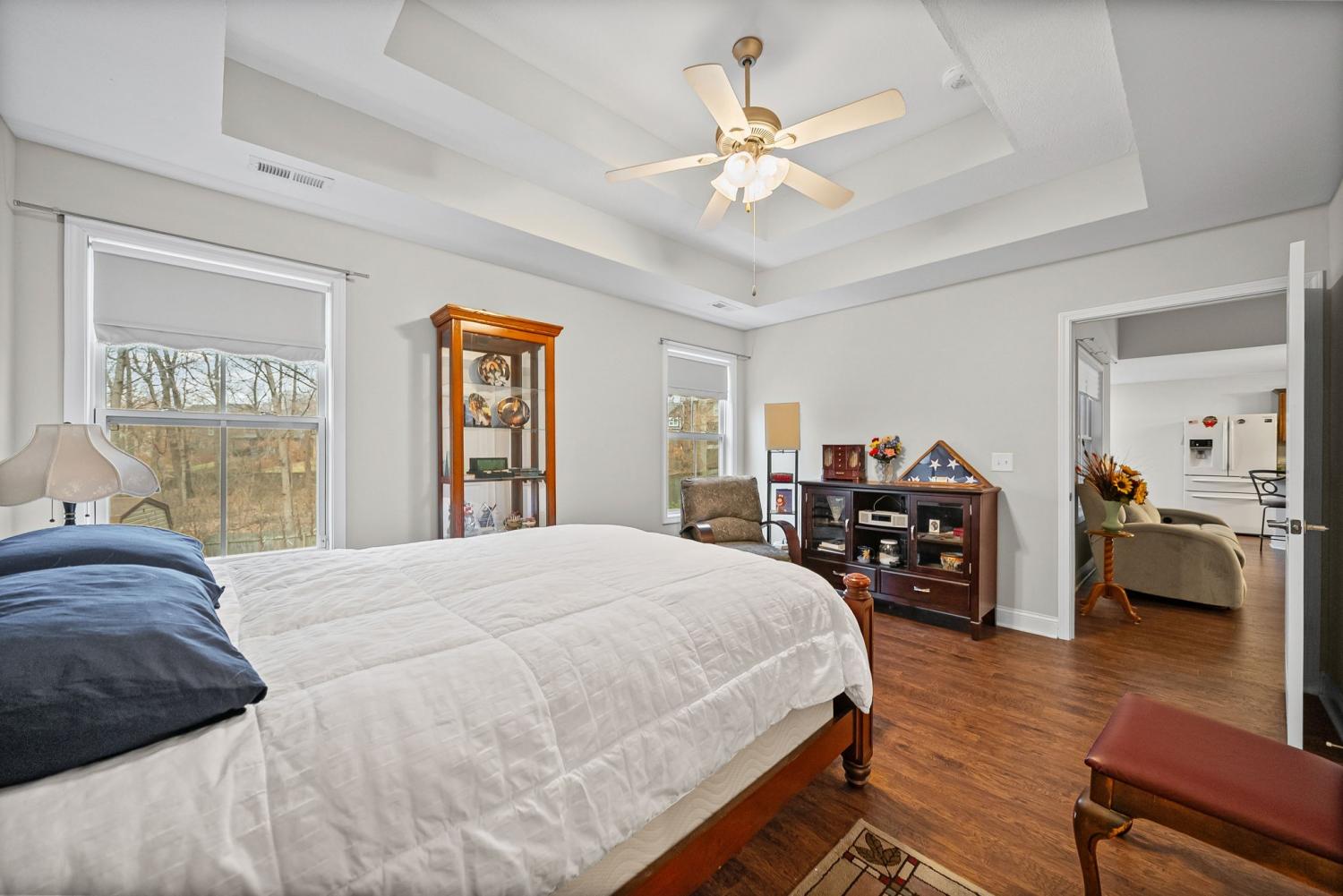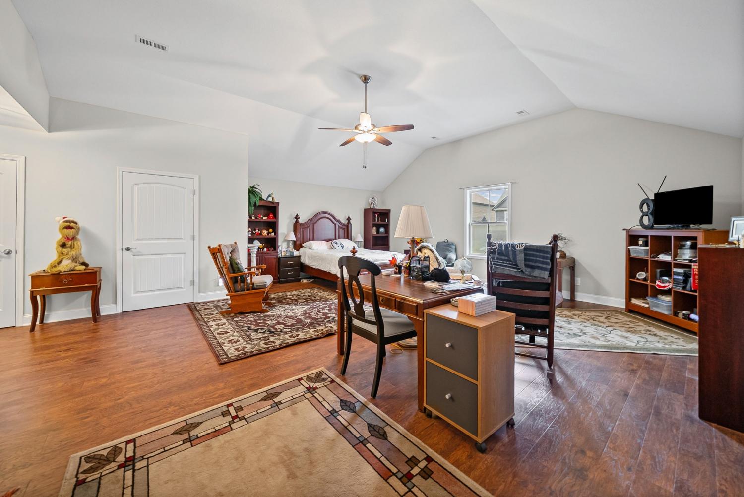 MOVE-IN READY & PRICED TO SELL! Welcome to 1168 Belvoir Ln, where comfort meets convenience in this thoughtfully designed home. Step through the foyer into an open floor plan. The first thing you'll notice are the stunning waterproof laminate floors that flow throughout the entire home, complemented by soaring ceilings that create a light and airy main living space. The spacious eat-in kitchen easily accommodates a six-piece dining set and features custom cabinetry with lower-level drawers, granite countertops, and a dedicated built-in chopping block. French Door refrigerator and all built-in kitchen appliances to convey. All three generously sized bedrooms are located on the main level. The primary suite offers a large walk-in closet and a low step-in shower for added convenience. Upstairs, the large bonus room is currently used as a fourth bedroom but is perfectly suited for a media room, home office, or hobby space. The second floor also includes a full bath and extensive attic space with potential to be finished into an additional room. This home includes smart lighting in the main full bath, keyless entry, stair lift that can stay or be removed, covered and screened-in back patio that leads out to the modified back lawn to include both upper and lower levels for more usable outdoor space. A custom garden wall is already in place, complete with an integrated watering system and a French drain. The beautifully manicured landscaping features Crepe Myrtles, Butterfly Bushes, Tennessee Irises, Clematis, and more. A battery-powered self-propelled mower and electric snow thrower also convey. Additional upgrades include a whole-house surge protector installed by CDE, providing extra peace of mind during storms, and an ADT security system with cameras on both the front and rear doors that will remain. This meticulously maintained property is truly move-in ready—don’t miss your chance to make it yours!