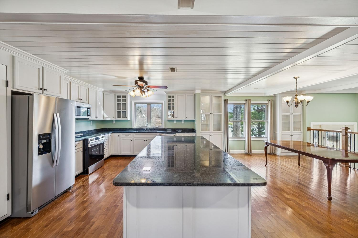 Discover comfort, natural beauty, and sweeping water views in this stunning 4-bedroom, 3-bath home set on 1.98 serene acres. Along with a fully finished walkout basement that doubles as a mother-in-law suite, this property offers exceptional space and versatility. Lower level has private exterior entrance, ideal for guests, in-laws, or a separate retreat. Includes its own bedroom, full bath, dinette area, family room with abundant storage along with a stone wood burning fireplace. Would be perfect spot for that man cave you've always wanted. Take in the scenery from the covered deck, the perfect place to unwind and soak up the peaceful surroundings or from your screened in porch. Inside, the main level features an open-concept layout that seamlessly connects the kitchen, dining, and living areas—all framed by gorgeous water views. Multiple living spaces offer flexibility for a formal living room, den, or additional gathering areas to fit your lifestyle. The master suite is a true escape, featuring its own private walk-out covered deck overlooking the water—perfect for morning coffee or evening sunsets. Two charming stone wood-burning fireplaces bring warmth and character to both the main level and the lower level. A detached 336sqft workshop w/ 1-car garage and a lean-to provides excellent storage and workspace for projects, hobbies, or equipment. Nestled in a peaceful, established neighborhood, this home offers tranquility, space, and views that truly set it apart.