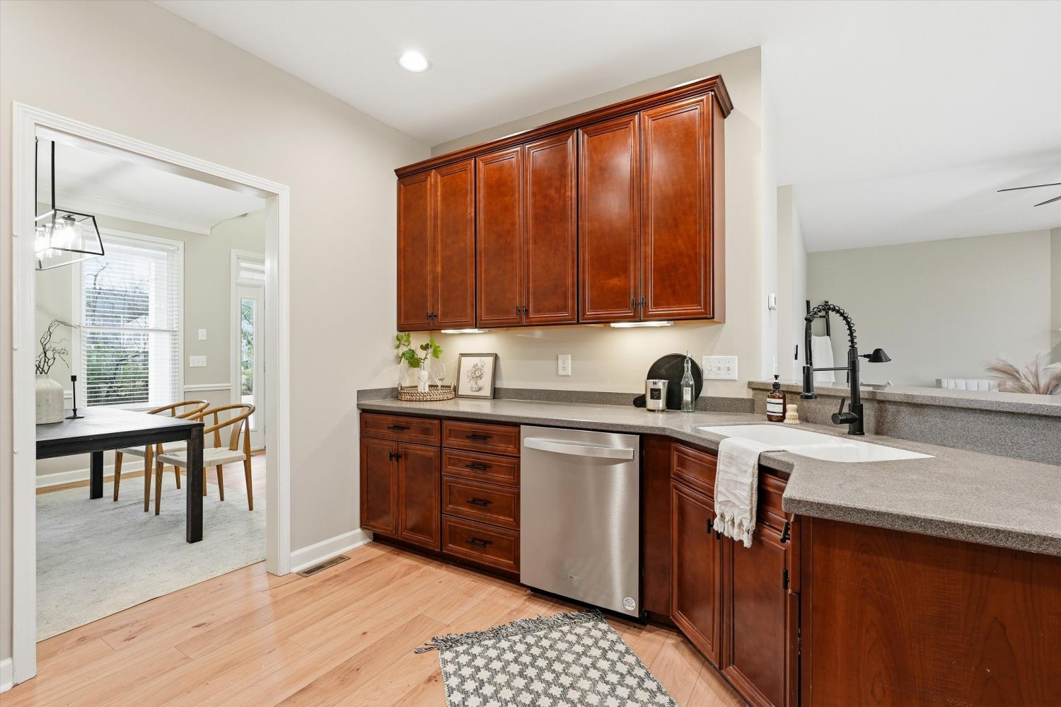 First time on the market! Discover this beautifully maintained, all-brick Frank Batson–built home nestled on a desirable corner lot in a quiet cul-de-sac in The Meadows of Seven Points—just 2 miles from picturesque Percy Priest Lake. Here, charm and convenience meet in one of Hermitage’s most sought-after locations. Offering 4 bedrooms and 3 full baths, this inviting residence is filled with thoughtful design and timeless comfort. The second-floor primary suite is a true retreat, featuring a tray ceiling, two walk-in closets, and a spa-inspired bath with a walk-in shower. The home’s two staircases, upstairs laundry room, and open, light-filled layout with soaring ceilings provide both everyday practicality and an effortless sense of space. A welcoming covered front porch sets the tone upon arrival, while a long aggregate driveway leads to the convenient side-entry attached garage. Inside, the home has been tastefully refreshed with new LVP flooring, newer carpet, updated lighting, modern bath fixtures, new cabinet hardware, and cohesive matte-black door hardware throughout. The kitchen features a gas stovetop, and the cozy living area is centered around a warm gas fireplace. Storage is abundant, with several deep closets and expansive unfinished attic areas to accommodate all your needs. The community enhances the lifestyle even further with walking trails, sidewalks, and HOA-hosted events throughout the year. Enjoy the perfect balance of tranquility and access—close to the airport, downtown Nashville, and the shopping and dining of both Mt. Juliet and Hermitage, yet wonderfully tucked away from city noise. Move-in ready and thoughtfully updated, this first-time-offered home highlights the renowned craftsmanship of Frank Batson and showcases the very best of Hermitage living.