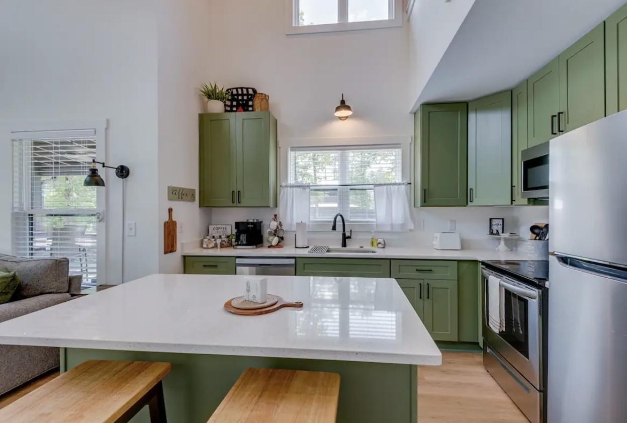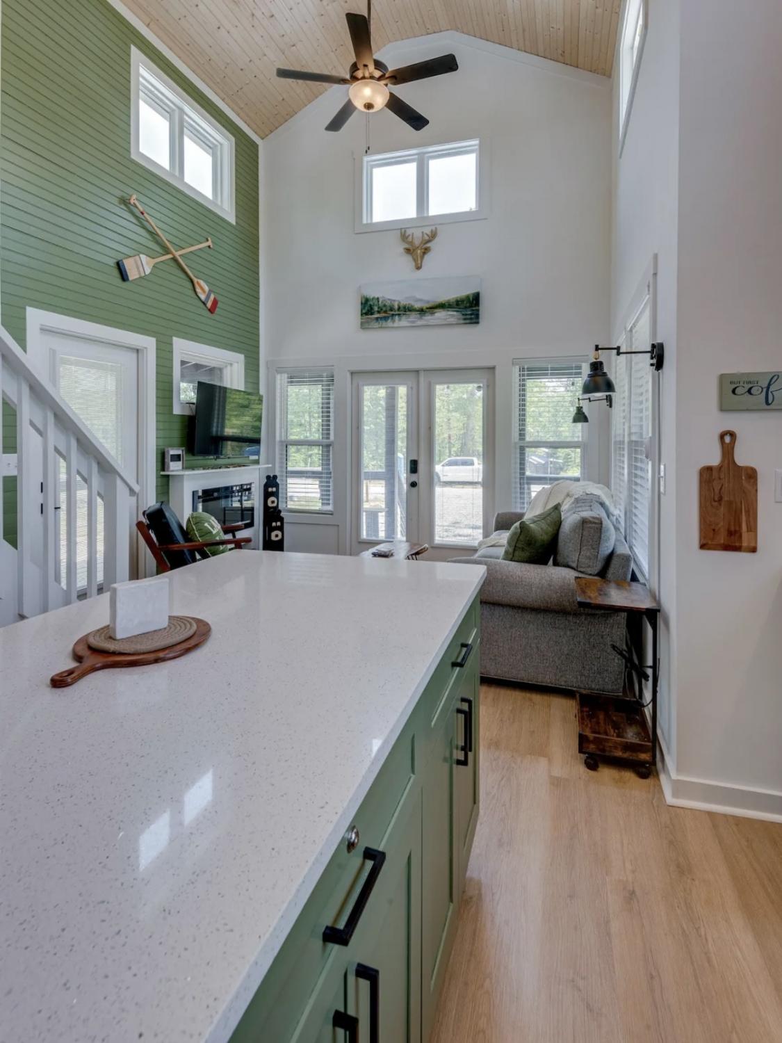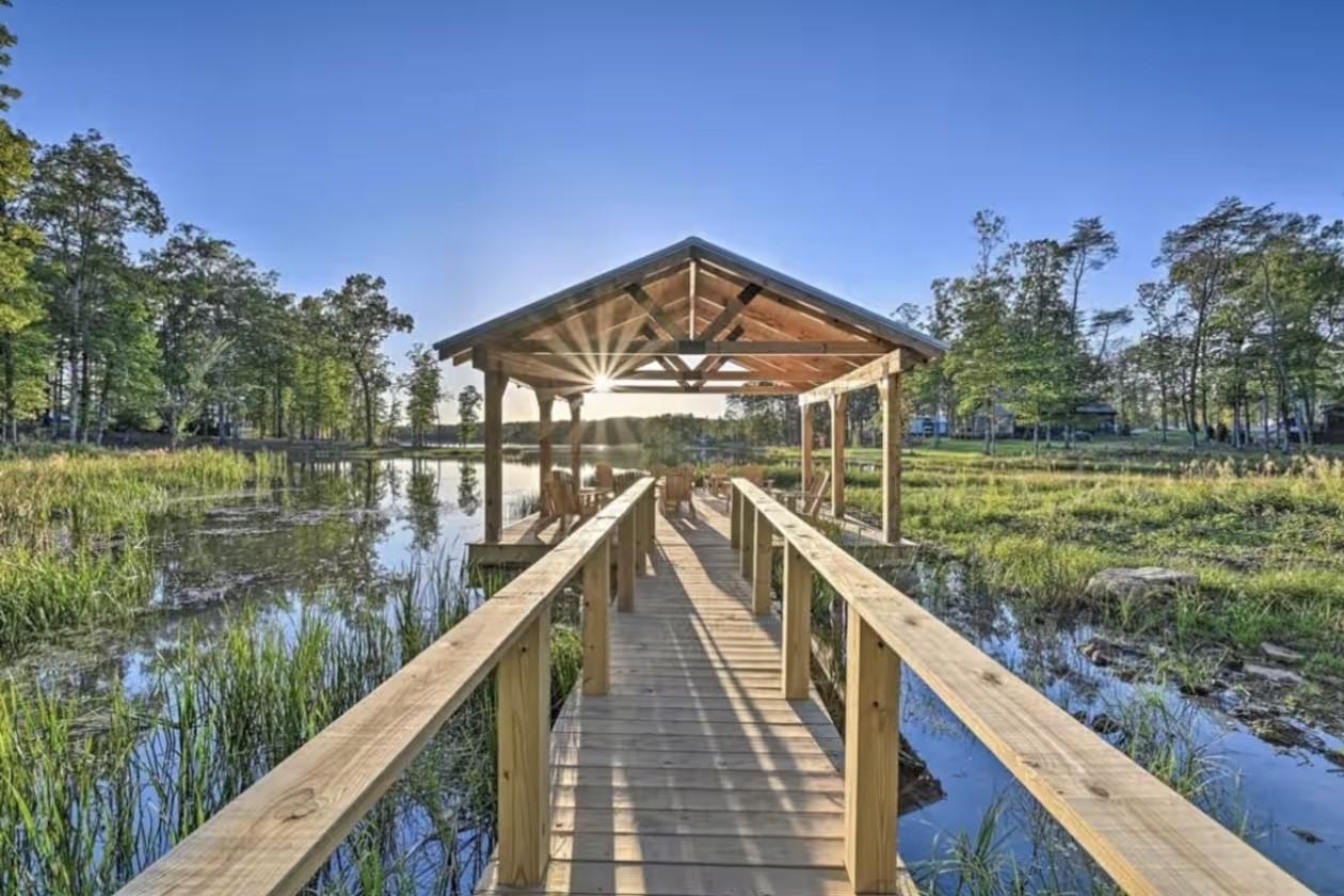 The ultimate in luxury! This lovely site-built cottage has a wrap-around porch, a huge loft that serves as a second bedroom, and a king-size bed with a ceiling high enough that you don't have to crawl to get to it! Two bunks, two FULL bathrooms, and a master bed downstairs! Waterview of the community's lovely lake during the fall and winter. It's a wonderful way to get away from daily life.
