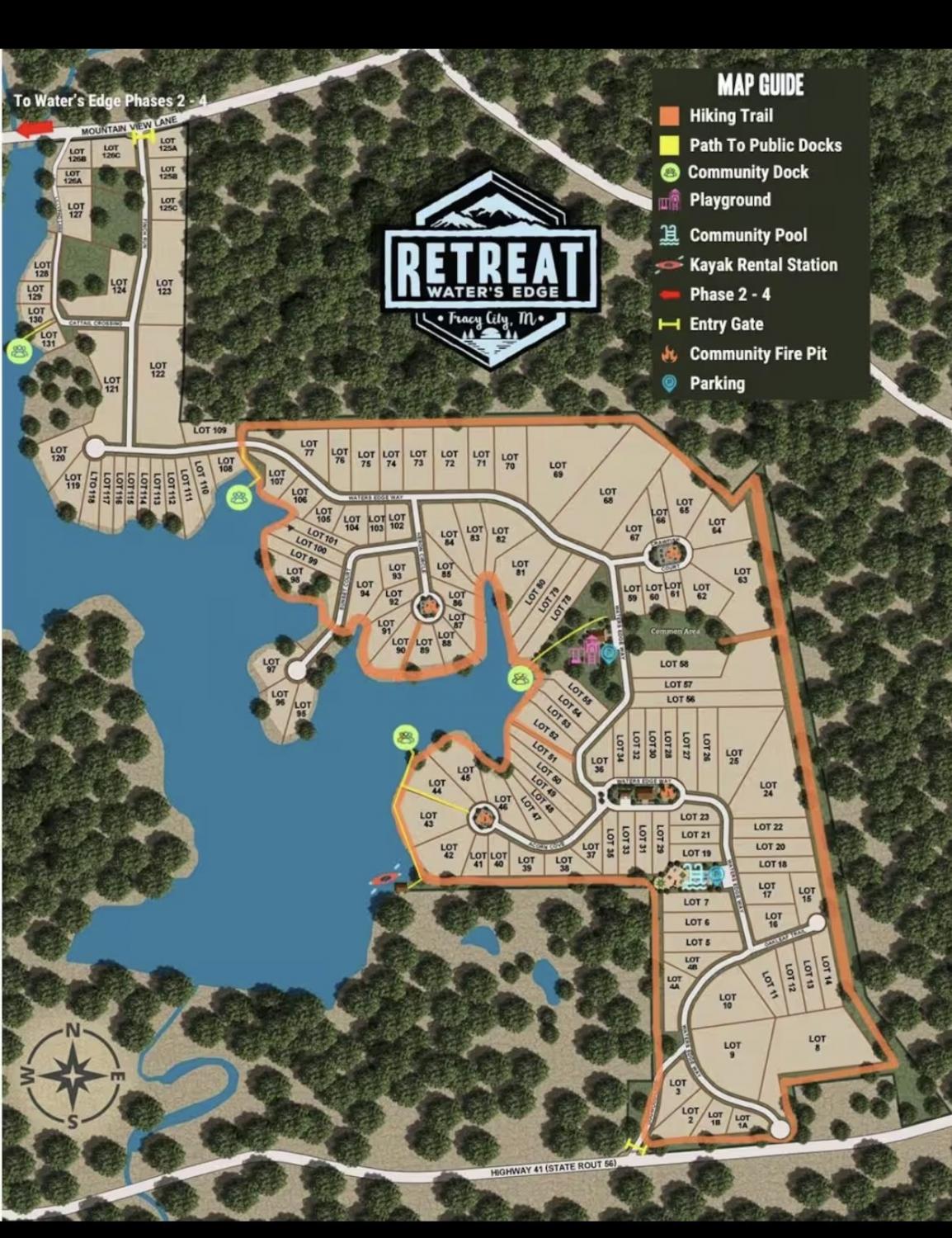 Take I-24 to Monteagle exit 134. Head towards Monteagle/Tracy City. Turn left on Hwy 41, Go past the main entrance to hwy 56 turn left go till see mount view rd on left and turn go over bridge and turn into Hemlock Cove. 64 Hemlock Cove is on the right.