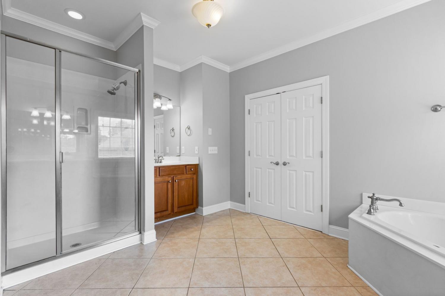 Appraisal (8/14/25) for $1,200,000 by request. INCREDIBLE home, LOCATION and TOP-RATED schools. NEWLY painted interior including closets, NEW carpet in the 4 large bedrooms and 20'x14' bonus room. Extensive HARDWOODS on main except primary bedroom has new carpet, HARDWOOD stairs, HARDWOOD 2nd floor halls to bedrooms and HARDWOOD 18'x12' 2nd floor LOFT/OFFICE. Spacious PRIMARY BEDROOM on main floor is 27'x15' and has adjoining OFFICE. PRIMARY bathroom has spa tub, separate shower, 2 vanities, door for toilet and 14'x9' closet. 2ND PRIMARY BEDROOM UP has spa tub, double vanities and walk-in closet. The 3 FULL baths, 2 GUEST baths and UTILITY ROOM have tile floors. Former model with arched dining room doorways, trey ceiling and beautiful millwork thru-out. 2 story foyer (16'x6'), 2 story Great Room (19'x19') with 5 windows of light and fireplace is open to the kitchen. The 20'x15' eat-in KITCHEN has granite counters, double oven, 22 cabinets, corner rotating cabinet, 8 drawers, pantry, island, 7 recessed lights, etc. This home is one of 2 homes in the cul-de-sac. The rest of the cul-de-sac is common area (mowed) and trees that no one else seems to use as it is at the back of Jackson Lake subdivision. Half a block away (past the gazebo) is the walking trail, playground, fire pit and fishing dock. Jackson Lake is for enjoying nature by foot or kayaks, canoes, paddle boats (non-motorized). Enjoy the 18'x5' front porch (newly painted shutters and front door), or the 32'x17' back patio. The home backs to one neighbor and has a gorgeous wall for privacy and landscaping.