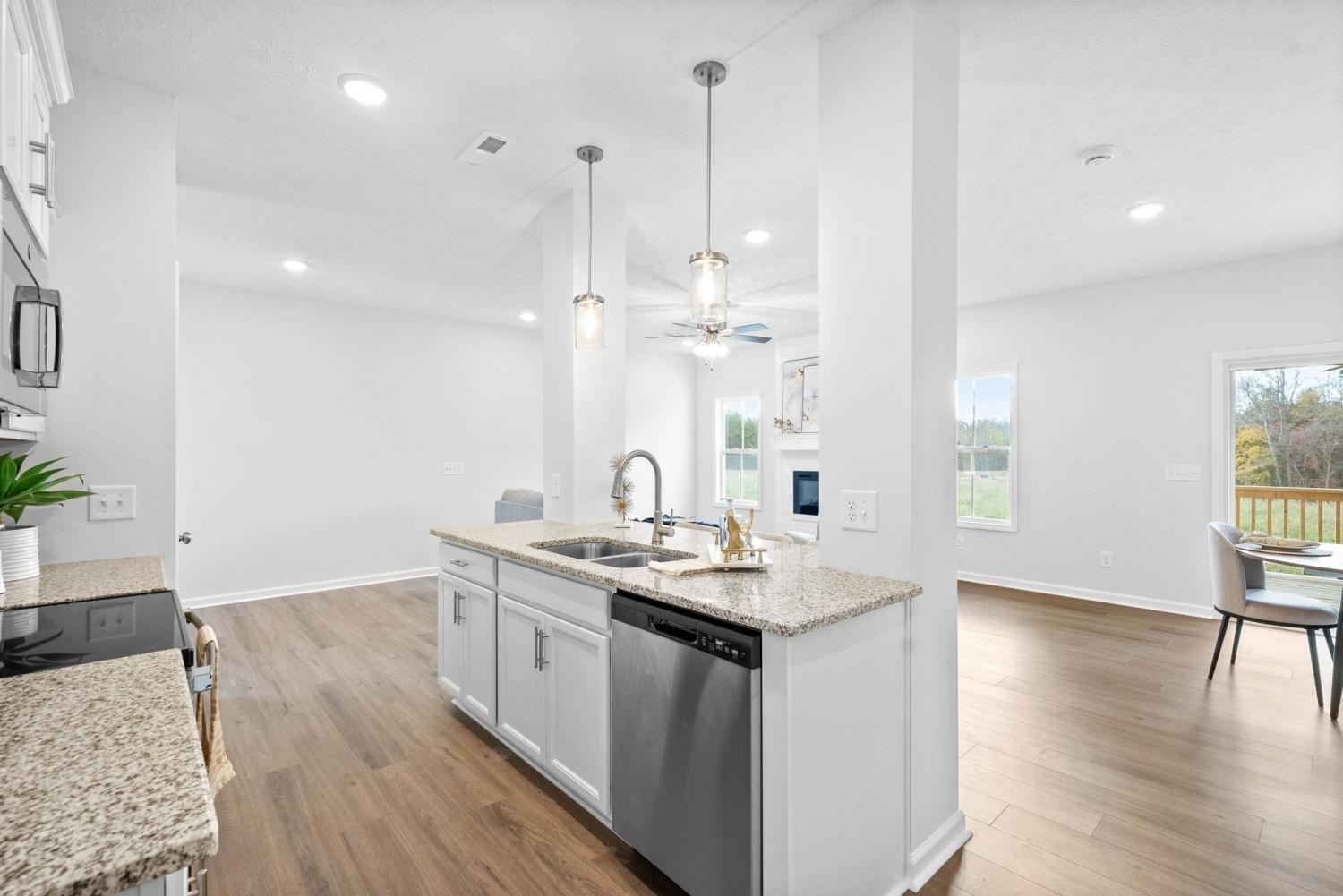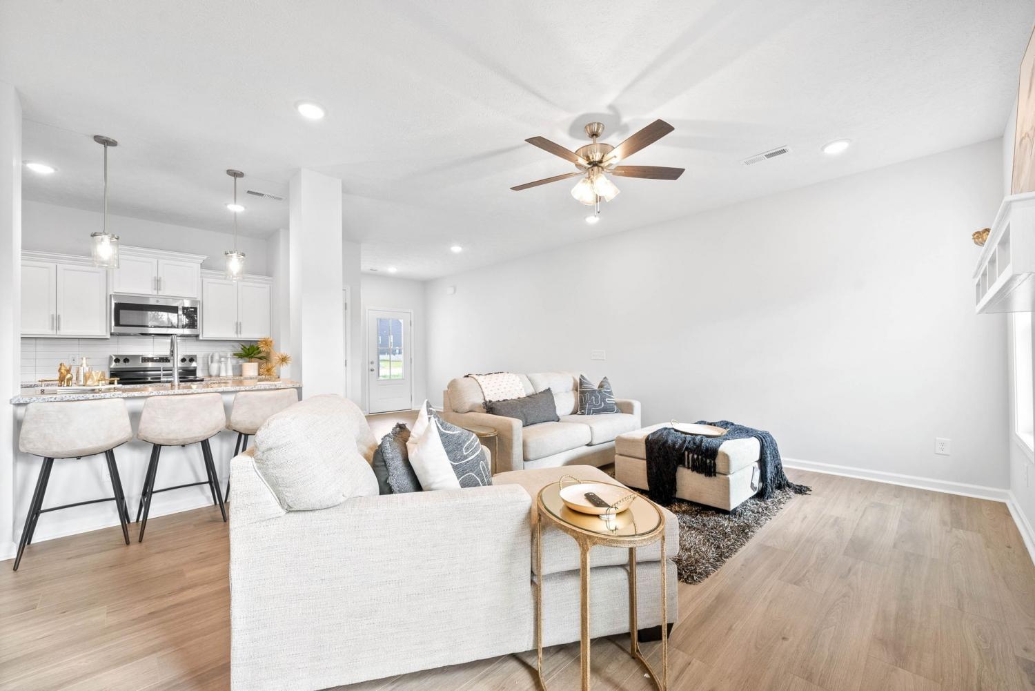 As a second-generation local builder, proudly rooted in Clarksville, Grant Construction builds more than homes—they build community. With exceptional craftsmanship, a retired veteran on the crew, and a commitment to supporting our military service members, they stand behind every project with a reliable warranty you can trust. Grant Construction homes are Built for Life. This is a stunning three-bedroom, two-and-a-half-bathroom open-concept home. Step into a world of comfort with a kitchen featuring an open island that seamlessly connects to the great room & dining area. Revel in the stylish sophistication of the kitchen's sleek backsplash, luxurious granite countertops, and stainless-steel appliances. Fridge, Blinds & Washer/Dryer INCLUDED!! Unwind in the great room, complete with a trendy shiplap electric fireplace. Upstairs, discover three spacious bedrooms nestled next to a conveniently located laundry room, adding a touch of practicality to your everyday routine. The primary ensuite boasts a fully tiled shower and a magnificent walk-in closet, providing a private sanctuary for your personal oasis. Step outside to your backyard covered space, the perfect setting to enjoy the beautiful scenery. Located conveniently near Exit 11 making your commute to Nashville or Ft Campbell a breeze.