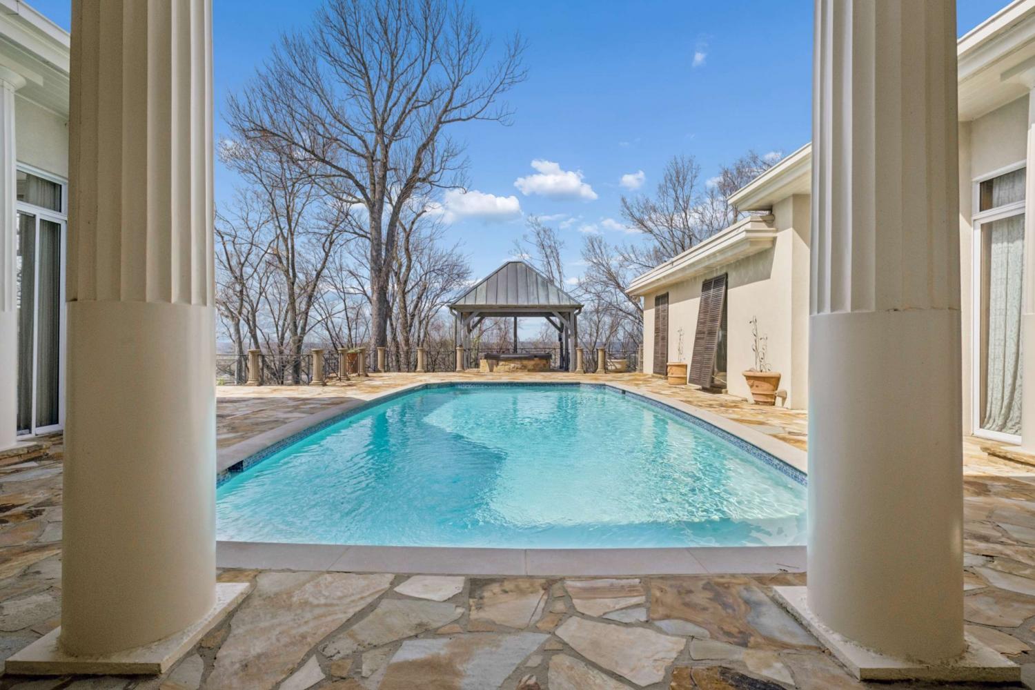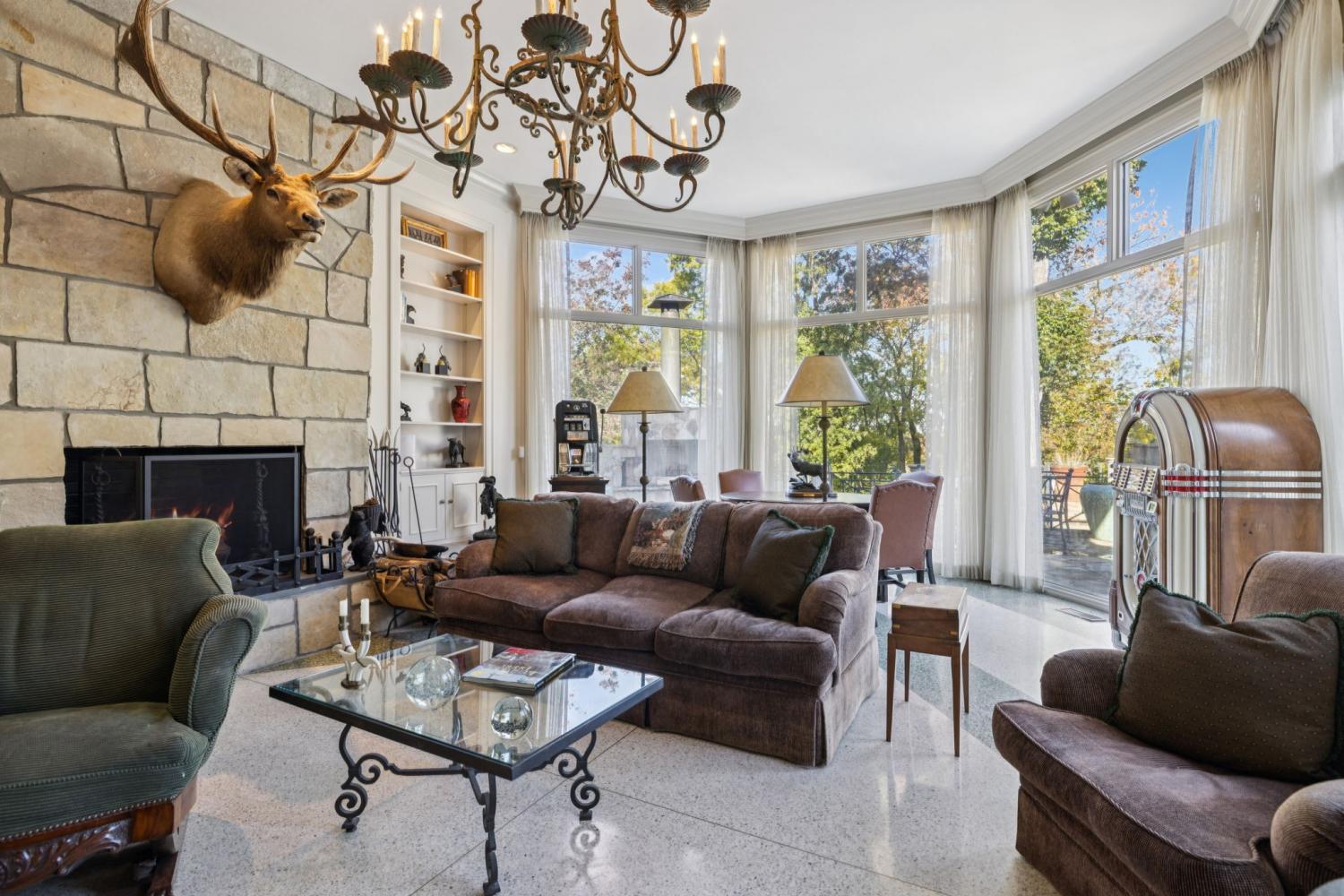 Rare & remarkable* Nestled on 15 secluded wooded hilltop acres, this single-story home offers a private oasis* Gated* This home has been loved by its current owner for 30 years* Abundant natural light throughout* Courtyard saltwater pool* Step into the expansive foyer with soaring 16-foot ceilings* Spacious kitchen with Quartz countertops~ updated in 2016* Enjoy the 10-foot ceilings* Den with Terrazzo flooring and a bold stone fireplace + a cherry-paneled study with floor-to-ceiling windows that flood the space with sunlight* The impressive owner’s suite includes five closets, highlighted by a luxurious cedar walk-in closet* Dual bathrooms (one renovated in 2023 w/ steam shower and heated tile flooring)* 3-Car garage complete with an epoxy floor* Do not hesitate*