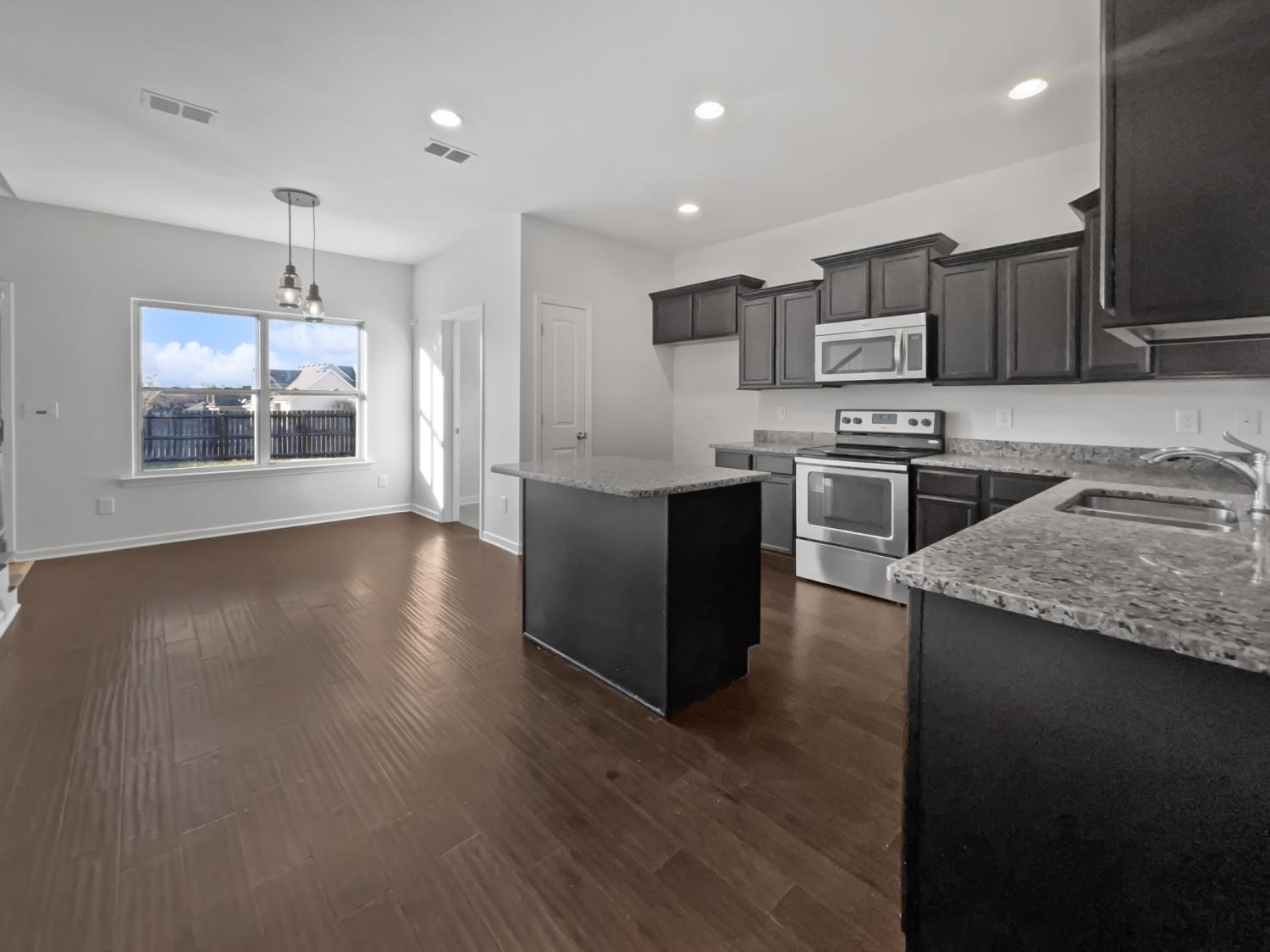 Open-concept living with fresh paint throughout. Enjoy a spacious kitchen featuring stainless steel appliances and a center island, perfect for cooking and entertaining. The primary suite is conveniently located on the main level and offers a separate shower. Outside, a privacy-fenced backyard provides the ideal space for relaxation or play.