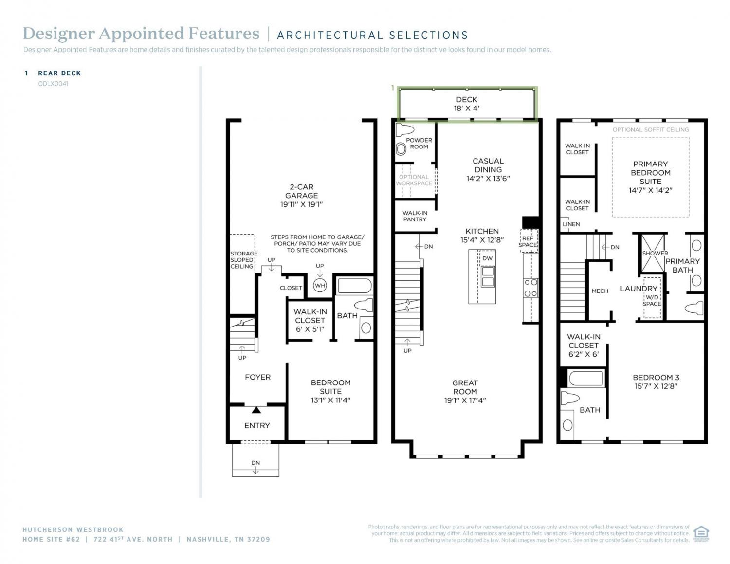 This stunning Hutcherson townhome is complete with three bedroom suites, a two car garage, and designer appointed finishes through out! Walk through the front door into the quaint foyer. Down the hall you will find access to the rear attached garage and a hall closet. The first floor bedroom suite includes a walk-in closet and en suite bath with tub/shower. The second floor is perfect for entertaining with its open concept floorplan and natural light! The great room seamlessly connects to the kitchen and casual dining area. Enjoy the deck off the casual dining area that offers additional entertaining space. The second floor also contains a walk-in pantry and powder room. The primary bedroom, located on the third floor, is complete with dual walk-in closets, dual vanity sinks and a private water closet. The third floor also holds a spacious secondary suite and laundry space. This community offers Enjoy the perks of living in Nashville by exploring various local bites and breweries. Fat Bottom brewery is only a short walk away and L&L market is a few minutes drive away and holds many local shops and restaurants! Call our on site sales consultant today to set up your appointment, learn about our current incentives and walk this beautiful homesite! *Photos and renderings are for representational purposes only*