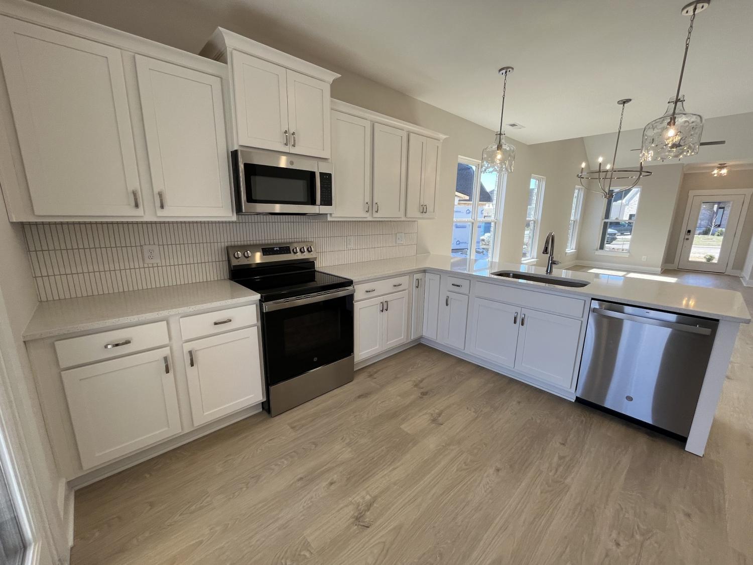 Discover single-level living in this all-brick 3-bed, 2-bath, 1,422 sq ft new construction home in Westfield Ph 2A. The inviting design includes an open-concept kitchen with quartz countertops, designer tile backsplash, upgraded cabinetry, and stainless appliances, flowing into a spacious dining area and living room with a gas fireplace. Durable laminate flooring enhances the main living spaces, while bedrooms offer plush carpet and baths are finished with tile. The primary suite features a tiled shower and dual vanities, with two additional bedrooms providing versatility. Neutral paint colors, upgraded finishes, and a 2-car front-entry garage complete the home. Located in the sought-after Westfield community, residents enjoy access to a pool and convenience to Station Camp schools, shopping, and major commuter routes. Ask about our available builder incentives!