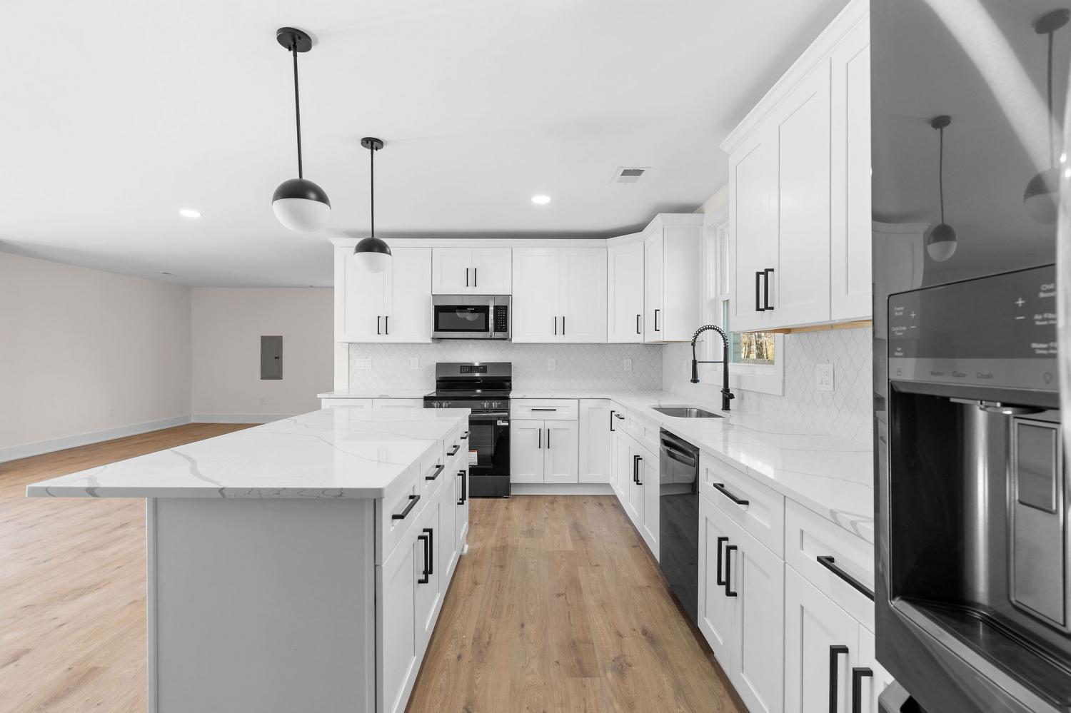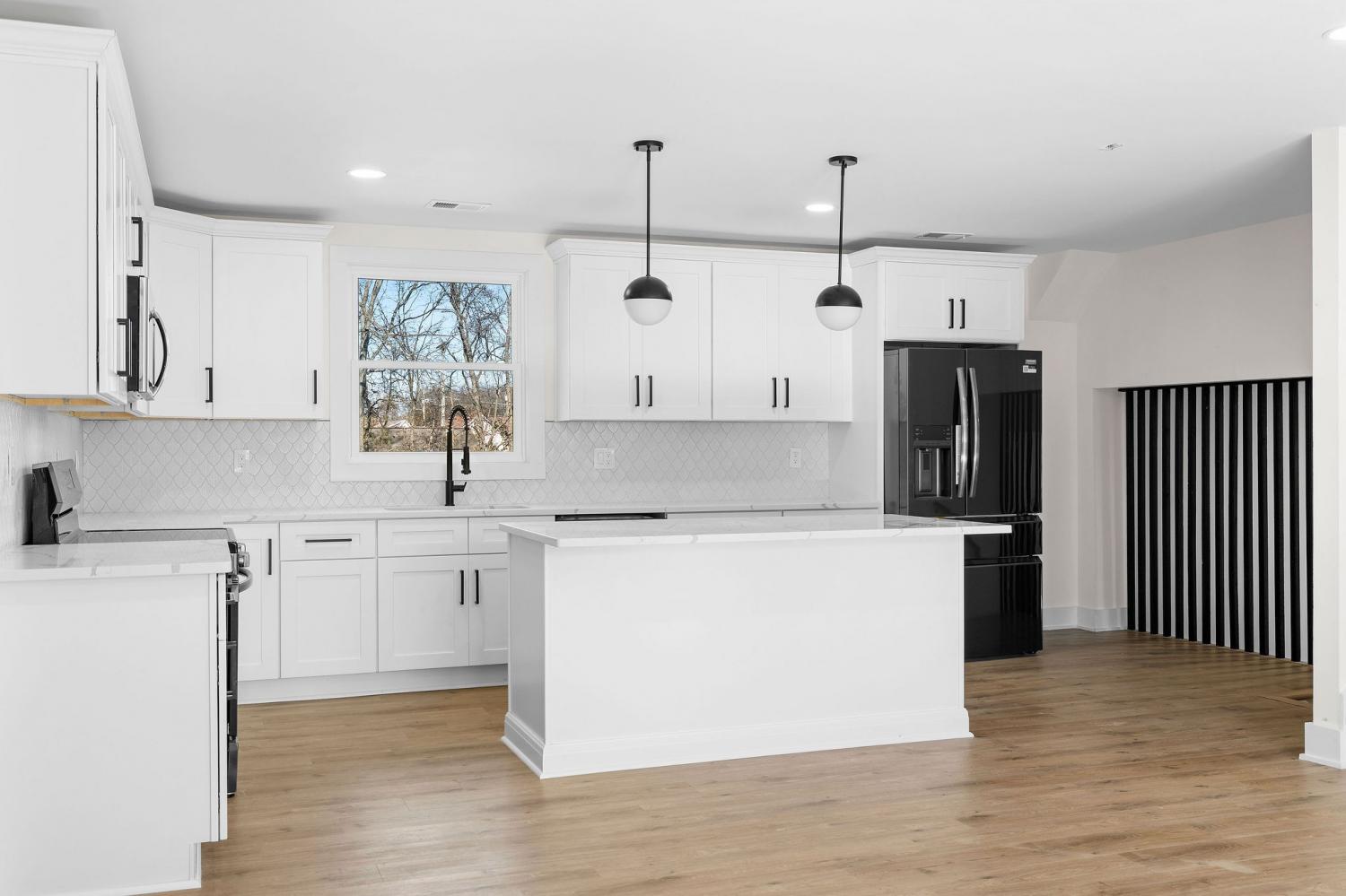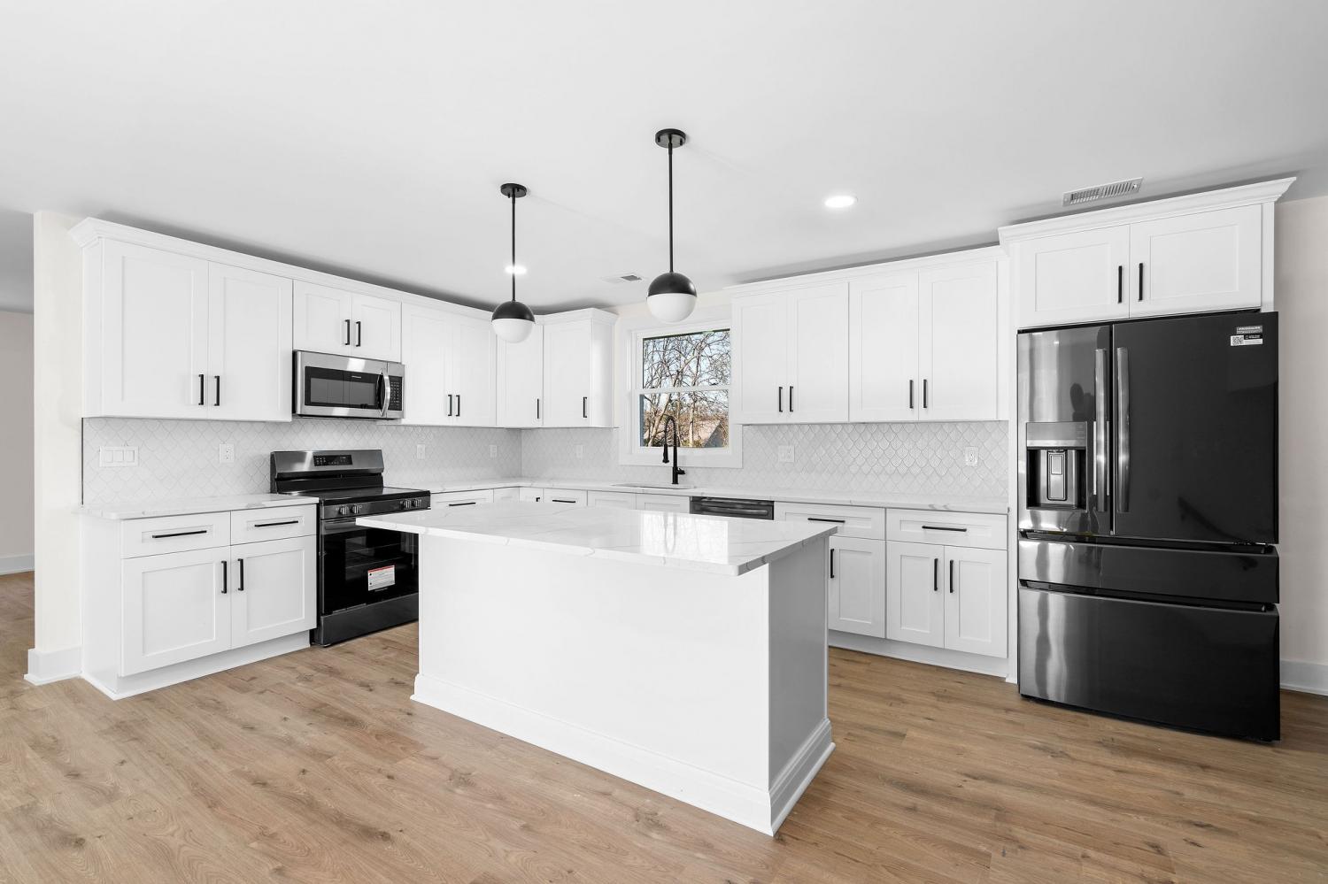 Fully renovated & move-in ready! This spacious 4BR/2.5BA split-level offers 2,424 sq ft of heated & cooled living space with an open layout ideal for entertaining. Everything is NEW—roof, HVAC, plumbing, electrical, windows, drywall, floors, cabinets, vanities, fixtures & more. The main level features bright living & dining areas flowing into a modern kitchen overlooking the backyard. A large secondary living room adds extra space for family or guests. Down a few steps, the private primary suite includes a walk-in closet, ensuite bath & direct access to a sunroom addition w/tile floors & French doors leading to the fenced yard. Upstairs are 3 additional bedrooms & a full bath. Four-car driveway plus storage shed. Turnkey renovation in a quiet Nashville neighborhood minutes to downtown, East Nashville, & interstates!