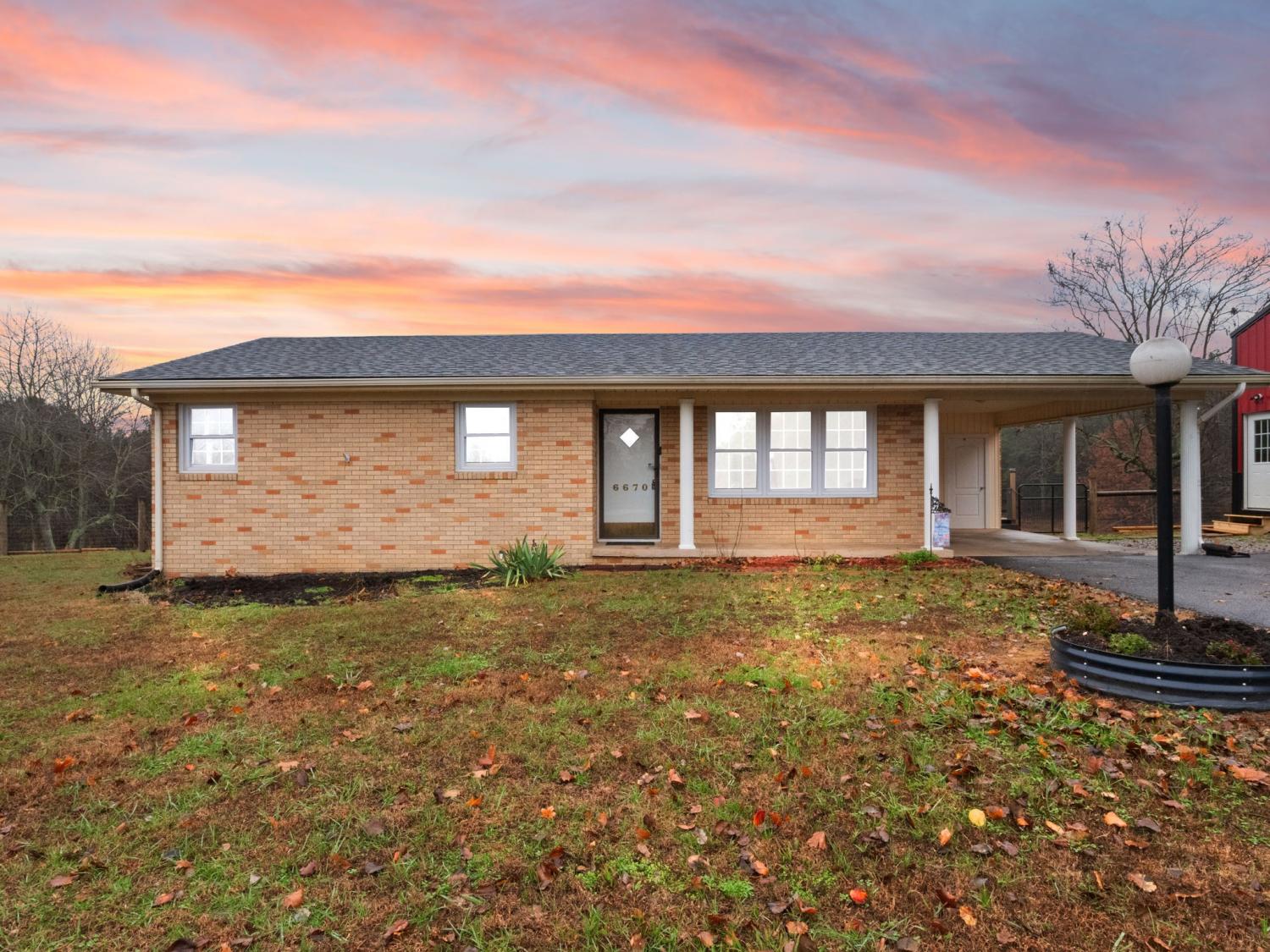 Beautifully updated brick ranch on 4 scenic acres. Enjoy the quiet of the countryside with the convenience of nearby town access. This move-in ready home features a sleek, modern interior with a spacious great room, sliding glass doors leading to a large deck, and sweeping views of Kentucky’s rolling hills and mature trees. The home offers 2 bedrooms, including a large primary suite with en suite bath and a sitting room that could easily be converted into a 3rd bedroom. A nearly 1-acre portion of the property is fenced, perfect for pets or livestock. A standout feature is the brand-new oversized steel shop/garage with concrete floors and electric, complemented by a Generac 20KW whole-home generator for year-round peace of mind. With ample outdoor space, abundant wildlife, and thoughtful updates throughout, this property is the perfect blend of modern living and peaceful country charm. Don’t miss your chance to own this unique property with room to grow and space to breathe.