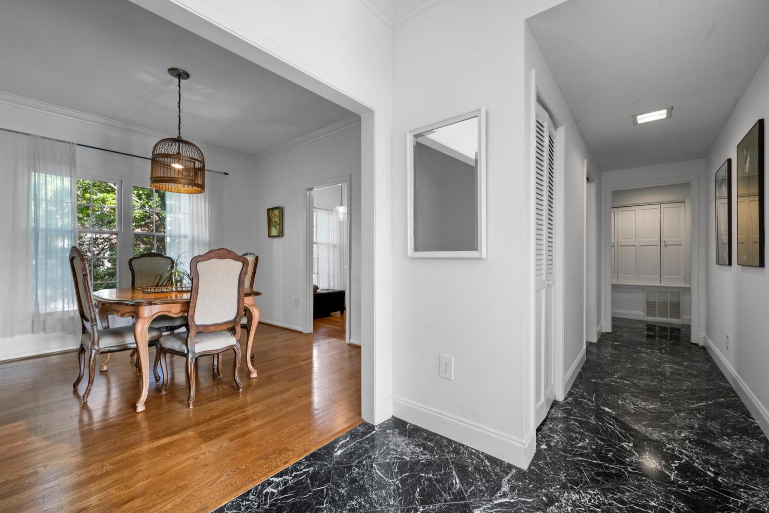 Welcome to this beautifully maintained one-story residence in the highly sought-after Royal Oaks Condominiums in Belle Meade. This 2-bedroom, 2-bath home offers an inviting blend of comfort, convenience, and timeless simplicity—all in one of Nashville’s most desirable locations. Step inside to a bright, well-kept interior highlighted by clean lines, tasteful finishes, and an easy, functional layout. The entry hall greets you with elegant marble flooring, setting the tone for the quality throughout the home. Beyond the foyer, rich hardwood floors flow through the main living spaces. The spacious living room provides plenty of room for relaxing or entertaining, and flows seamlessly into the dedicated dining area—ideal for everyday meals or hosting guests. The kitchen offers efficient workspace and storage, with the added bonus of an in-unit washer and dryer for maximum convenience. Both bedrooms are generously sized, with good natural light and easy access to full bathrooms, making the home comfortable for both residents and visitors. A standout feature of this unit is the private outdoor patio deck—perfect for morning coffee, evening unwinding, or container gardening. A recently installed A/C system adds comfort and peace of mind. Two surface parking spaces are included. The location is exceptional. Situated within walking distance to the new Belle Meade Villages development, you’ll enjoy quick access to shopping, local retail, and popular dining. The nearby greenway invites easy daily walks, bike rides, and outdoor recreation. Commuting is effortless with convenient interstate access, and you're just minutes from Vanderbilt, Belmont, and Lipscomb Universities, as well as downtown Nashville’s business, entertainment, and cultural destinations. Royal Oaks is known for its quiet setting, well-maintained common areas, and established community feel—providing a rare opportunity to live in a prime Belle Meade location at an approachable price point.