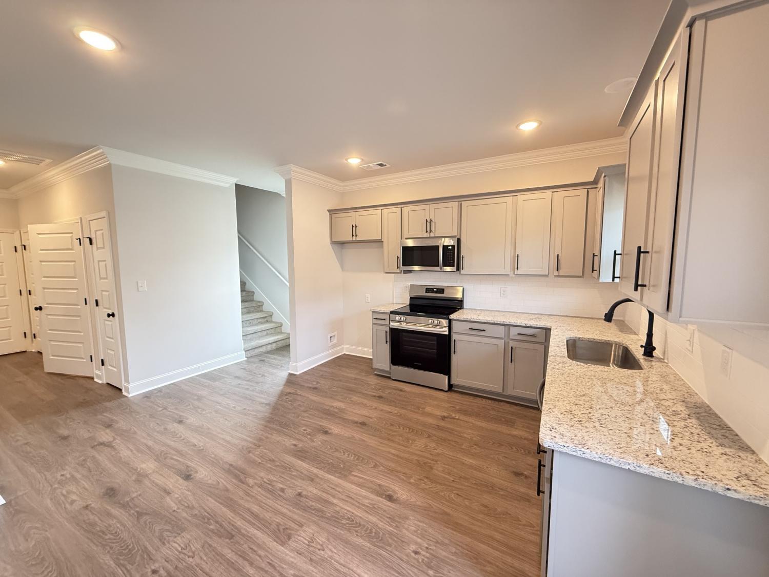 The Denham offers a thoughtful two-story layout with a split floorplan designed for privacy and functionality. The entry opens into a spacious front living room, while the kitchen is tucked privately toward the back of the home. An L-shaped eat-in kitchen provides generous counter and cabinet space, and the central hallway connects to the garage, pantry, powder room, and under-stair storage for added convenience. A large laundry room just off the living area adds even more storage options. The primary suite is located on the main level and features a well-designed bathroom with dual vanities, a linen closet, and a walk-in closet. Upstairs are two secondary bedrooms, a full bath, and a generous walk-in storage closet, along with attic access. Bedroom 2 is oversized ideal for guests, a home office, or a multipurpose flex space. This plan delivers a comfortable, low-maintenance layout with plenty of storage and separation between living spaces, perfect for a variety of lifestyles. Saddlebrook Townhomes is a gated, low-maintenance community in the heart of Murfreesboro, offering modern living and unbeatable convenience just minutes from I-24, I-840, and US-41. Residents enjoy exclusive amenities including a dog park, dog wash station, pickleball court, and a spacious clubhouse with a full kitchen, restrooms, and games—perfect for hosting events or relaxing with neighbors. Nearby attractions include the Stones River Greenway, The Avenue, Sports*Com with Boro Beach, and the historic Stones River Battlefield. With schools, grocery stores, restaurants, and healthcare just around the corner, Saddlebrook delivers everyday ease with a vibrant community feel. Located just 30 miles from Nashville, it’s the ideal blend of location, lifestyle, and leisure. Be sure to ask about our rate and closing cost incentive when using our preferred lender!