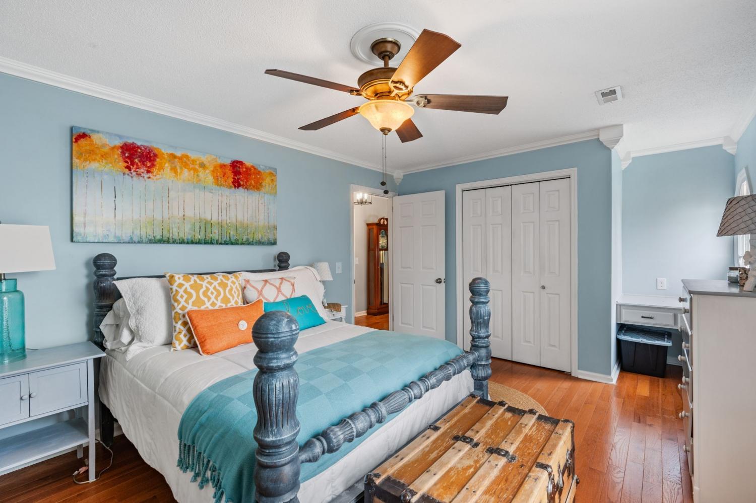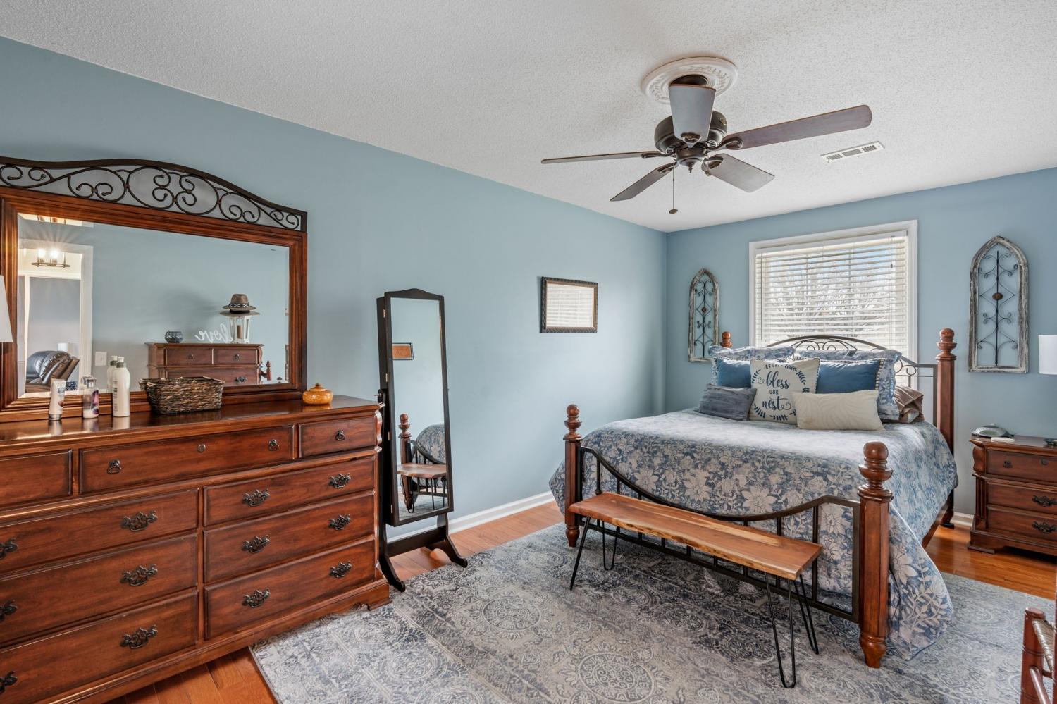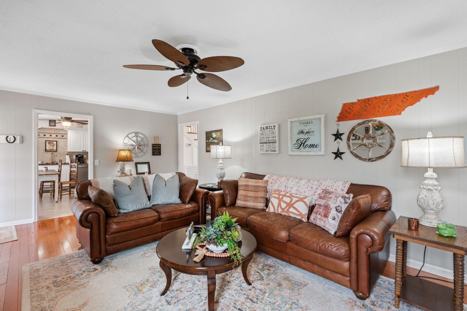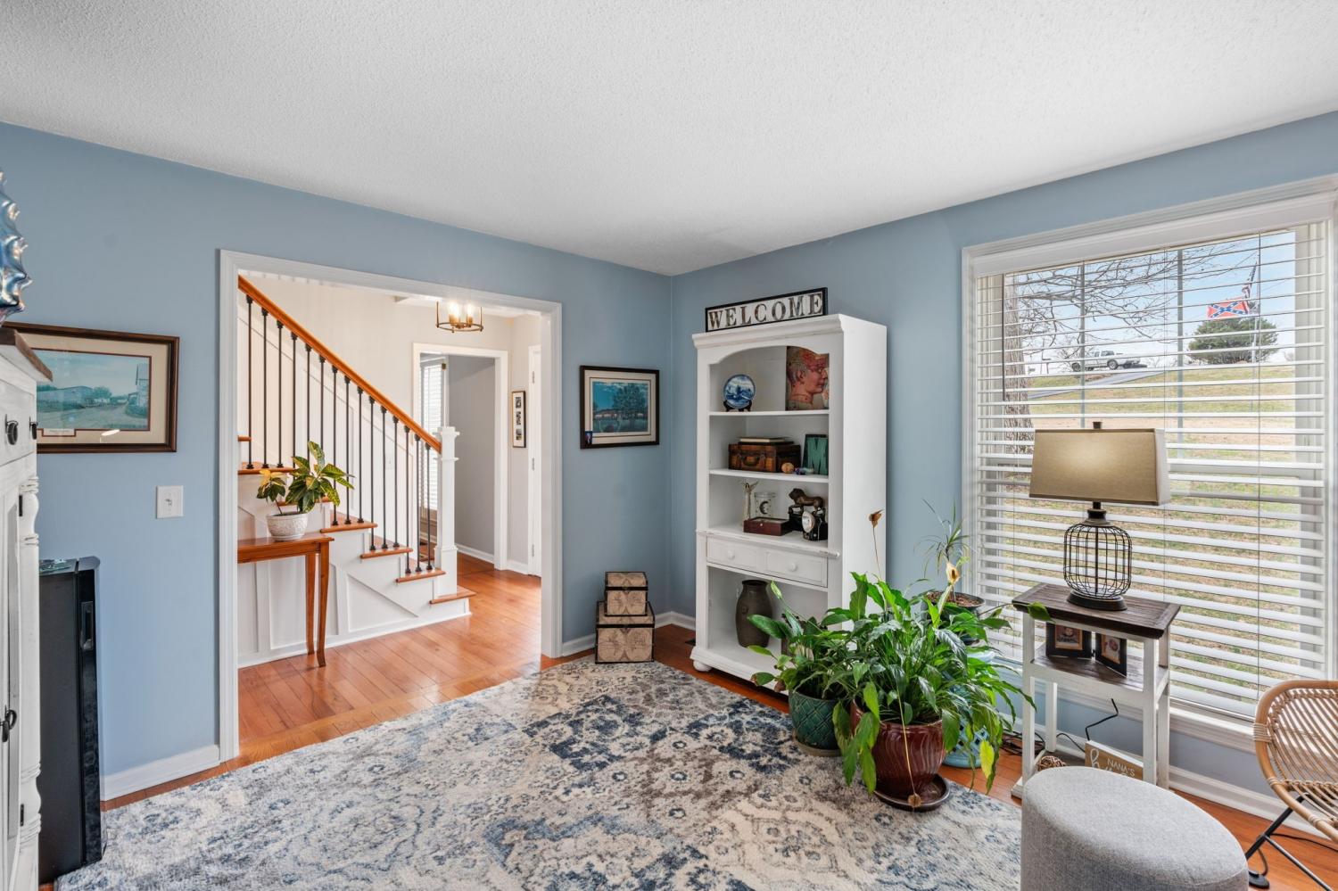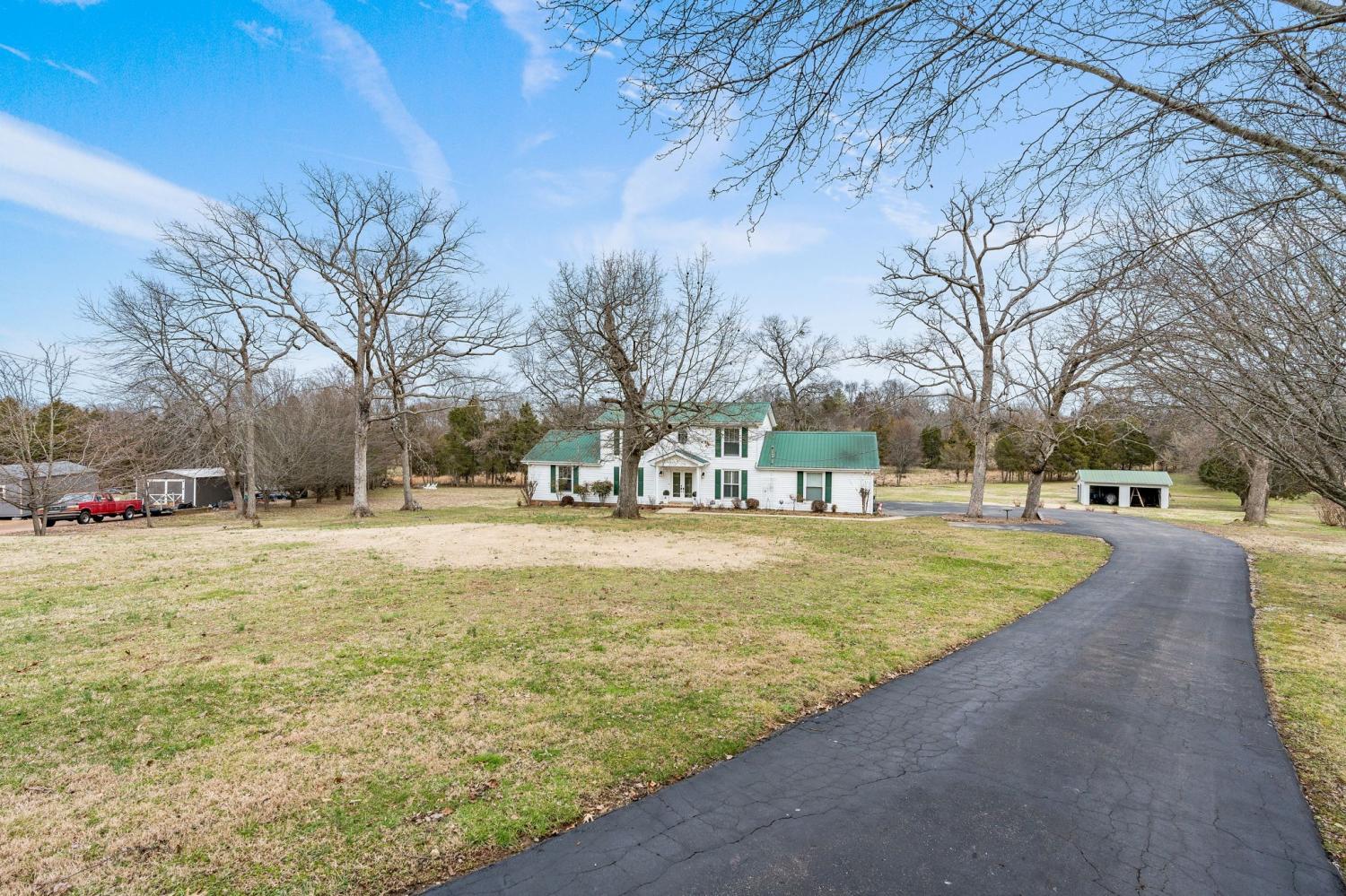 Welcome home! Where southern charm meets modern convenience. This distinctive residence features 4 bedrooms/2.5 baths and is nestled on a spacious lot in a peaceful cul-de-sac with wooded hillside views . This inviting property boasts a spacious family room with a cozy, wood-burning fireplace, and formal dining room perfect for entertaining. A custom iron/wood staircase creates a grand first impression with views to a gorgeous office/sitting area. The open, updated eat-in kitchen offers ample counter space and storage, making meal prep a breeze. Thoughtfully designed custom bathrooms add a touch of elegance, while generous bedrooms provide comfort and privacy. Wood & tile floors throughout. Step outside to enjoy the covered back patio, ideal for entertaining or simply relaxing while overlooking the expansive backyard. A 24x28 detached garage/hobby shop offers multi-use opportunities. With its prime location, large lot, and stylish finishes, this home is a must-see. Located minutes from I-40, 20 min. from BNA, Providence/Mt. Juliet shopping and dining, and minutes from downtown Lebanon's antique district, this home boasts convenience while wrapping you in tranquility. Sketch of home in documents and measurements used were professionally done by firm "Measured Up". Buyer to verify all information for themselves. miss the opportunity to make it yours!