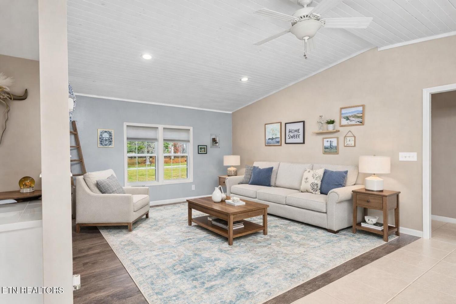 Welcome to peaceful country living! This charming 2-bedroom, 2-bath home with a bonus room offers 1,360 sq ft of inviting, updated space on nearly three-quarters of an acre. Set on a permanent block foundation, the home features a welcoming 15x15 covered front porch and a 8x8 back deck, perfect for relaxing or entertaining. The home was fully remodeled in 2023 with improvements including: new vinyl siding, fencing, argon-filled vinyl windows, stainless steel Whirlpool refrigerator and 5-burner range, water heater, interior paint, baseboards, casings, new interior doors, laminate bedroom flooring, tile bathrooms, tall trim, updated switches/outlets, and efficient LED lighting inside and out. ADT security system will also stay with the property. Inside, you'll find vaulted tongue-and-groove ceilings and an open living/dining area that creates a warm, spacious atmosphere. The primary suite offers both a full-size soaking tub and a walk-in shower. The bonus room with its own closet adds great flexibility—use it as an office, guest room, hobby space, or whatever you need. Outside, the property includes a 10x16 lofted shed, ideal for storage, a workshop, or future projects. Located just 25 minutes to Crossville, 45 minutes to Cookeville, and 1.5 hours to Knoxville, this home blends country comfort with everyday convenience. Move-in ready and beautifully updated—come see how much this home has to offer!