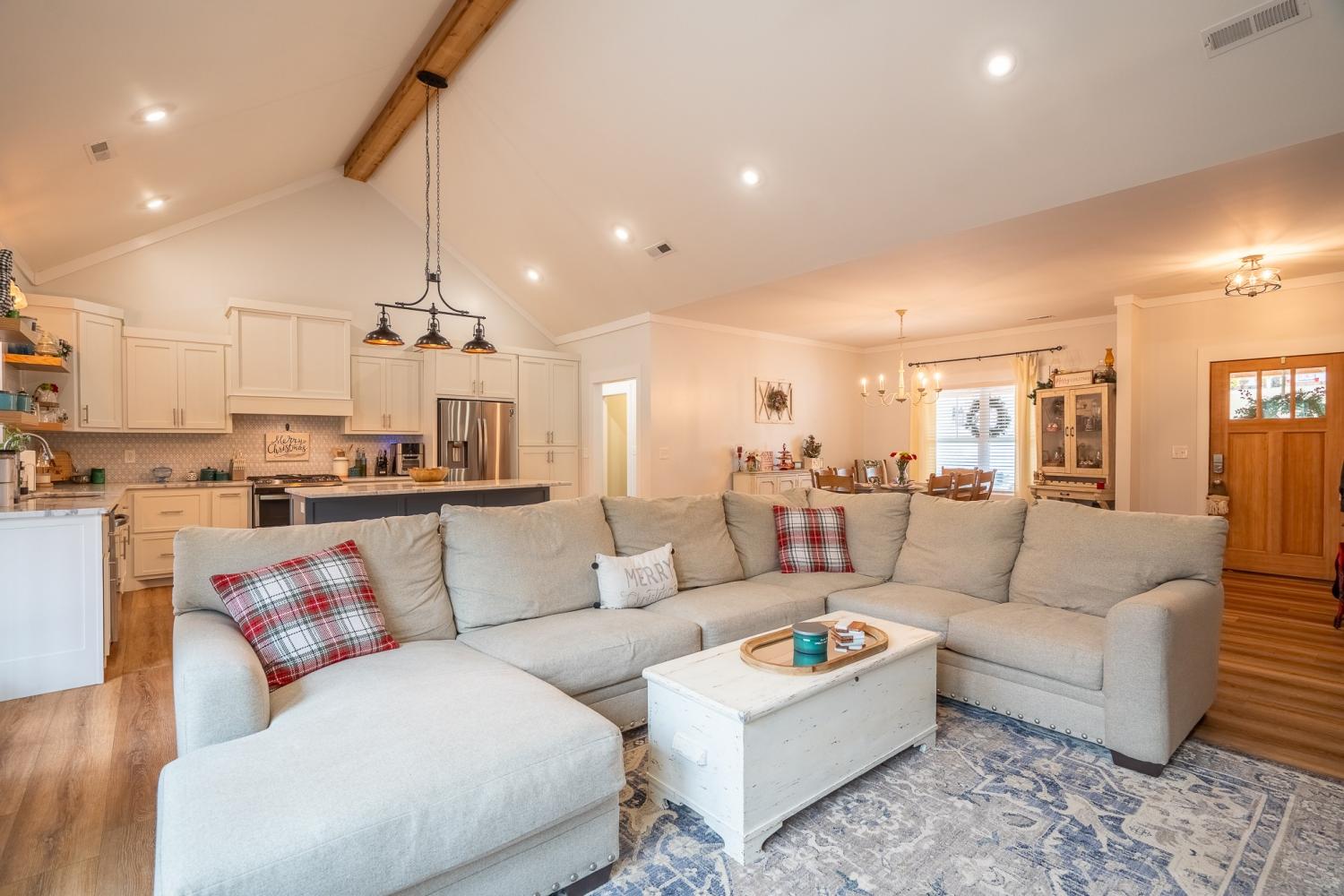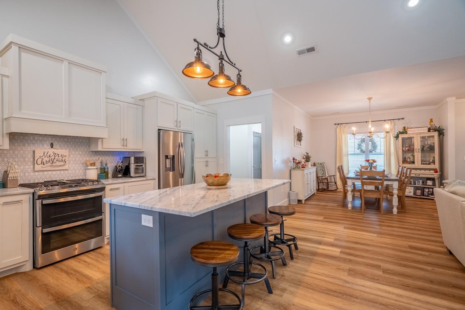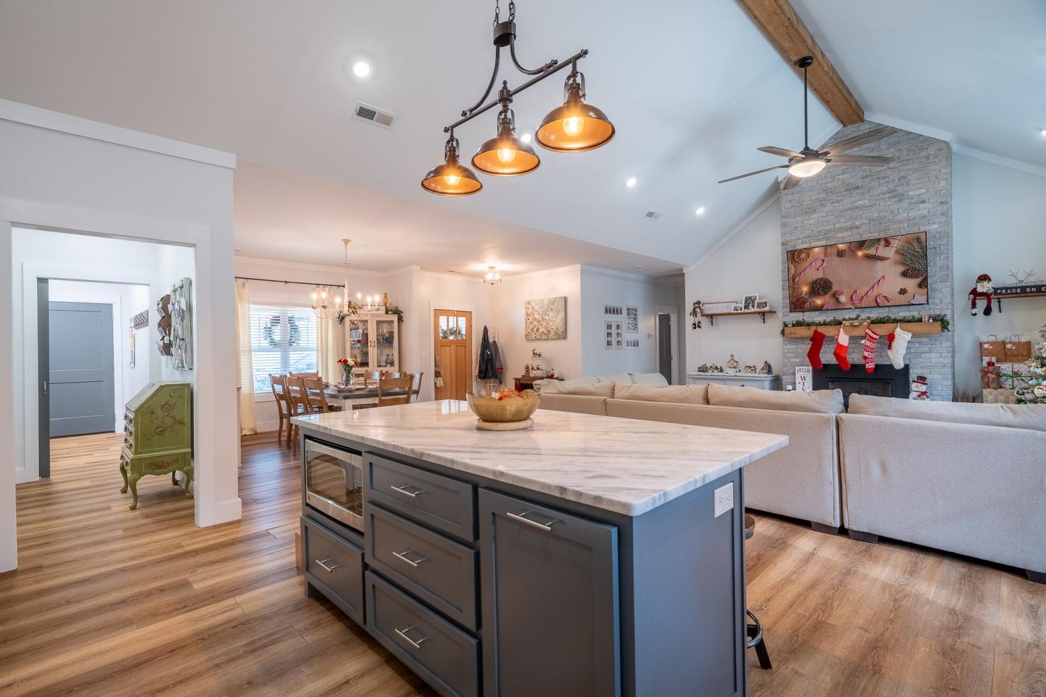 Beautiful white brick home in a convenient location in Killen AL — built in 2022 and completely move-in ready! The main level offers a 3-bed, 2-bath open floor plan featuring vaulted ceilings, a large island, granite countertops, and a cozy gas fireplace. Split bedroom design with a spacious primary suite that includes a step-in tiled shower, soaking tub, and a large walk-in closet. The finished basement in-law suite provides an efficiency kitchen, full bath, and private bedroom — ideal for guests, multigenerational living, or rental potential. Enjoy the outdoors on the spacious deck, perfect for entertaining and soaking in the wooded views. The property also features a large concrete driveway with RV parking, giving you plenty of space for vehicles and guests. The home includes an attached two-car garage on the main level, plus a single-car garage in the basement, offering excellent storage, workshop space, or additional parking options. Call today to schedule your showing — this beautiful home won’t last long!