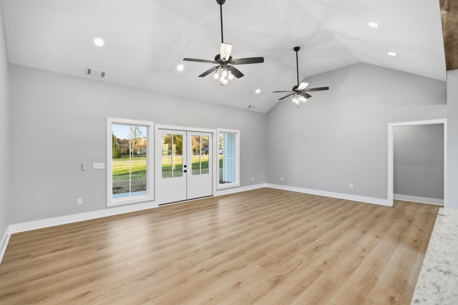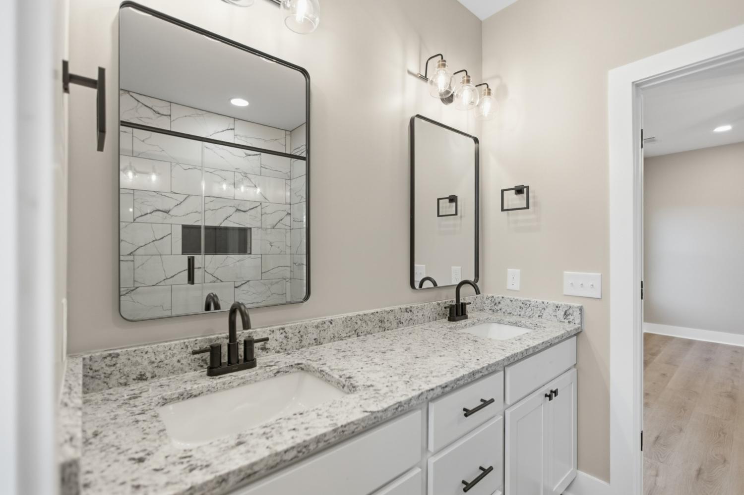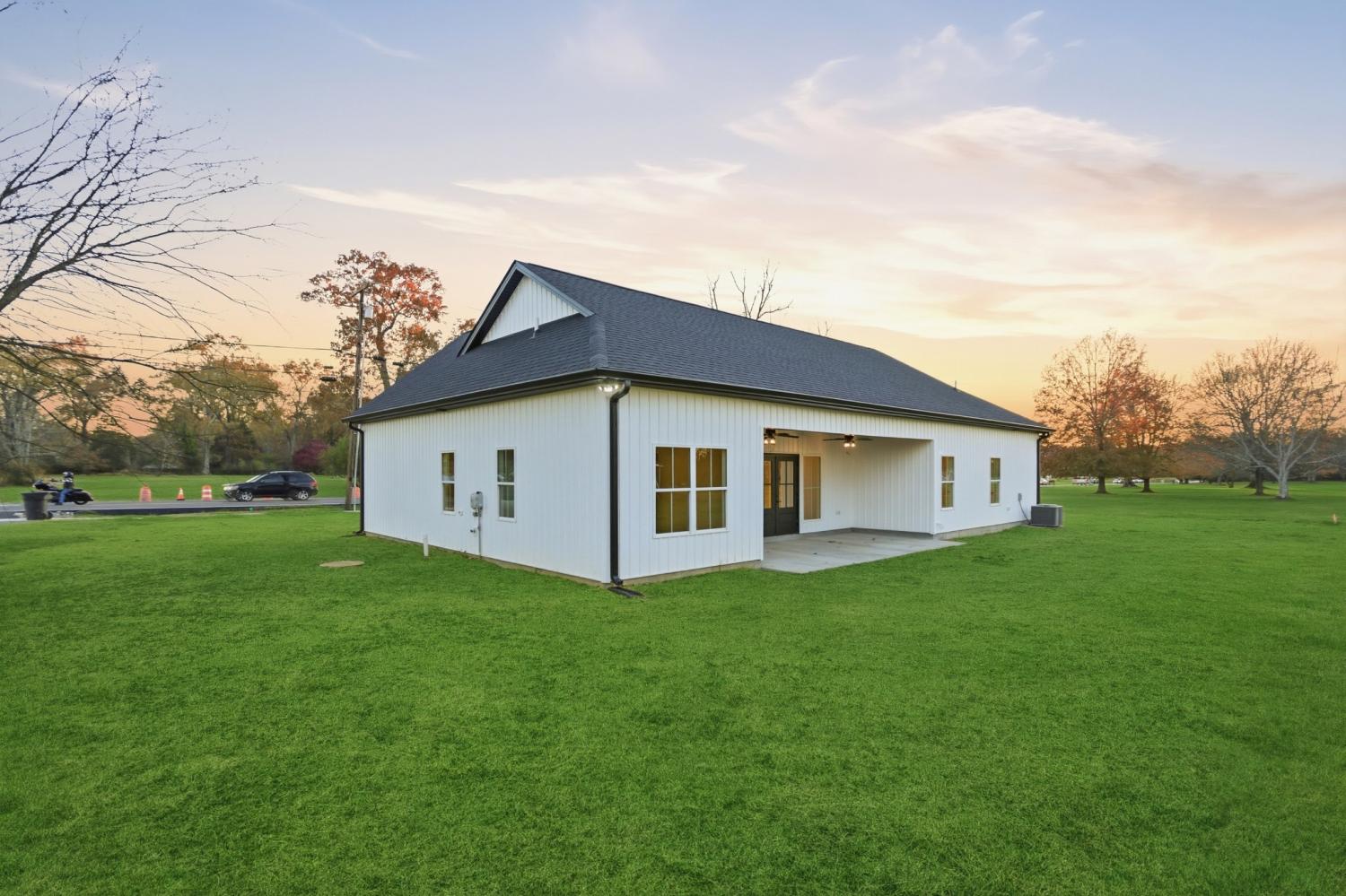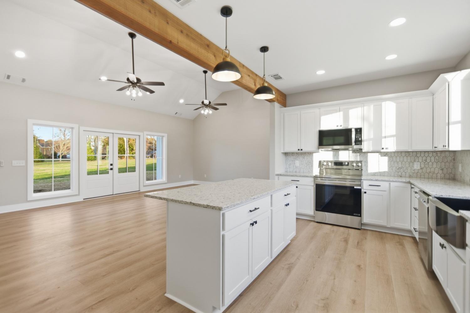 Welcome to this stunning newly constructed home where style, comfort, and quality come together seamlessly. Step inside the inviting entry foyer and be greeted by a beautiful judges-panel feature wall that sets the tone for the craftsmanship found throughout. This thoughtfully designed 3-bedroom, 2-bathroom home offers an open-concept layout with luxury vinyl plank flooring spanning the entire space. The spacious kitchen is a true centerpiece, complete with a large island, sleek granite countertops, and an oversized pantry. It flows effortlessly into the great room, highlighted by impressive vaulted ceilings, perfect for entertaining or everyday living. The split-bedroom floorplan ensures privacy, with the primary suite serving as a relaxing retreat. Enjoy a custom tile shower, double vanities, and a custom walk-in closet designed for maximum organization. Step outside to a covered patio, ideal for morning coffee or evening gatherings. This exceptional home blends modern finishes with functional design—don’t miss your opportunity to make 90 Kings Lane yours!