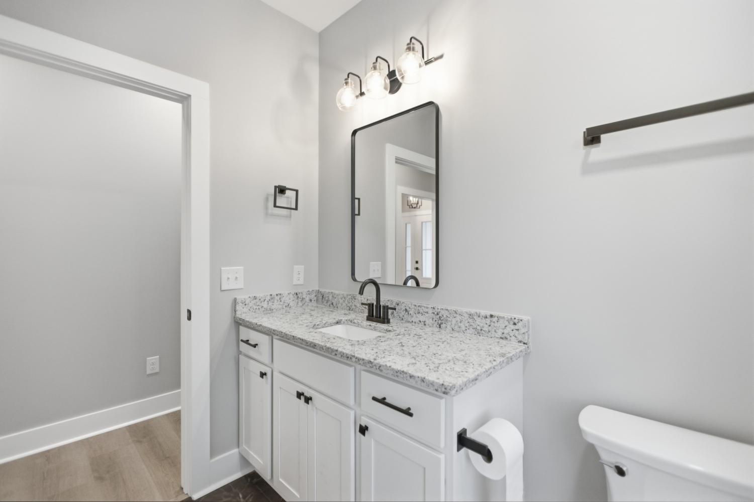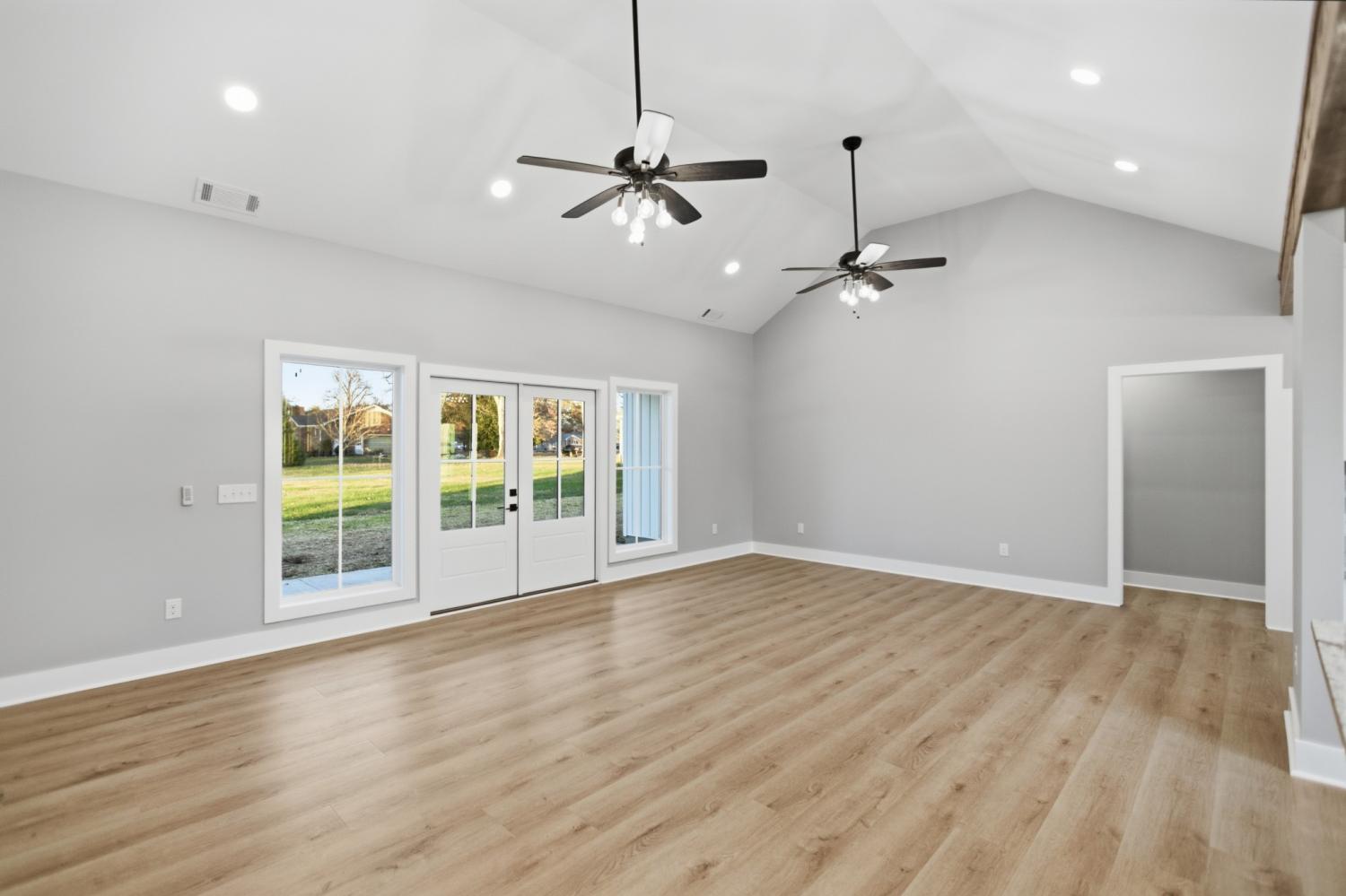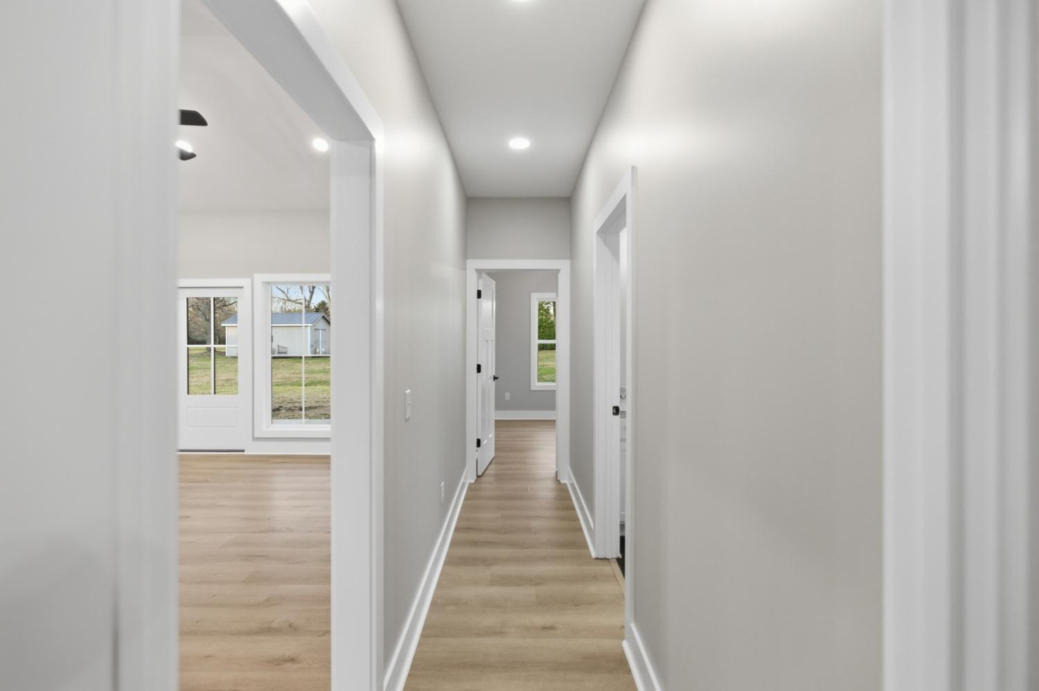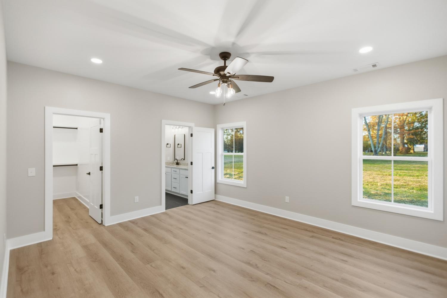 Welcome to this stunning newly constructed home where style, comfort, and quality come together seamlessly. Step inside the inviting entry foyer and be greeted by a beautiful judges-panel feature wall that sets the tone for the craftsmanship found throughout. This thoughtfully designed 3-bedroom, 2-bathroom home offers an open-concept layout with luxury vinyl plank flooring spanning the entire space. The spacious kitchen is a true centerpiece, complete with a large island, sleek granite countertops, and an oversized pantry. It flows effortlessly into the great room, highlighted by impressive vaulted ceilings, perfect for entertaining or everyday living. The split-bedroom floorplan ensures privacy, with the primary suite serving as a relaxing retreat. Enjoy a custom tile shower, double vanities, and a custom walk-in closet designed for maximum organization. Step outside to a covered patio, ideal for morning coffee or evening gatherings. This exceptional home blends modern finishes with functional design—don’t miss your opportunity to make 90 Kings Lane yours!