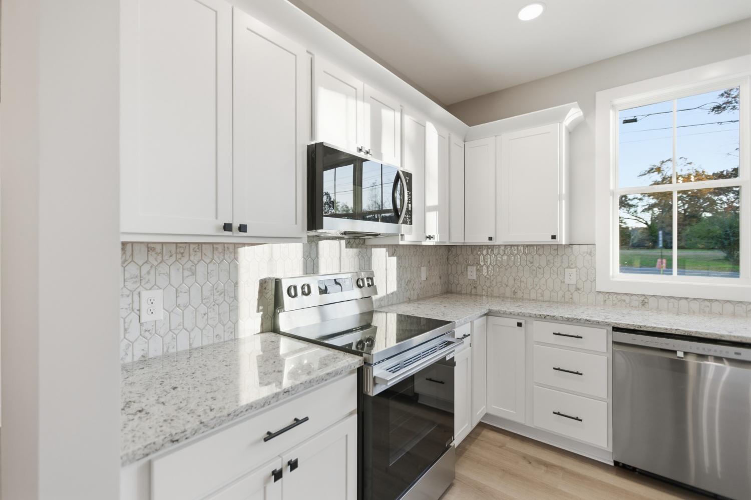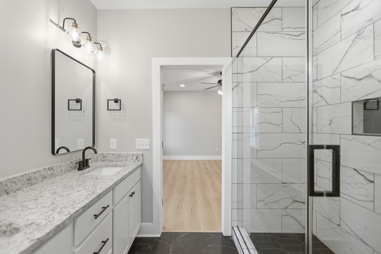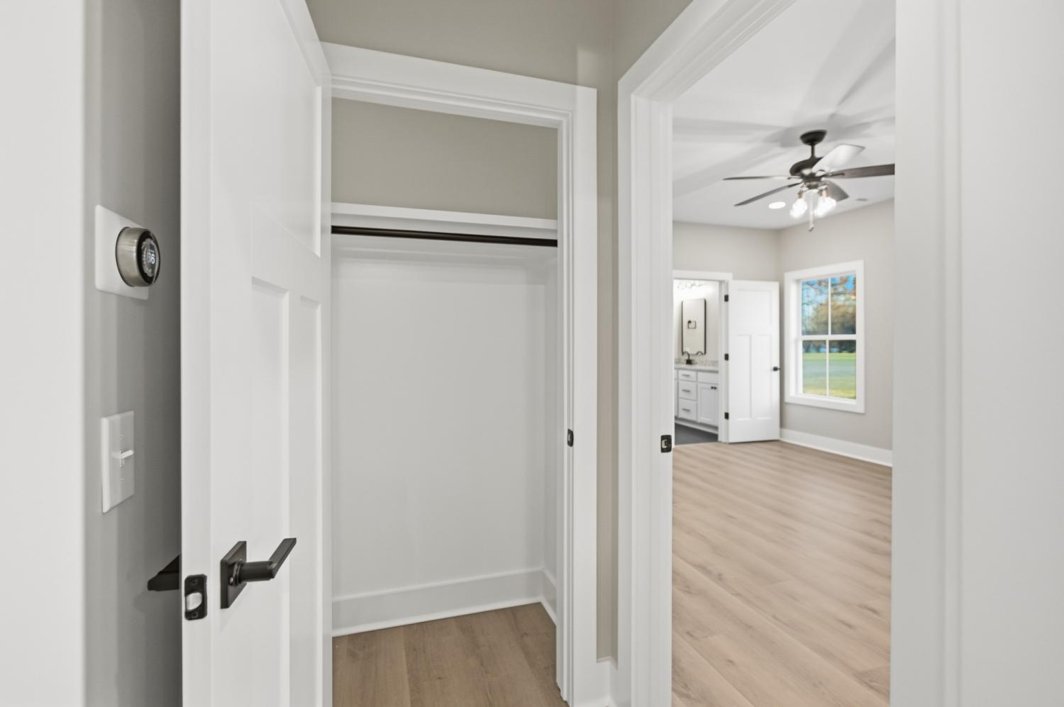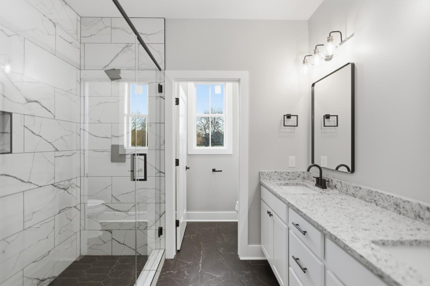 Welcome to this stunning newly constructed home where style, comfort, and quality come together seamlessly. Step inside the inviting entry foyer and be greeted by a beautiful judges-panel feature wall that sets the tone for the craftsmanship found throughout. This thoughtfully designed 3-bedroom, 2-bathroom home offers an open-concept layout with luxury vinyl plank flooring spanning the entire space. The spacious kitchen is a true centerpiece, complete with a large island, sleek granite countertops, and an oversized pantry. It flows effortlessly into the great room, highlighted by impressive vaulted ceilings, perfect for entertaining or everyday living. The split-bedroom floorplan ensures privacy, with the primary suite serving as a relaxing retreat. Enjoy a custom tile shower, double vanities, and a custom walk-in closet designed for maximum organization. Step outside to a covered patio, ideal for morning coffee or evening gatherings. This exceptional home blends modern finishes with functional design—don’t miss your opportunity to make 90 Kings Lane yours!
