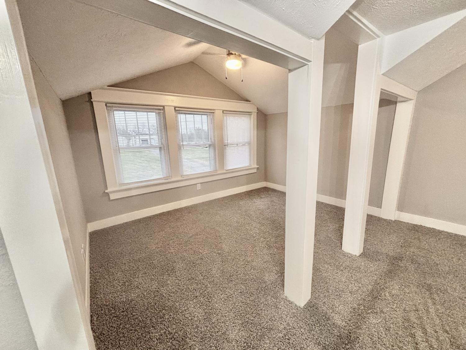 Heading downtown Cadiz, pass school and take a right on Line Street. House is on the right.