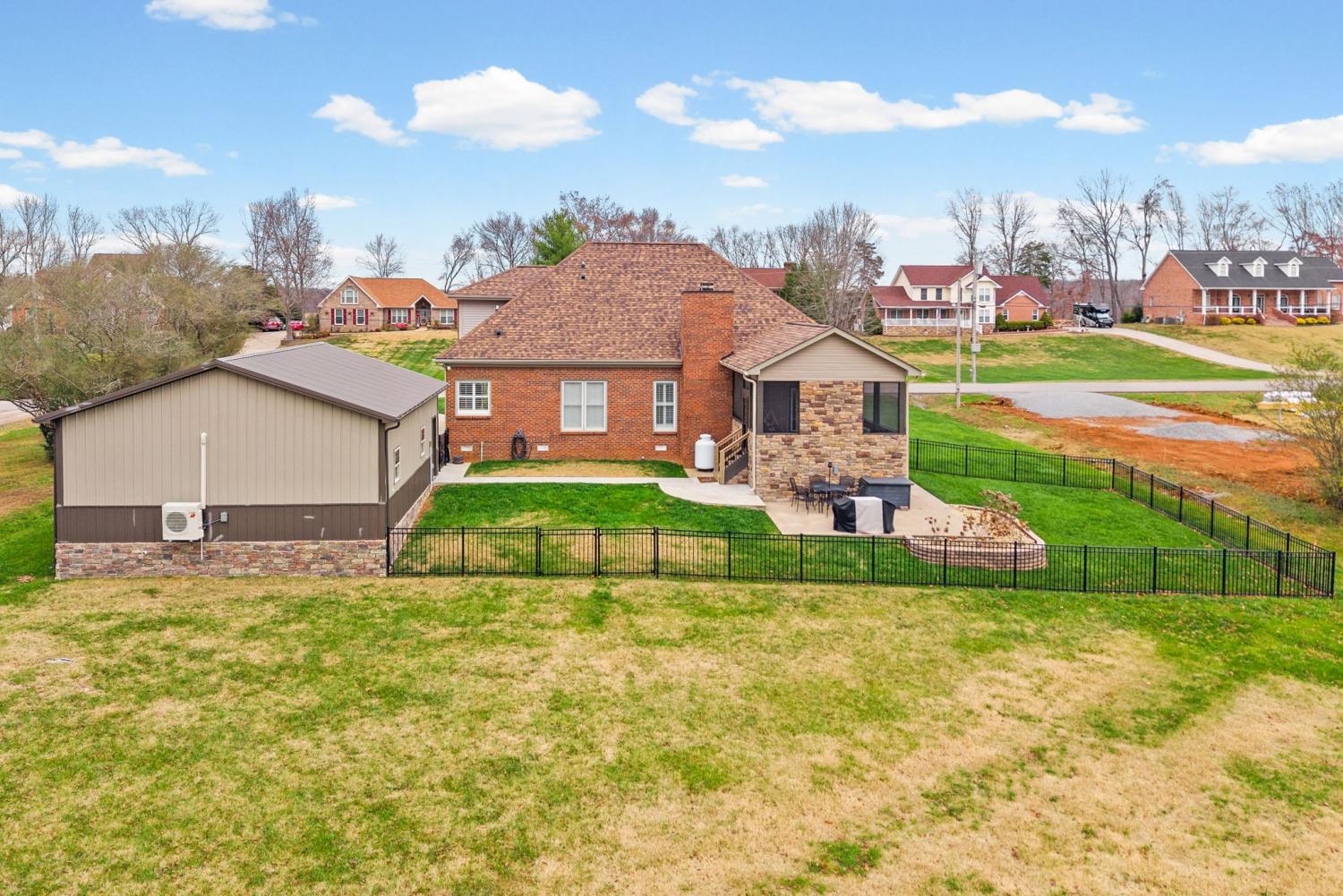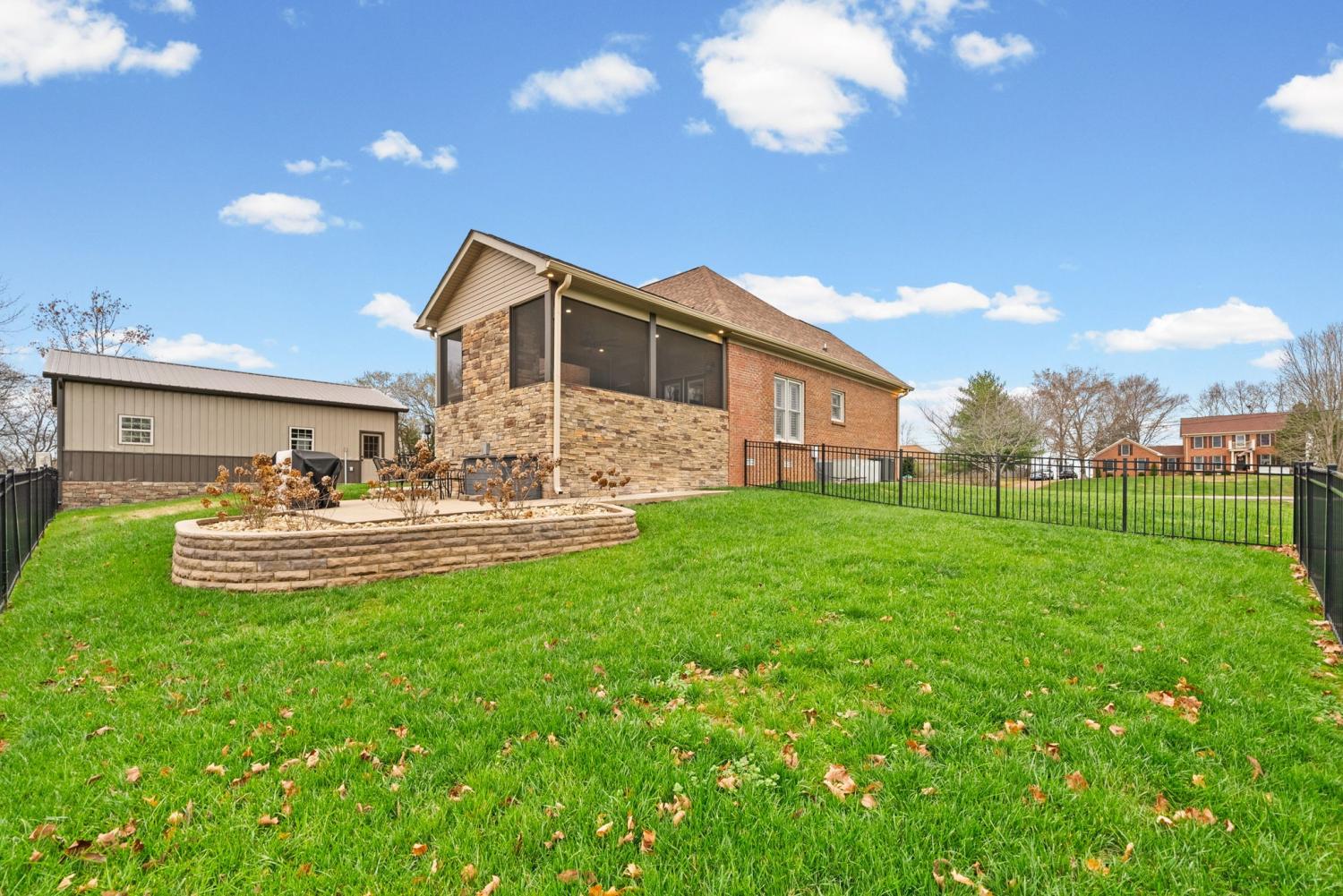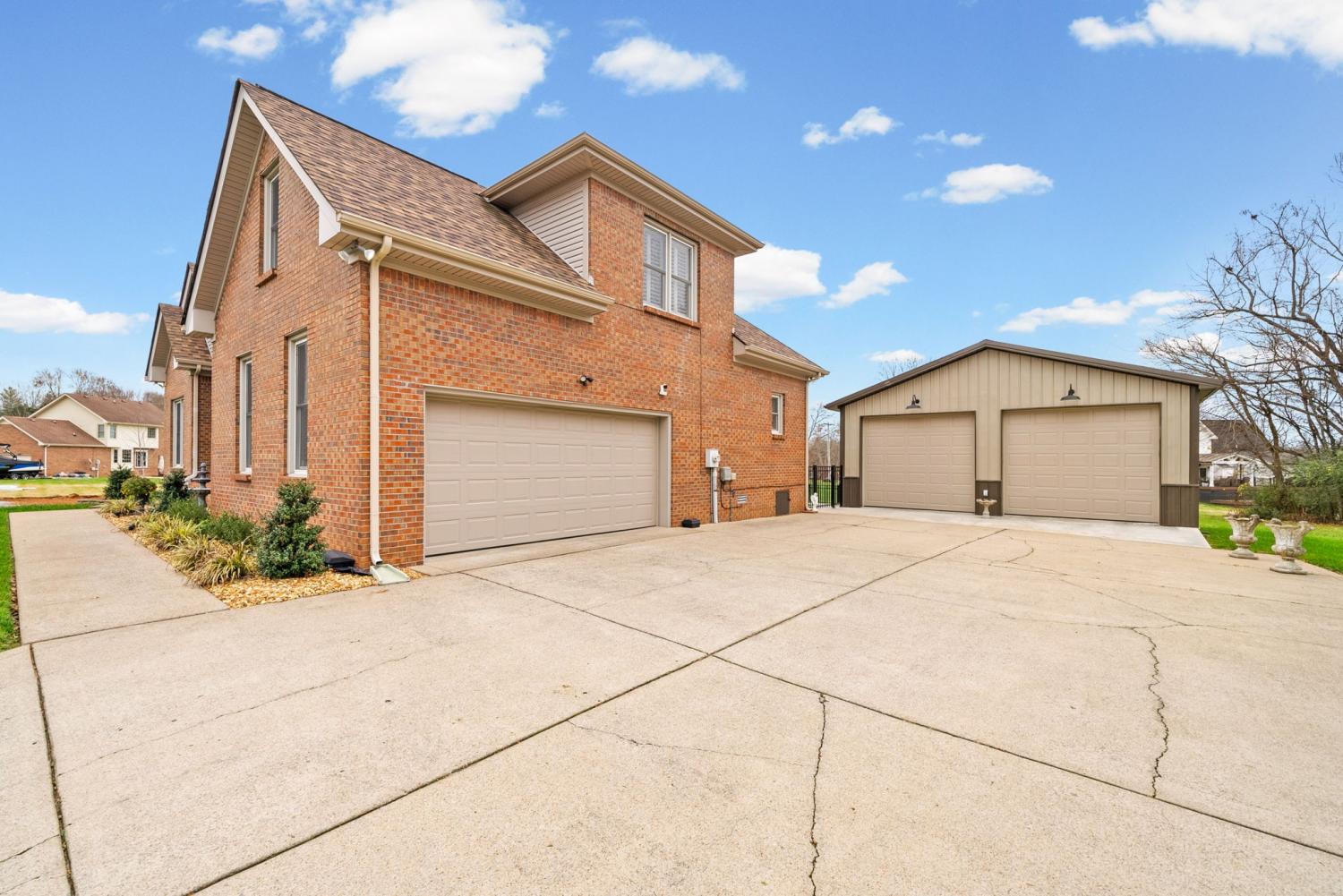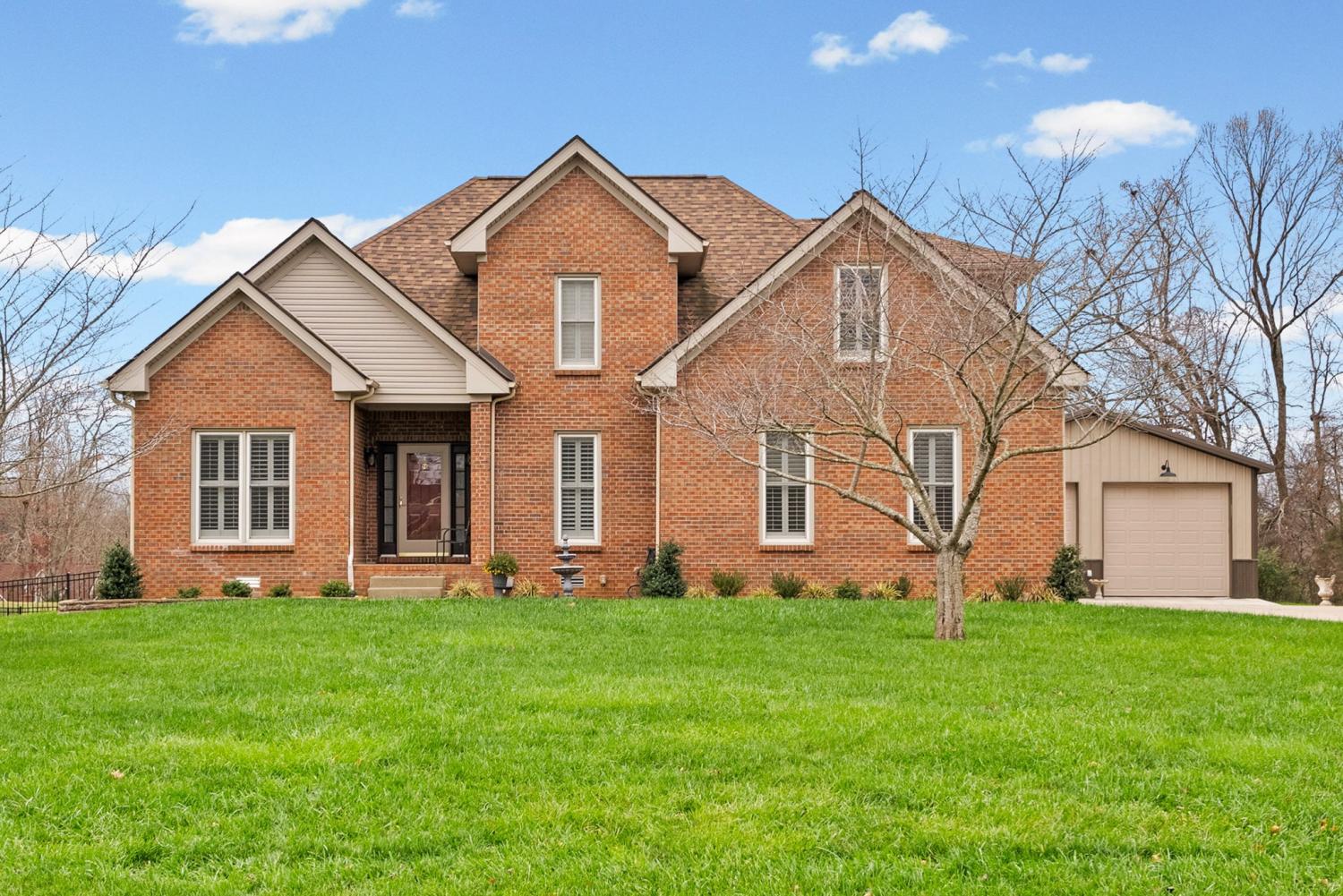 Updated move-in ready, full brick, 4 bed, 2.5 bath home located in the desirable Bradbury Farms neighborhood! The living room features beautiful wood floors, vaulted ceiling and a cozy fireplace, perfect for relaxing. The gourmet kitchen boasts upgraded cabinetry, granite countertops, stainless steel appliances, a spacious island, and a built in workspace. The primary bedroom is located on the main level and features a large walk in closet and ensuite bath with separate tub/tiled shower and large vanity with dual sinks. 3 additional bedrooms and a full bath located upstairs. If you need a home that offers plenty of storage space, be sure to check out the attached 2 car garage AND detached 32X26 garage/shop, equipped with heat/air, offering you plenty of space for vehicles and all sorts of toys and equipment! You'll surely enjoy the outdoor space as well. This home sits on almost an acre of land, and has a spacious screened in back deck with a beautiful stone fireplace; a space you'll be sure to enjoy year round!