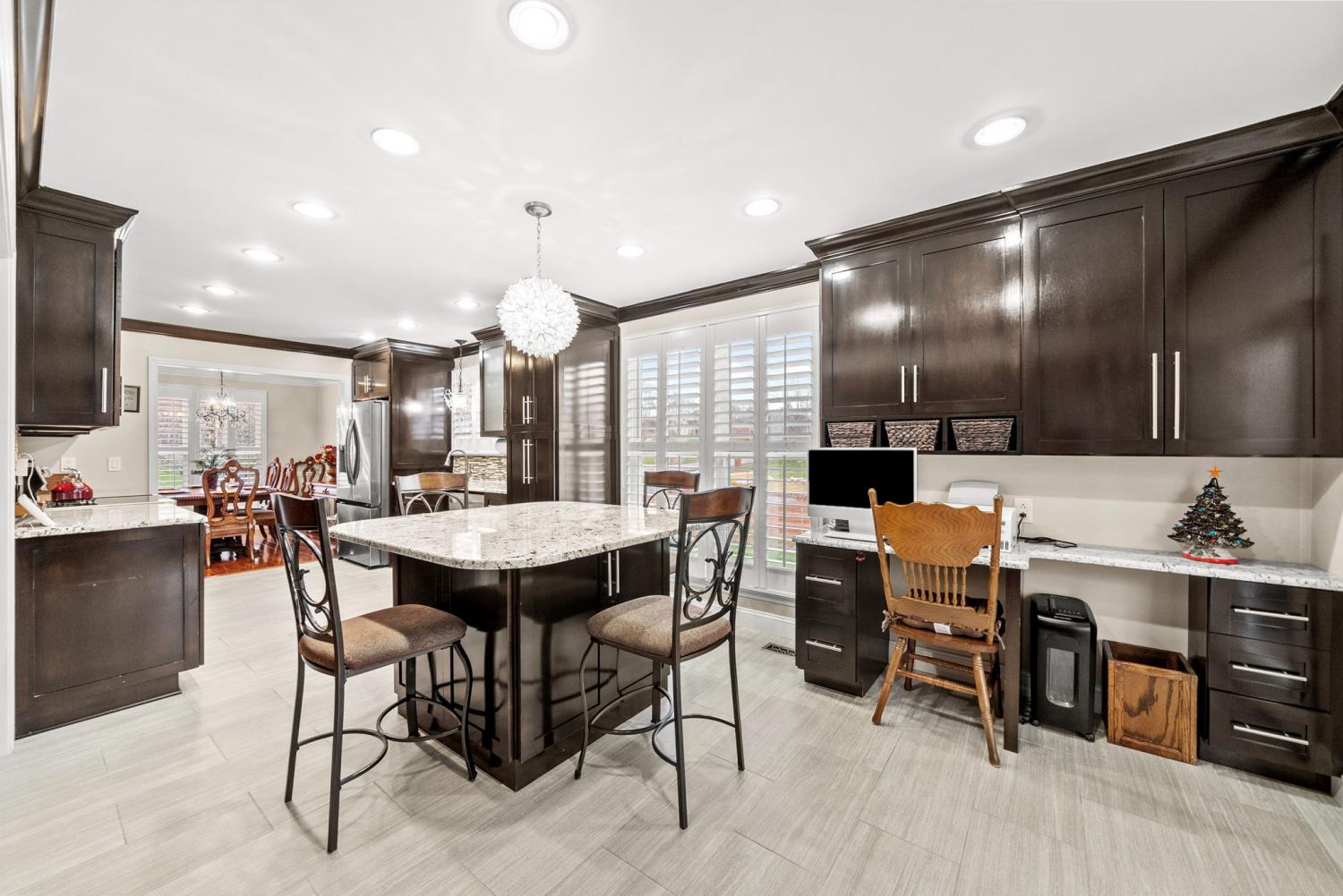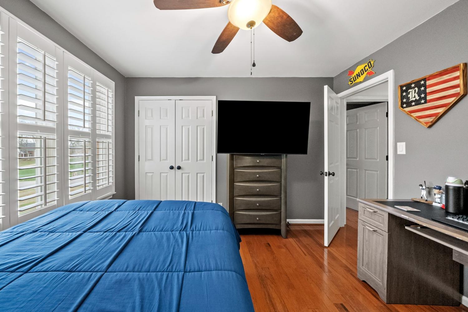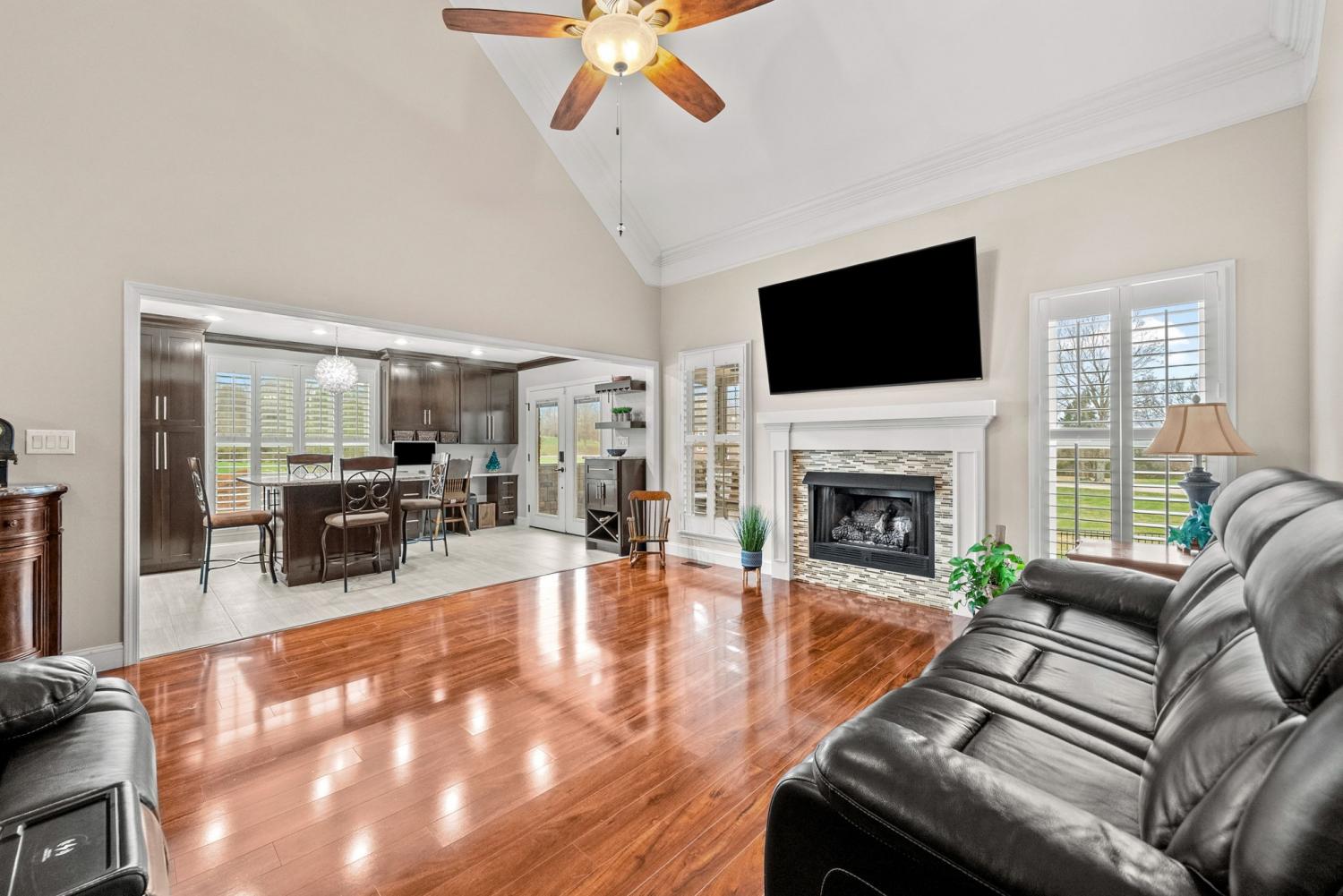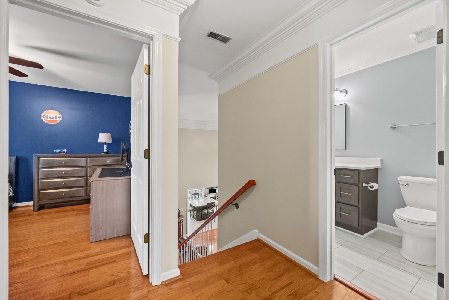 Updated move-in ready, full brick, 4 bed, 2.5 bath home located in the desirable Bradbury Farms neighborhood! The living room features beautiful wood floors, vaulted ceiling and a cozy fireplace, perfect for relaxing. The gourmet kitchen boasts upgraded cabinetry, granite countertops, stainless steel appliances, a spacious island, and a built in workspace. The primary bedroom is located on the main level and features a large walk in closet and ensuite bath with separate tub/tiled shower and large vanity with dual sinks. 3 additional bedrooms and a full bath located upstairs. If you need a home that offers plenty of storage space, be sure to check out the attached 2 car garage AND detached 32X26 garage/shop, equipped with heat/air, offering you plenty of space for vehicles and all sorts of toys and equipment! You'll surely enjoy the outdoor space as well. This home sits on almost an acre of land, and has a spacious screened in back deck with a beautiful stone fireplace; a space you'll be sure to enjoy year round!