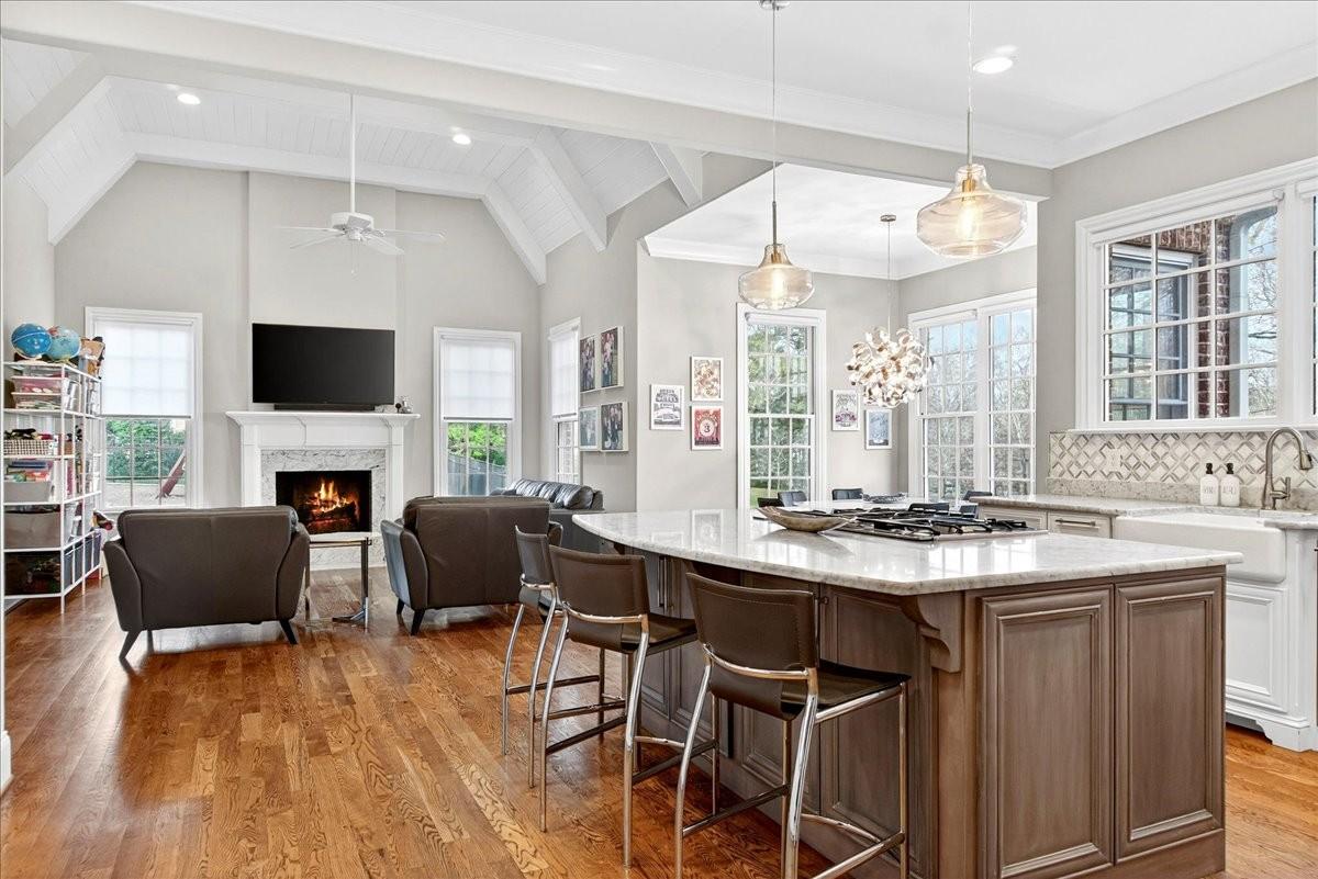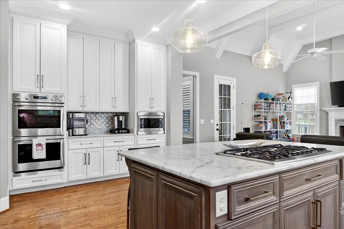 Discover this beautifully maintained West Meade home, built in 2017 and lovingly cared for by its original owners. Thoughtful updates throughout make it truly move-in ready, while the quiet, convenient location near Harding Road offers the best of West Meade living. The home welcomes you with a spacious two-story foyer. The main level includes a generous primary suite with a renovated spa-like shower and heated floors, a dedicated office, a formal dining room, a formal living room, and an expansive kitchen with ceiling-height cabinets, a walk-in pantry, and an eat-in dining cove that opens to an inviting family room. Also on the main level are a two-car garage, mudroom, and laundry room off the garage entry. Hardwood floors run throughout the home and abundant windows fill the spaces with natural light. Both the family room and living room feature gas-starter wood-burning fireplaces, adding warmth and character. Upstairs offers three additional bedrooms, a spacious rec room, and unfinished space with the potential for a fifth bedroom. The outdoor spaces are equally impressive: a newly enclosed four-seasons room opens to a large, level corner lot with a deck, fenced yard, mosquito misting system, and irrigation. Custom built-ins, upgraded window screens, plantation shutters, shades, a whole-house generator, a water filtration system, Nest thermostat and a security system further enhance comfort and convenience. Quiet, friendly, and ideally located, 201 W Meade Drive blends modern comfort with timeless warmth—perfect for everyday living and welcoming gatherings.