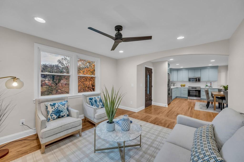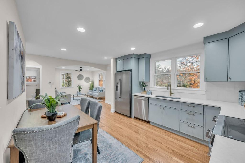 Charming and fully renovated, this Cape Cod–inspired home offers cozy, family-friendly living on a spacious .77-acre lot. Enjoy refinished hardwoods, new paint, updated lighting, and a stunning custom kitchen with tile backsplash, stainless appliances, and a pantry. The main-level primary suite features sound-dampening insulation, a large closet, and a beautifully updated bath with a double vanity and custom shower. Two additional bedrooms plus a versatile upstairs flex space provide great options for work or play. A huge basement with garage offers exceptional storage. Perched on a gentle hill, the home has a pleasant view and easy access to all of Nashville. Move-in ready!