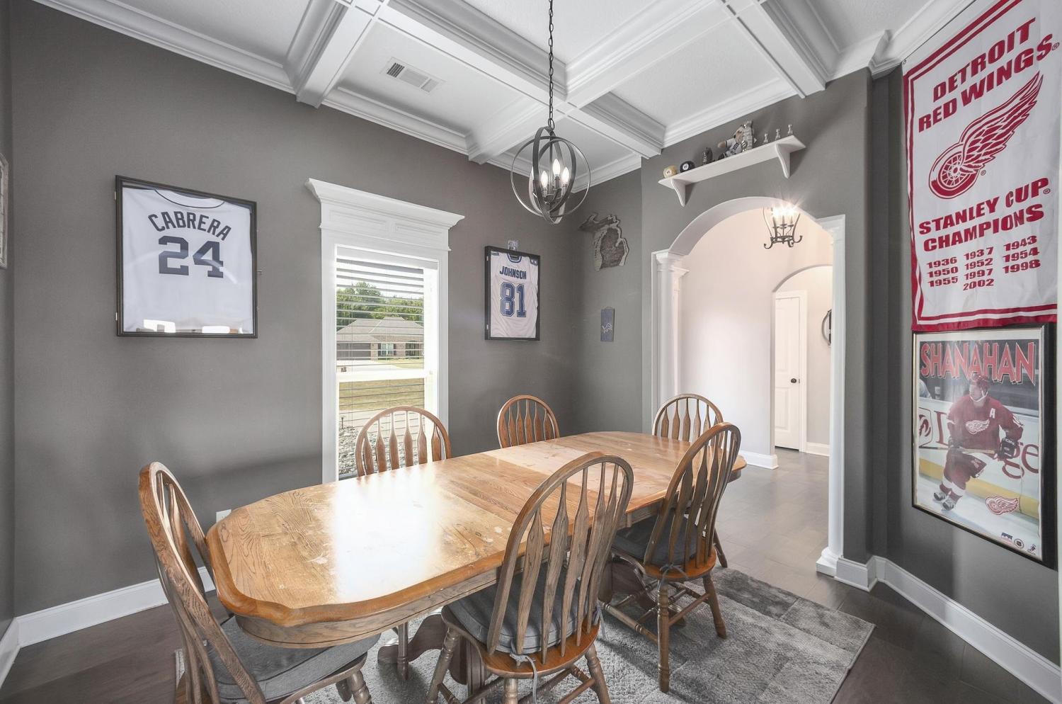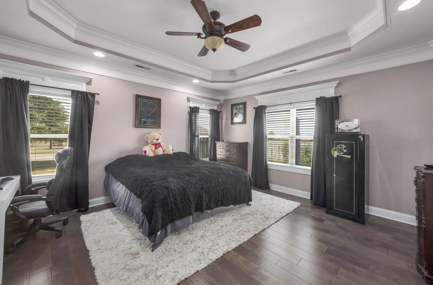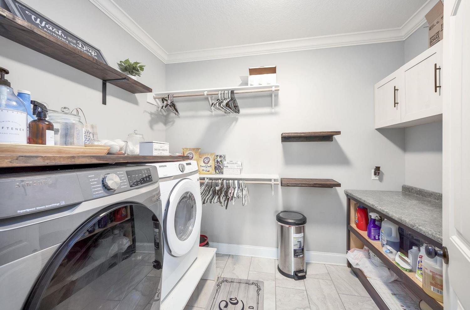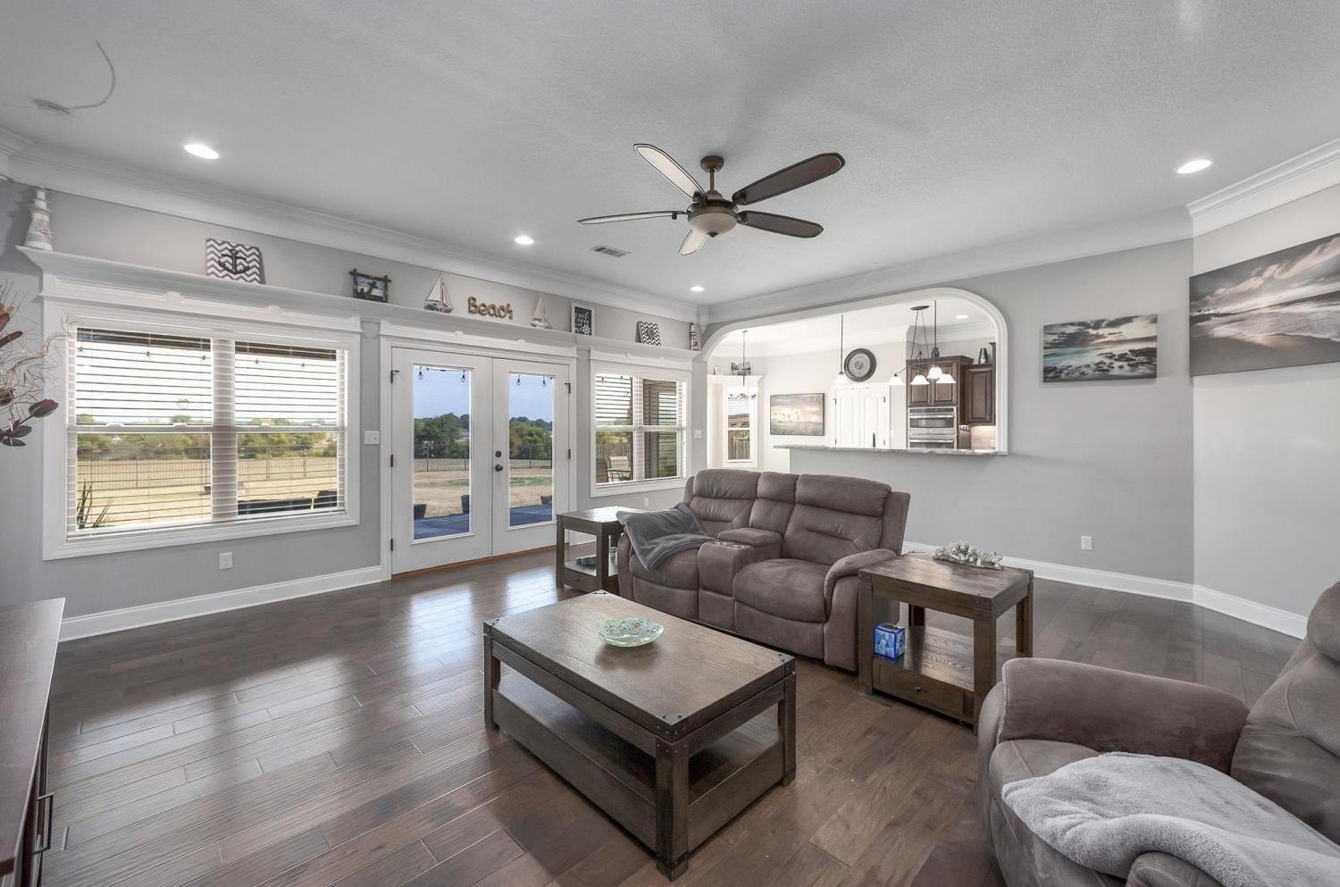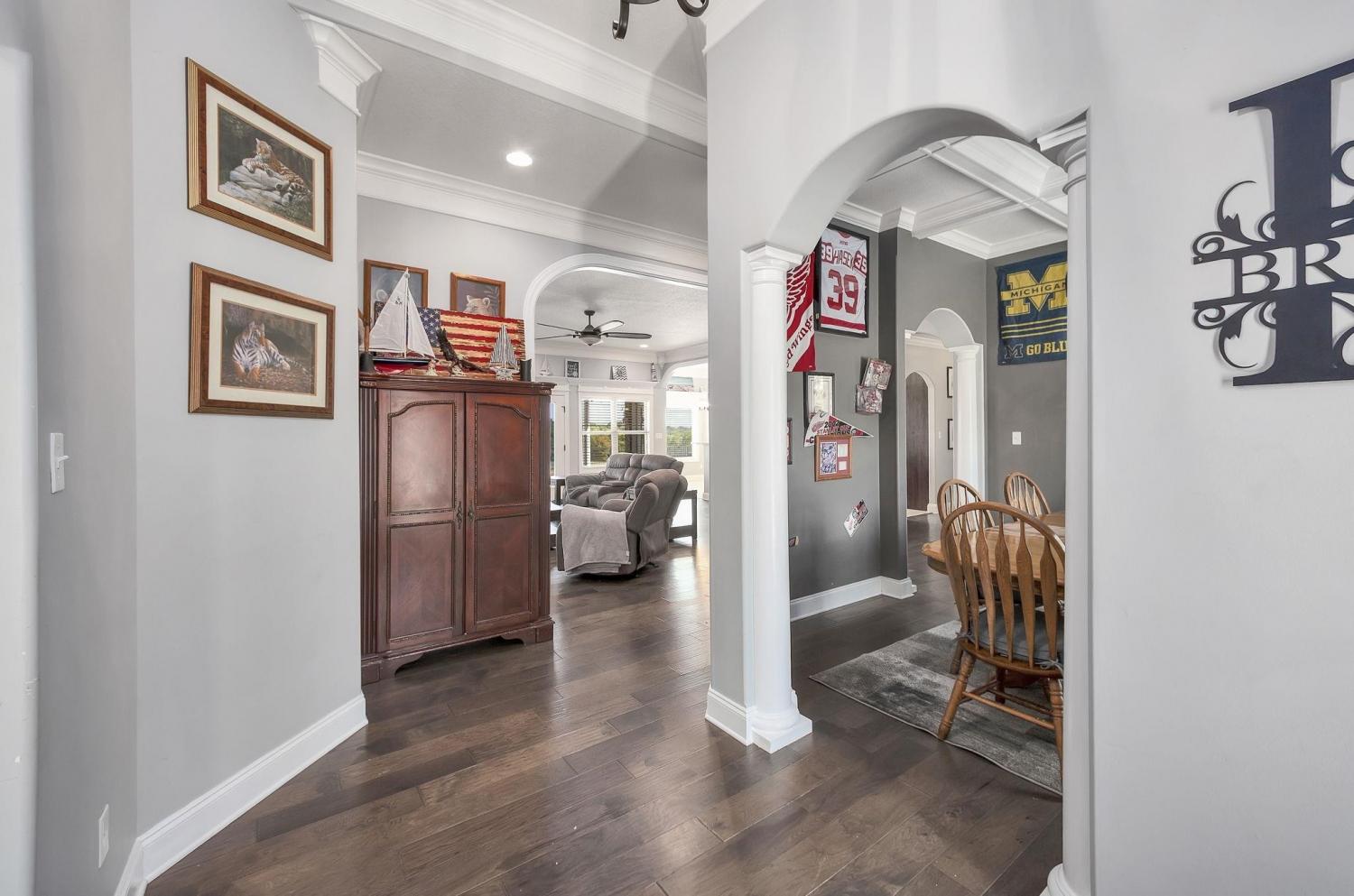 Custom-Built Home by Bill Davis on 3.7 Acres with Pond – A Must-See! This stunning 4-bedroom, 3-bath home with a 2-car garage offers exceptional craftsmanship and thoughtful design, all set on a picturesque 3.7-acre lot complete with a pond. Step inside to discover an open, split floor plan with hardwood floors and elegant 5-inch crown molding throughout. The gourmet kitchen features granite countertops, custom cabinetry, a spacious pantry, and is ideal for both everyday living and entertaining. Enjoy the comfort of a separate dining room and an oversized laundry room. Rounded archways add architectural charm, while an unfinished bonus room offers potential for additional space. The beautifully landscaped yard includes a partially fenced backyard with durable steel post and wood fencing, plus a covered back patio—perfect for relaxing or entertaining outdoors. Built with high-quality materials and meticulous attention to detail, this is not your average cookie-cutter home.