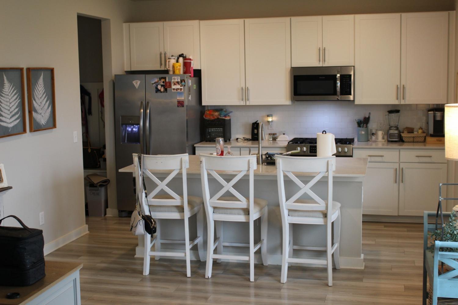 HURRY WON'T LAST! Prime location in the highly desirable Harvest Point community! Charming 4 bedroom, 2.5 bath on a premium fenced lot. Kitchen features a large island, stainless appliances, a breakfast bar. Primary suite features a tray ceiling, walk-in closet, full ensuite bath. First floor LVP flooring throughout, versatile flex space. Beautiful outdoor spaces includes front and back covered patios. Other features include, subway tile back-splash, quartz counter tops. Amenities include resort style pool, clubhouse, dog park, shops, walking trails, kids' playground and community garden.