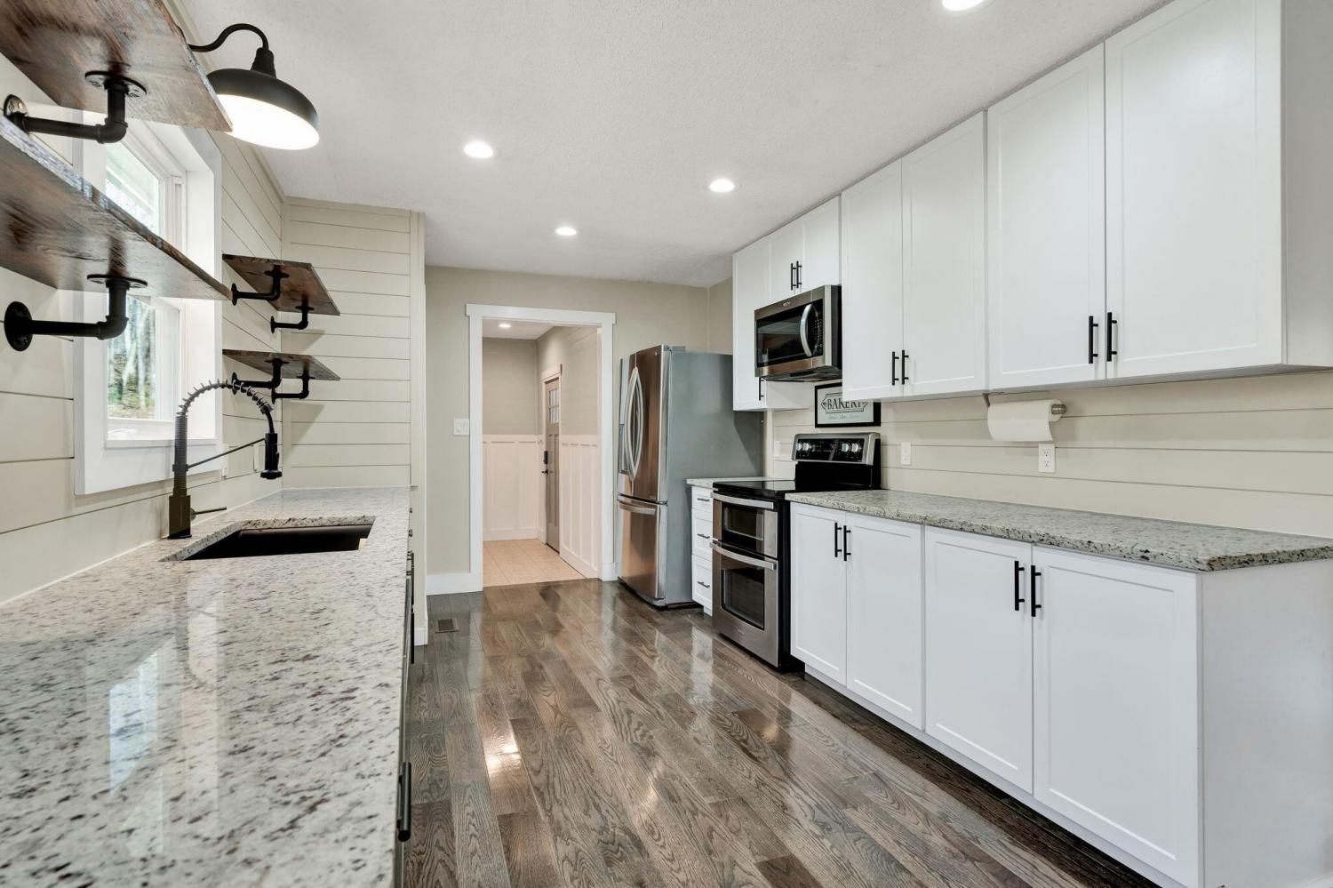 Discover your perfect blend of comfort and convenience in this charming three-bedroom, Two-bathroom home that proves good things do come in thoughtfully designed packages. At 1,300 square feet, this newly renovated home maximizes every inch while maintaining an open, welcoming atmosphere that feels much larger than its footprint suggests. Step inside to find gleaming hardwood floors that flow throughout the living spaces, creating warmth and continuity. The heart of the home showcases a stunning kitchen featuring elegant granite countertops and stainless steel appliances that will make your inner chef smile with anticipation. Whether you're preparing a quiet breakfast or hosting dinner parties, this space delivers both style and functionality. The generous 5-acre lot size offers something increasingly rare - genuine privacy without isolation. You'll enjoy the peace of your own sanctuary while remaining delightfully close to everything you need. It's like having your cake and eating it too, except the cake is your daily commute and the eating is actually enjoying it. The primary bedroom provides a personal retreat, while two additional bedrooms offer flexibility for family, guests, or that home office you've been promising yourself. With three full bathrooms, morning routines become less like traffic jams and more like smooth sailing. This property strikes that elusive balance between suburban convenience and rural tranquility. You're positioned perfectly to access shopping, dining, and recreational opportunities while maintaining the serenity of your private oasis. The recent renovations mean you can simply move in and start living your best life immediately. Call and schedule your showing today!