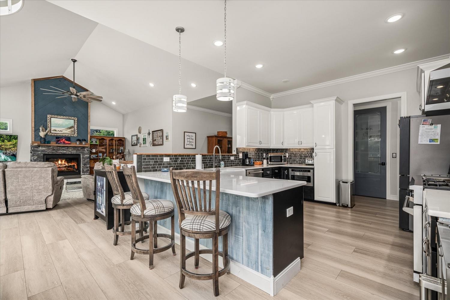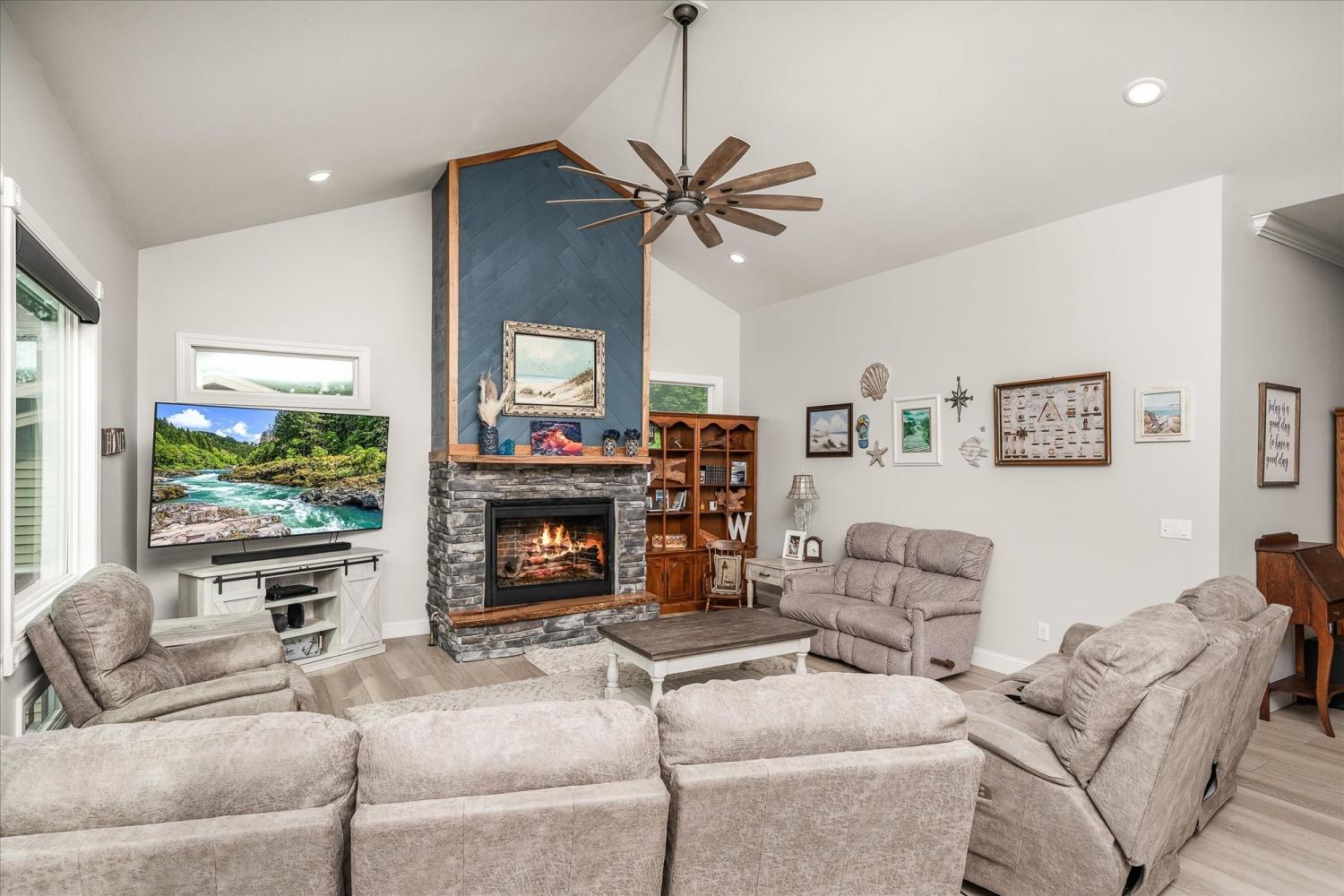 Welcome to this exquisite lakefront estate, newly built in 2023 and perfectly positioned along the shoreline of Lake Tansi. With panoramic lake and mountain views from nearly every room, this custom-crafted home offers the ideal balance of refined design, modern comfort, and natural beauty. Step inside to soaring ceilings, 8-foot solid-core doors, and an open-concept layout filled with natural light. The great room features a cozy gas fireplace and an entire wall of windows that frame the peaceful water views. The kitchen is a culinary masterpiece, complete with quartz countertops, a high-end gas range, double ovens, a waterfall island with breakfast bar seating, and a spacious double-door pantry. The main level includes three well-appointed bedrooms, including a luxurious primary suite with private deck access, a generous walk-in closet, and a spa-like bathroom featuring dual vanities and a beautifully tiled walk-in shower. Upstairs, you'll find a private guest suite and full bath, perfect for hosting friends and family. The fully finished walkout basement is an entertainer’s dream, showcasing two additional rooms, a half bath, and a custom handcrafted Hawaiian wood bar—ideal for gatherings, game nights, or relaxing with a view. Step outside to a covered patio, complete with a hot tub and built-in gas grill, both of which convey with the property. Additional Features Include: Private motorized boat slip 3-car garage Tankless on-demand water heater Zoned mini-split HVAC systems Dual sump pump system Covered rear deck with uninterrupted views Whether you're looking for a full-time residence or an extraordinary vacation retreat, this property offers everything you need to enjoy life on the lake in style. Schedule your private showing today!