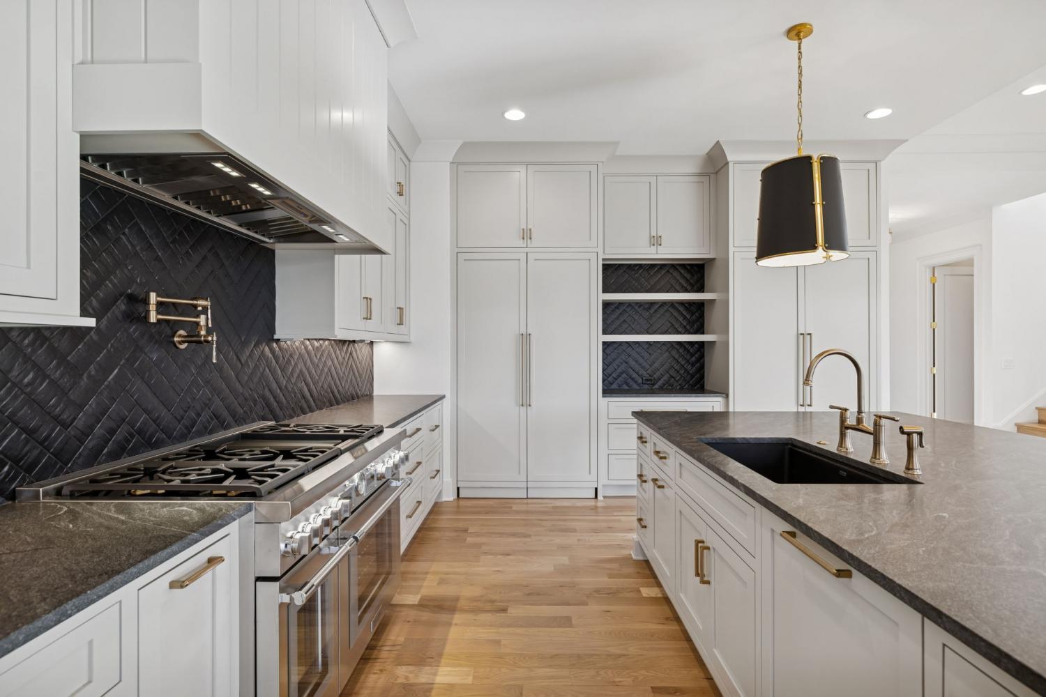 Brand new fantastic price! This beautiful Modern Farmhouse has a total of 8,090 sq ft.! As you enter the front door you are made aware of how beautiful the home & the setting are, as you look through the coffered ceiling foyer, into Family Room over the covered porch to the trees in the back yard! Primary suite is on the main level with vaulted ceiling, spa like bathroom with 2 walk in closets. Also on the main floor is the elevator to all 3 levels, Study, Great Room, covered porch with fireplace & built in BBQ to enjoy the views. 2nd floor has 3 ensuite bedrooms, bonus room & theater room. On the lower level there is the 6th ensuite bedroom, game room, exercise room, rec room, a covered porch with fireplace & lots of storage. Truly a one of kind home in The Grove!