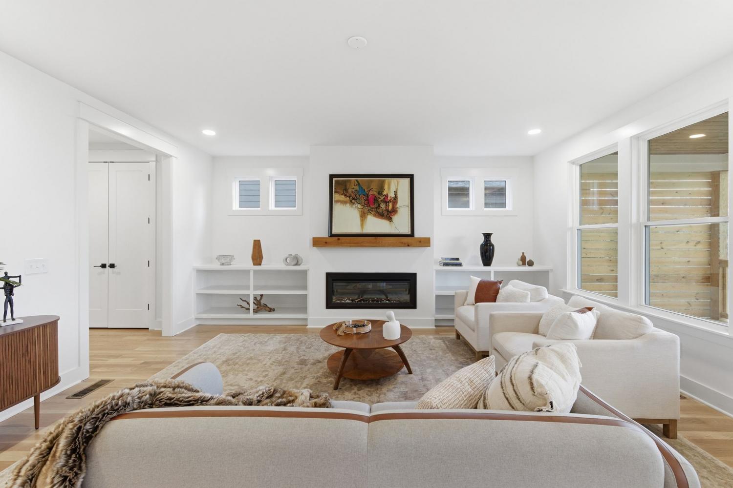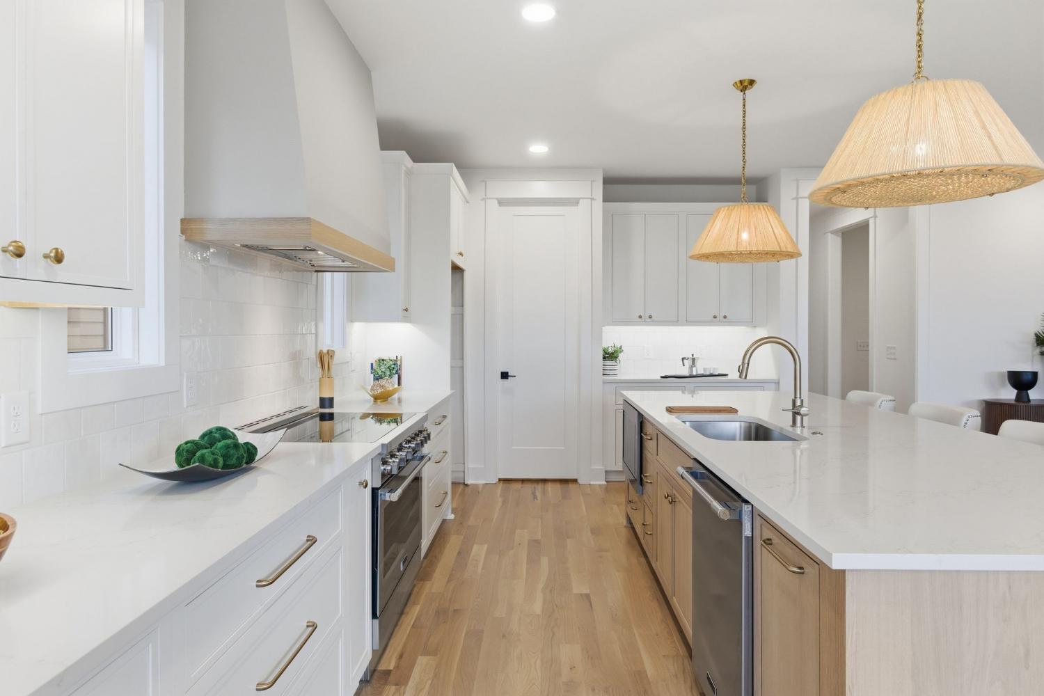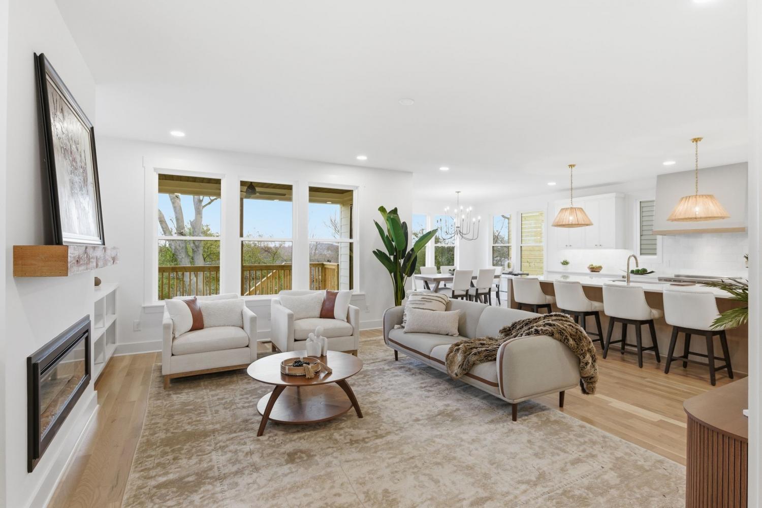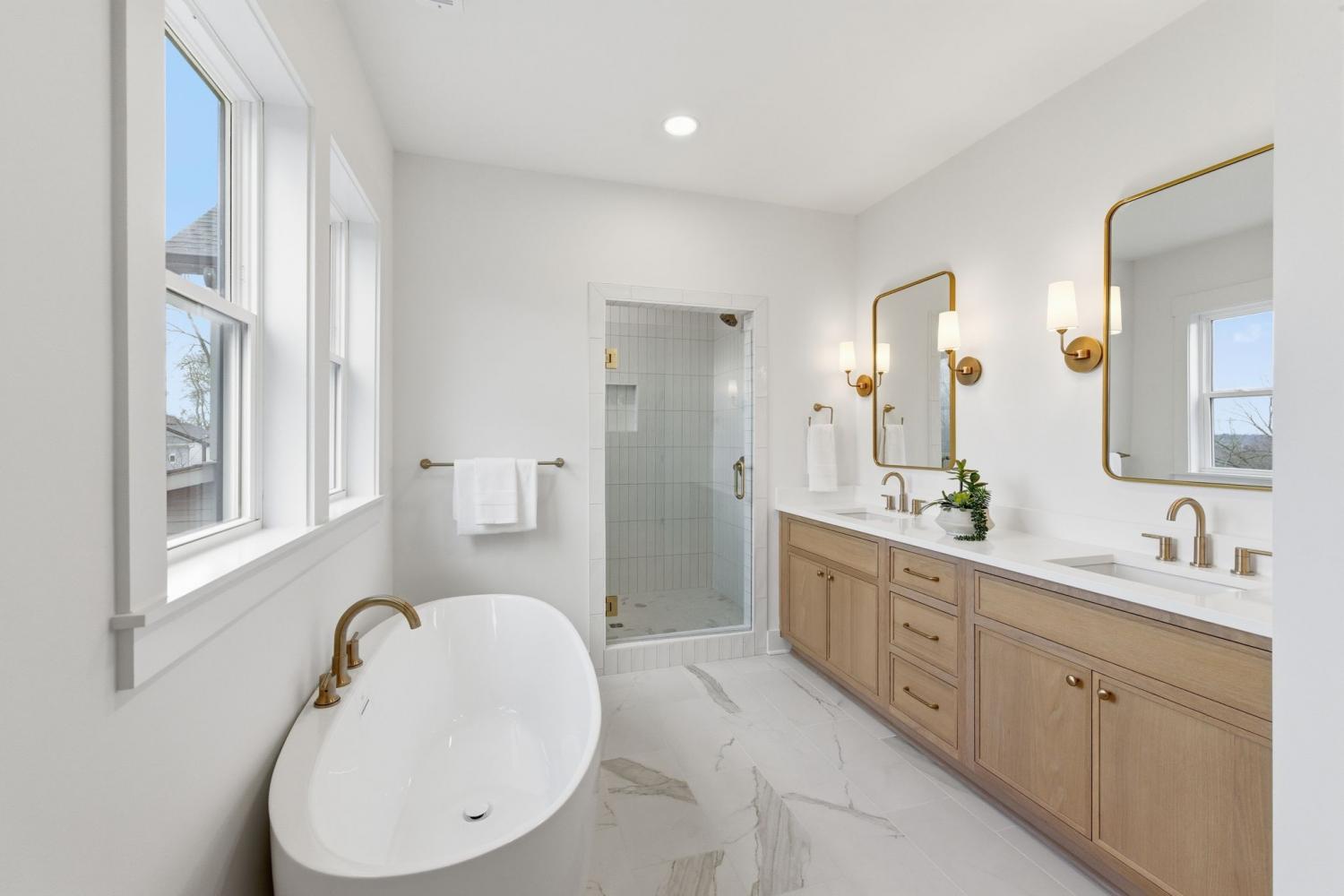 Brand New Construction in East Nashville – Experience modern living at its finest in this beautifully designed new construction home, flooded with natural light and high-end finishes throughout. The open-concept floor plan features a cozy fireplace framed by custom built-ins, creating a warm and inviting living space ideal for both relaxing and entertaining. The chef’s kitchen is a standout, showcasing custom inset cabinetry, quartz countertops, a designer tile backsplash, and an electric range—perfect for everyday cooking and hosting. A convenient main-level guest suite with a full bath offers flexible living or work-from-home options. Upstairs, the spacious owner’s suite is a true retreat with a vaulted ceiling, luxurious soaking tub, and a large glass-enclosed shower. Secondary bedrooms also feature impressive 12–14 ft vaulted ceilings, private ensuite baths, quartz countertops, and curated designer tile. Additional highlights include hardwood flooring throughout, modern lighting and plumbing packages, and a generous 2-car garage.