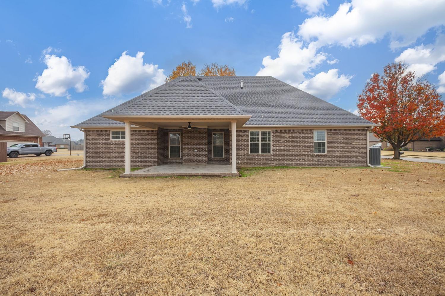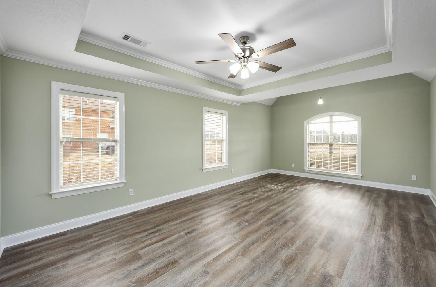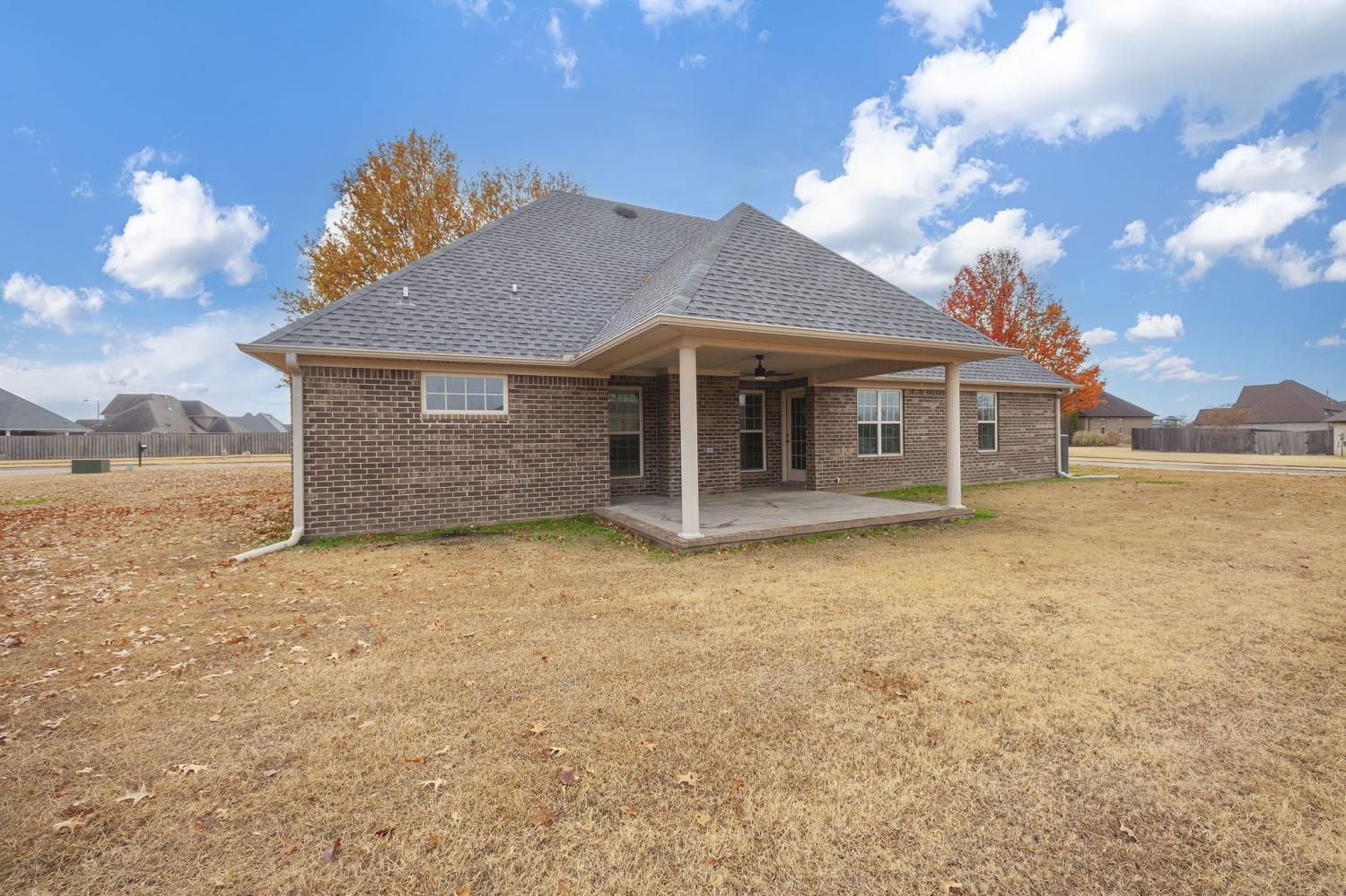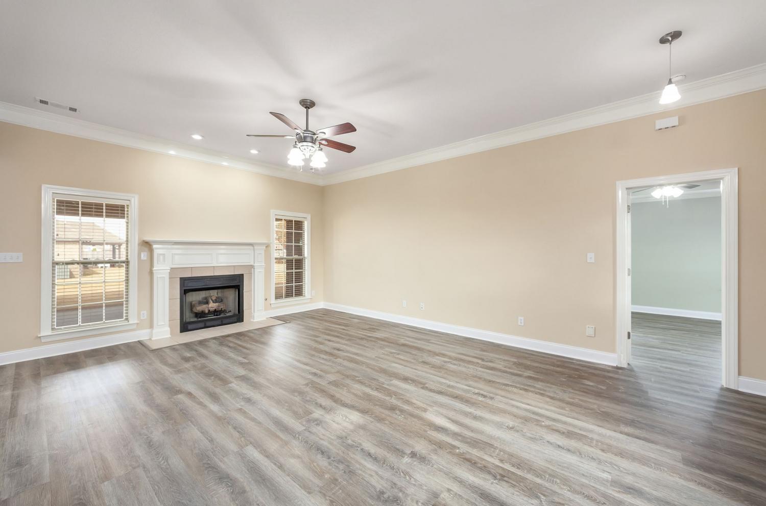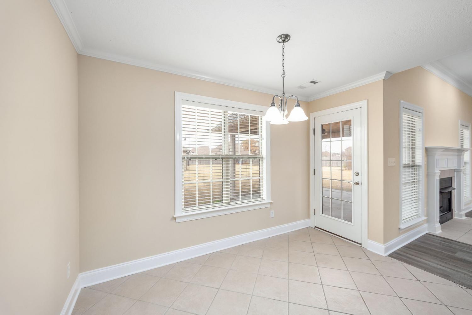 Discover easy living in this beautifully maintained all-brick home, designed for comfort and style. Step inside to an inviting open-concept layout where natural light pours in and a cozy fireplace serves as the heart of the spacious living room. The home shines with luxury vinyl flooring throughout, sleek stainless-steel appliances, and a bright breakfast nook that flows seamlessly from the kitchen. Host elegant dinners in the formal dining room or enjoy quiet mornings on the generous covered rear patio — perfect for year-round outdoor relaxation. Retreat to the serene primary suite featuring a dramatic tray ceiling, a spa-like ensuite bath with a separate walk-in shower, luxurious jetted Jacuzzi tub, and dual vanities. Move-in ready, effortlessly stylish, and built to last — this home checks every box for relaxed, low-maintenance living. Schedule your private tour today!