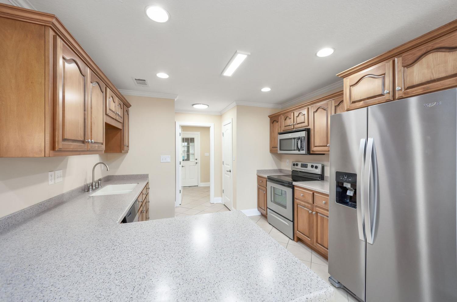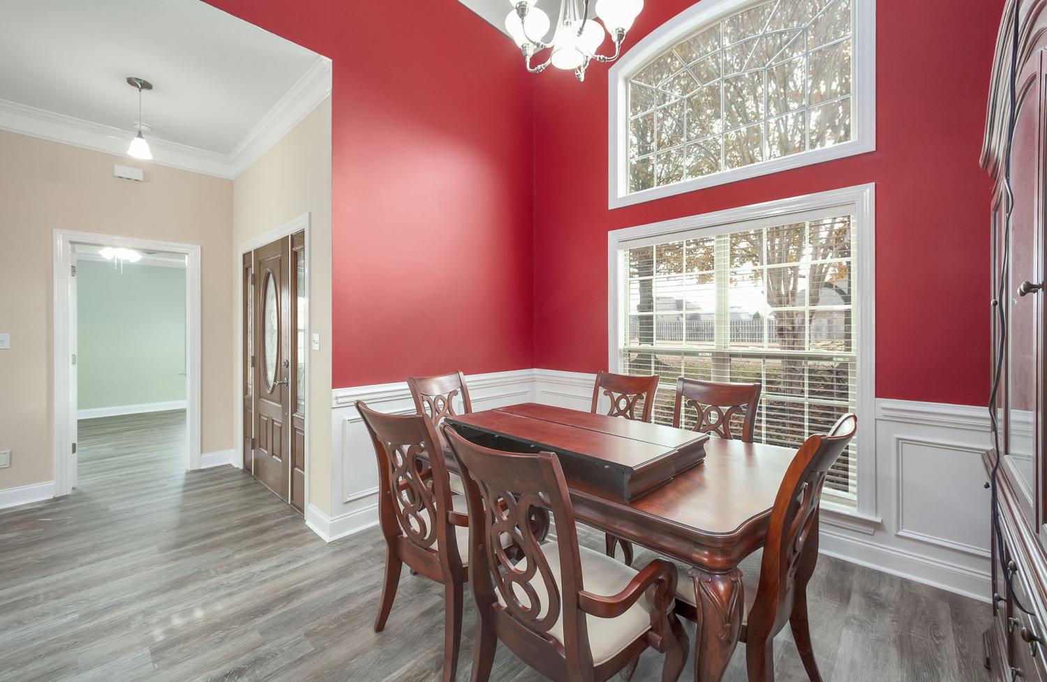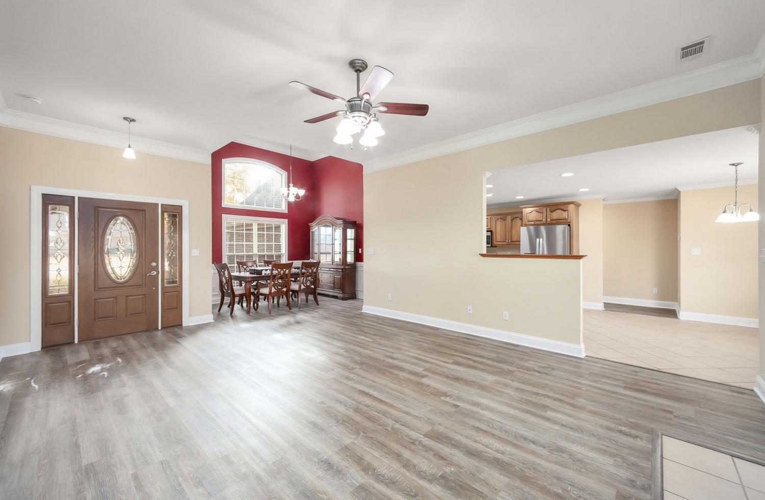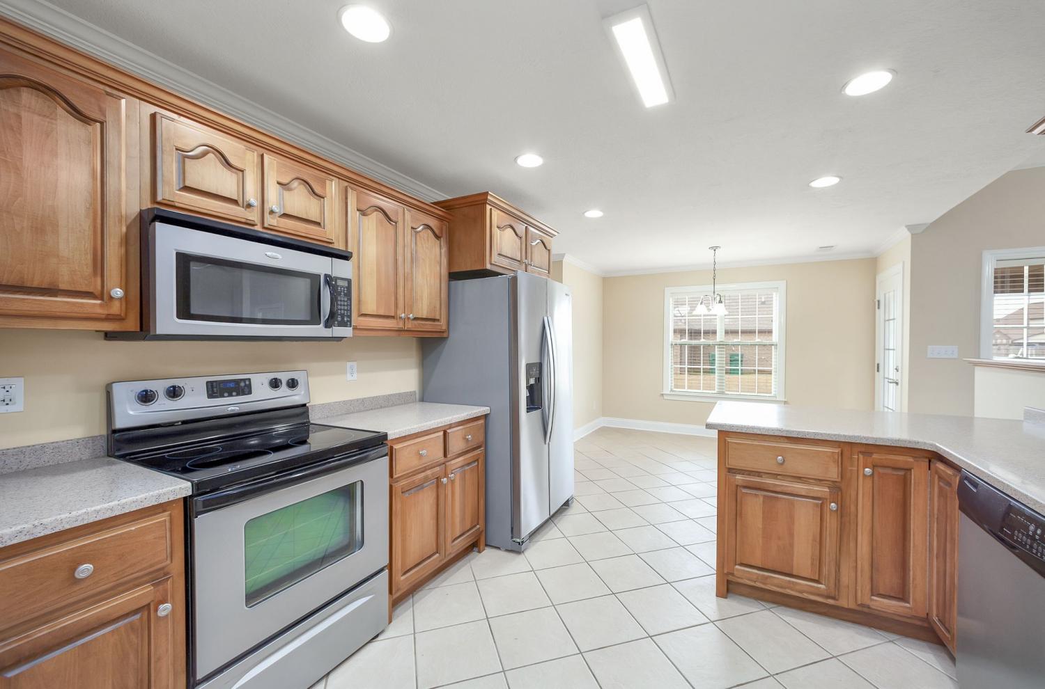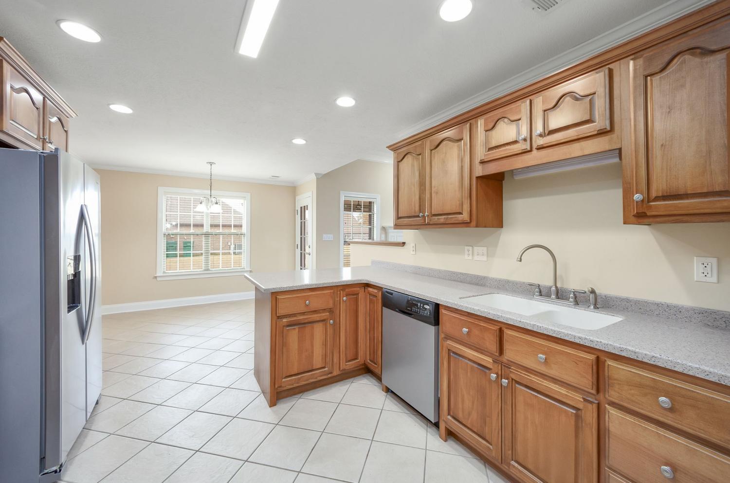 Discover easy living in this beautifully maintained all-brick home, designed for comfort and style. Step inside to an inviting open-concept layout where natural light pours in and a cozy fireplace serves as the heart of the spacious living room. The home shines with luxury vinyl flooring throughout, sleek stainless-steel appliances, and a bright breakfast nook that flows seamlessly from the kitchen. Host elegant dinners in the formal dining room or enjoy quiet mornings on the generous covered rear patio — perfect for year-round outdoor relaxation. Retreat to the serene primary suite featuring a dramatic tray ceiling, a spa-like ensuite bath with a separate walk-in shower, luxurious jetted Jacuzzi tub, and dual vanities. Move-in ready, effortlessly stylish, and built to last — this home checks every box for relaxed, low-maintenance living. Schedule your private tour today!