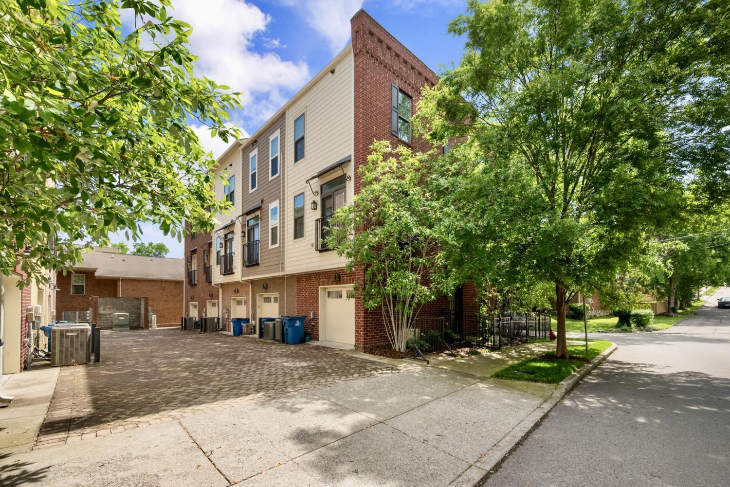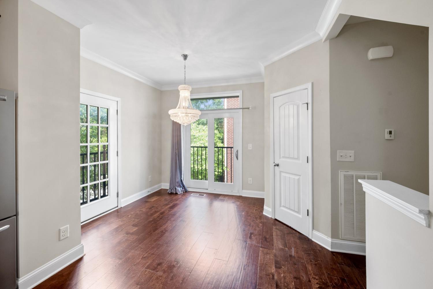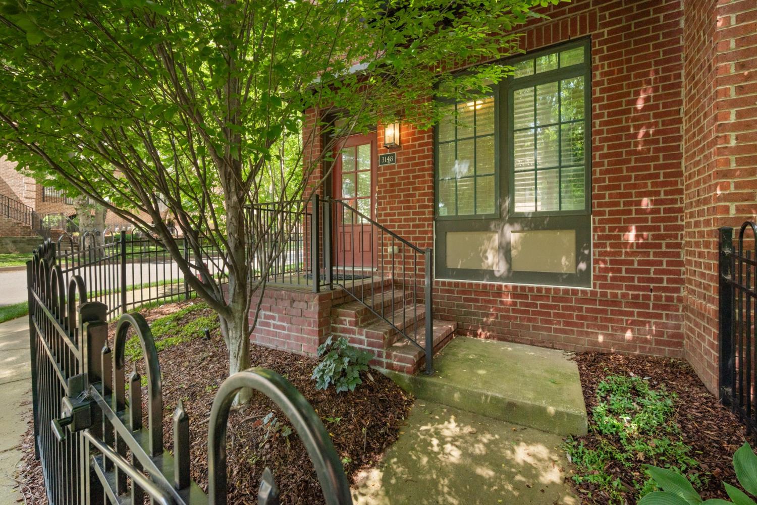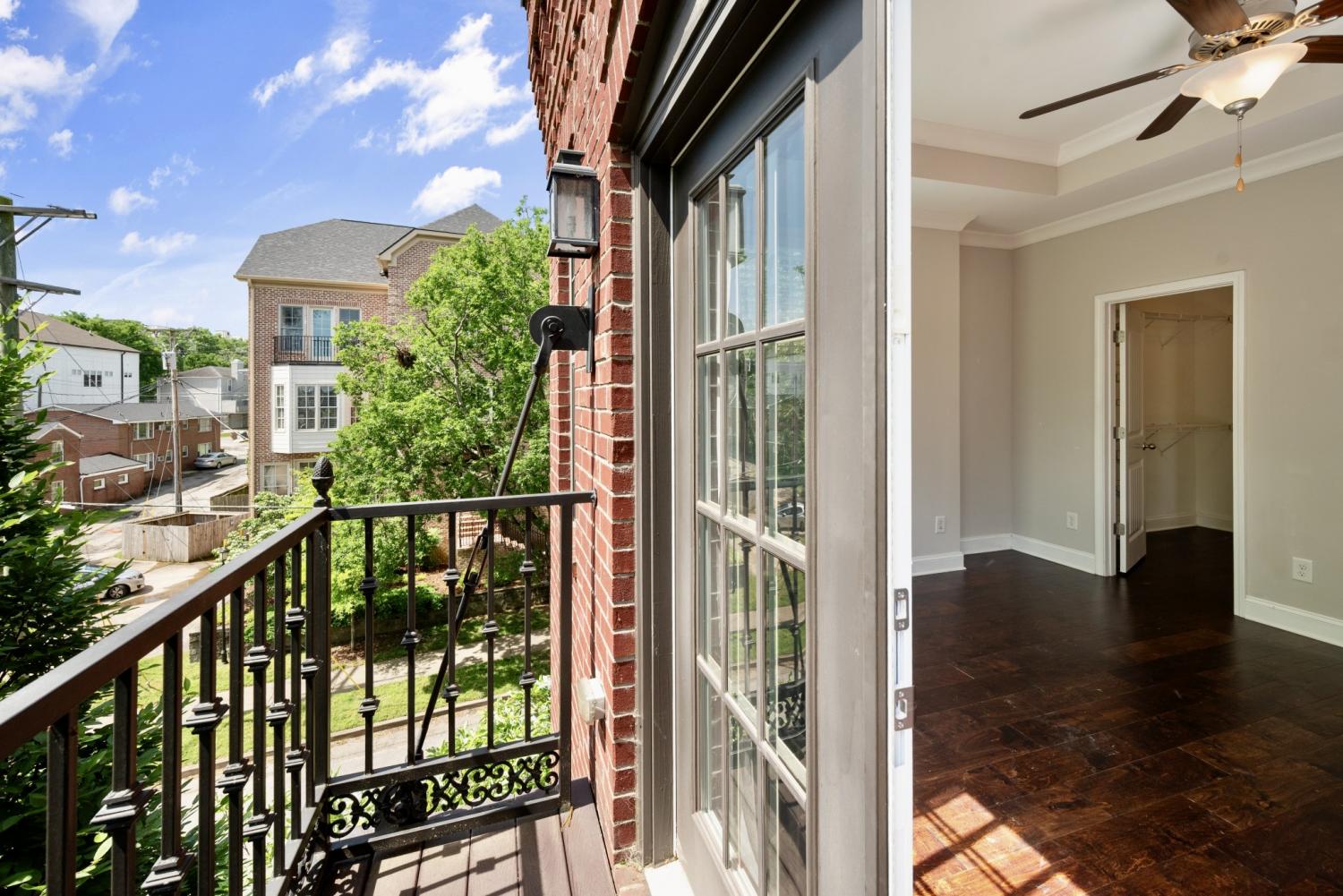 Modern Midtown living meets effortless charm in this quiet, corner-lot end unit just steps from Centennial Park. Sunlight fills the main level, where hardwood floors, classic trim, and an easy, open flow create a welcoming backdrop for both relaxing and entertaining. The kitchen serves as the heart of the home with granite countertops, stainless-steel appliances, rich cabinetry, and an oversized island that opens into the dining and living spaces. Multiple Juliet balconies throughout invite fresh air and offer peaceful views of mature trees, giving the home a calm, tucked-away feel despite its central location. The dining area is accented by a statement light fixture and large windows, while the spacious living room offers flexibility for your ideal layout. Upstairs, the private owner’s suite features its own balcony, a tray ceiling, a generous walk-in closet, and a spa-inspired bath with a double granite vanity and tiled shower with a built-in bench. A stylish powder room on the reception level adds convenience for guests, and the one-car garage — accessed via a charming paver-lined courtyard — brings everyday ease. Thoughtfully maintained landscaping surrounds the property and enhances its curb appeal. With trails, gardens, gathering spaces, and the iconic Parthenon just a short stroll away, Centennial Park truly feels like an extension of the neighborhood. This is a rare opportunity to enjoy comfort, walkability, and Nashville living at its most convenient.