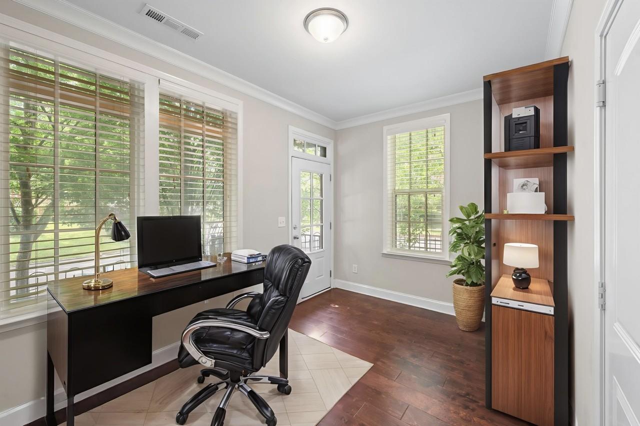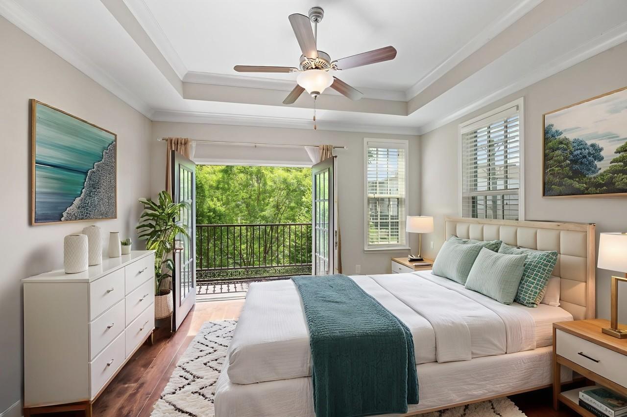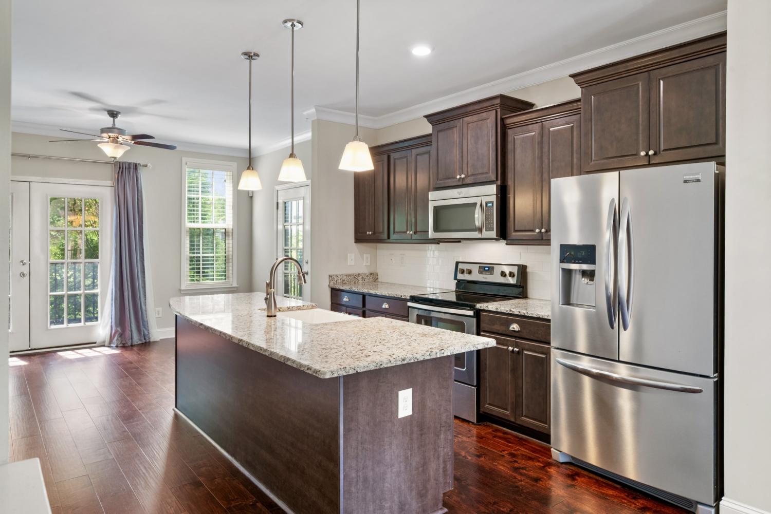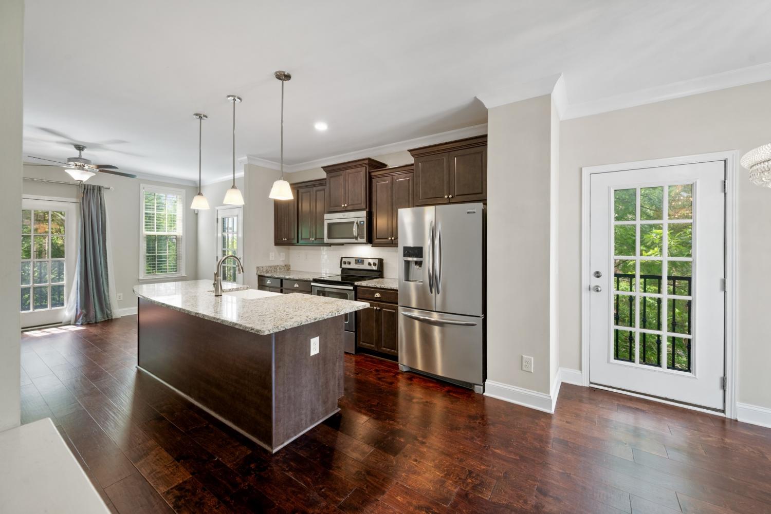Modern Midtown living meets effortless charm in this quiet, corner-lot end unit just steps from Centennial Park. Sunlight fills the main level, where hardwood floors, classic trim, and an easy, open flow create a welcoming backdrop for both relaxing and entertaining. The kitchen serves as the heart of the home with granite countertops, stainless-steel appliances, rich cabinetry, and an oversized island that opens into the dining and living spaces. Multiple Juliet balconies throughout invite fresh air and offer peaceful views of mature trees, giving the home a calm, tucked-away feel despite its central location. The dining area is accented by a statement light fixture and large windows, while the spacious living room offers flexibility for your ideal layout. Upstairs, the private owner’s suite features its own balcony, a tray ceiling, a generous walk-in closet, and a spa-inspired bath with a double granite vanity and tiled shower with a built-in bench. A stylish powder room on the reception level adds convenience for guests, and the one-car garage — accessed via a charming paver-lined courtyard — brings everyday ease. Thoughtfully maintained landscaping surrounds the property and enhances its curb appeal. With trails, gardens, gathering spaces, and the iconic Parthenon just a short stroll away, Centennial Park truly feels like an extension of the neighborhood. This is a rare opportunity to enjoy comfort, walkability, and Nashville living at its most convenient.
