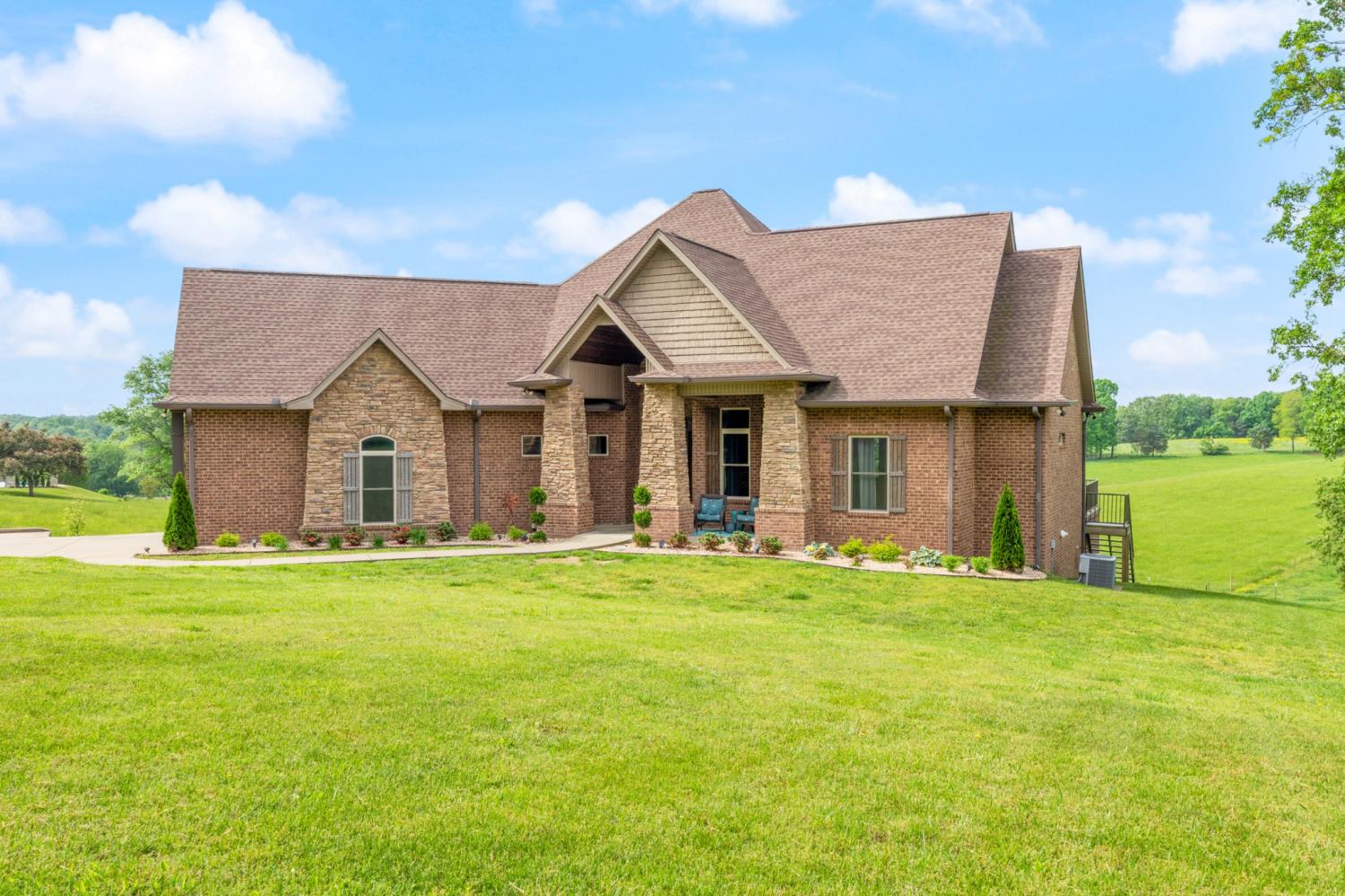 Cradled in a quiet Tennessee landscape with views that truly stop you in your tracks, this 1-owner, custom-built Derrick Gann home blends craftsmanship, comfort, and countryside soul. Step inside and you’re met with soaring ceilings, warm hardwoods, and sunlight that drifts through every window - painting rolling hills like living art. The open-concept living area is made for everyday ease and unforgettable gatherings, anchored by a bold stone fireplace that whispers “stay awhile.” It flows into a dream-worthy kitchen with granite countertops, Spencer Mill custom cabinetry, a farmhouse sink, gas stove, built-in microwave, and a generous pantry ready for every craving and creation. The primary suite feels like its own private hideaway, complete with a *massive* walk-in shower and a closet so thoughtfully designed you may linger just to admire the order of it all. Two additional bedrooms share a stylish Jack & Jill bath, and the oversized finished basement offers room for everything... storage, hobbies, guests... with an unfinished section begging to become a wine cellar, workshop, or creative studio. Step outdoors and the magic continues: a new 16x32 in-ground pool (2024), wide-open space for evenings under the stars, and the ideal layout for a future poolside kitchen in the basement garage. Dreaming of a mini farm? Bring your animals - there’s a 40x60 hay/equipment barn, a 34x42 shop with 200-amp service, and sprawling pastureland to roam. And with the home pre-wired for a generator, peace of mind comes built-in. And when you’re ready to explore beyond your own private haven, you’re just minutes from Dickson, along with easy routes to I-40, I-840, Franklin, Columbia, and Nashville. This isn’t simply a home - it’s a lifestyle waiting to be lived. Come for the view. Stay for everything else.