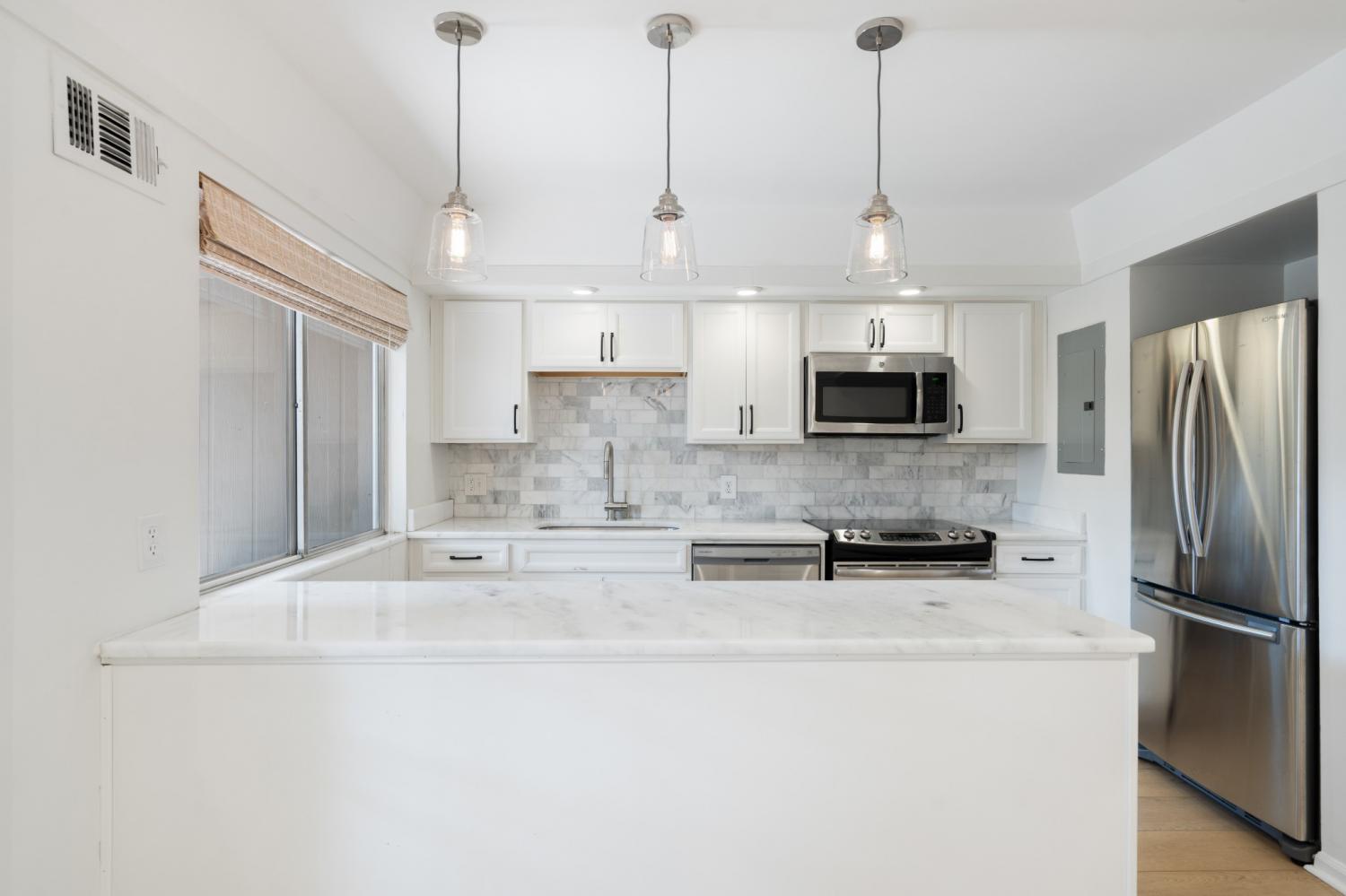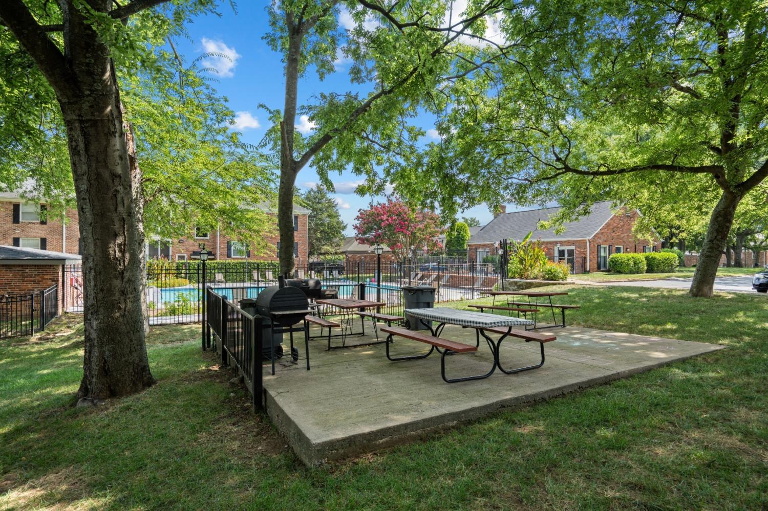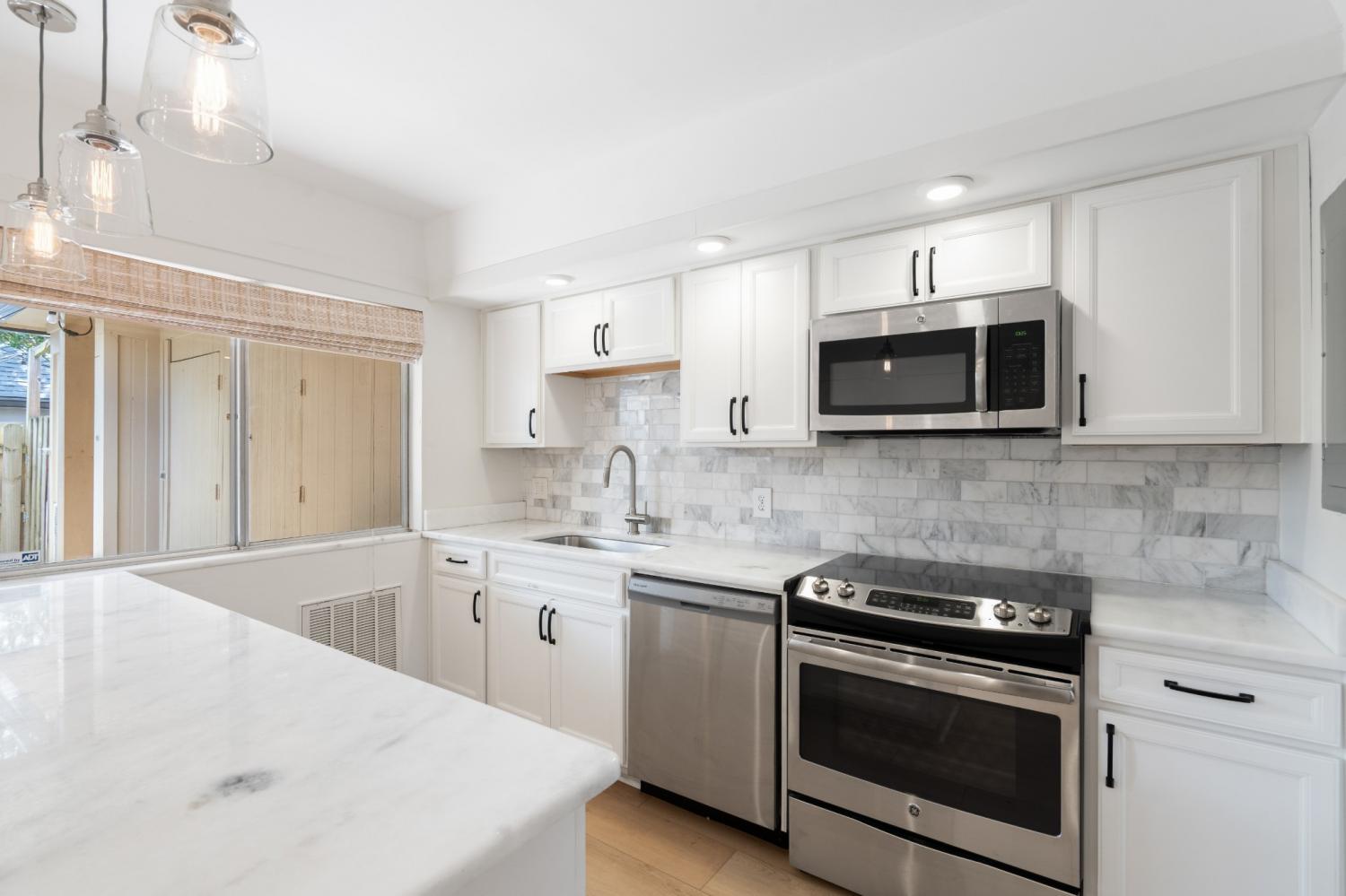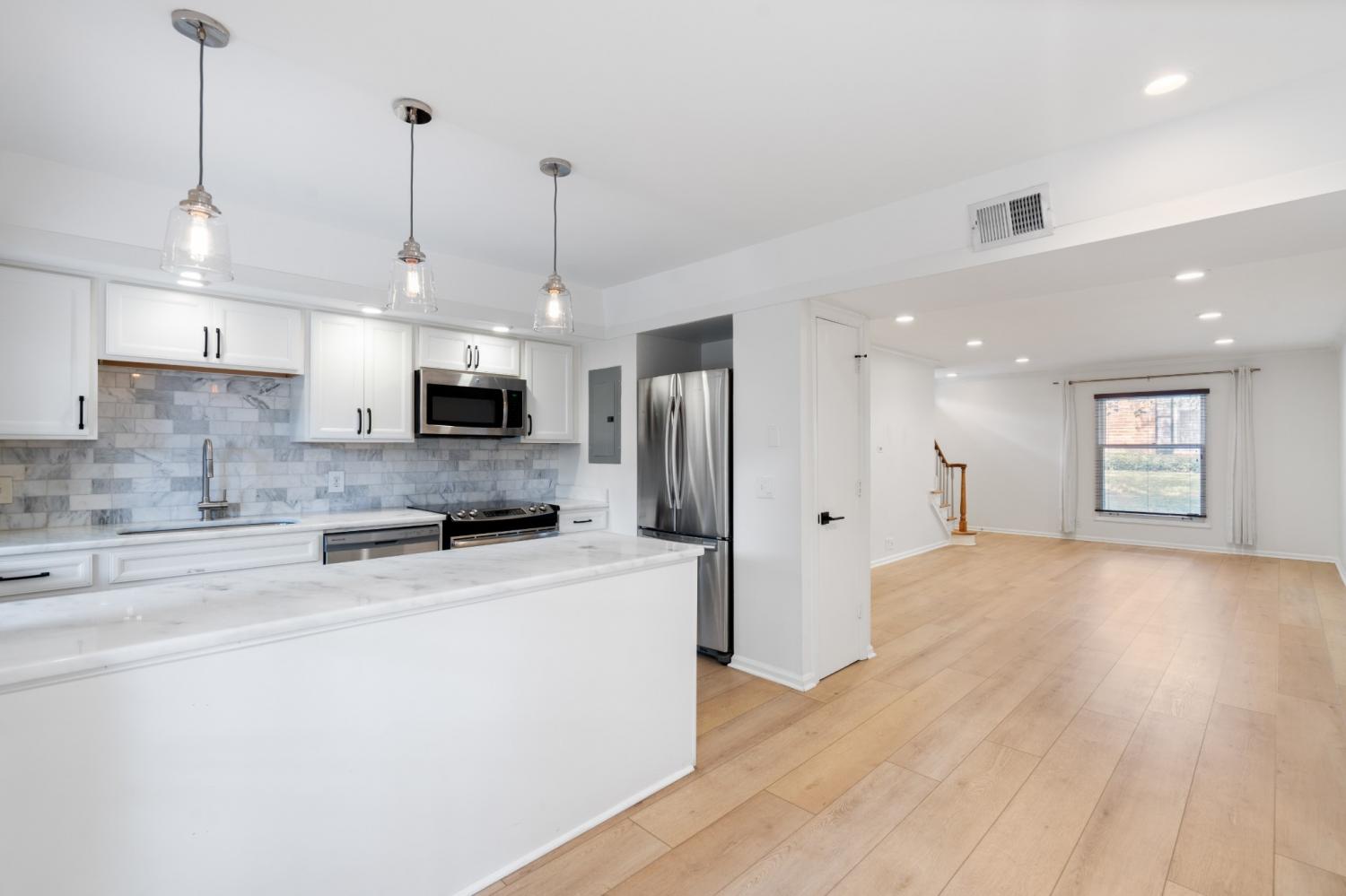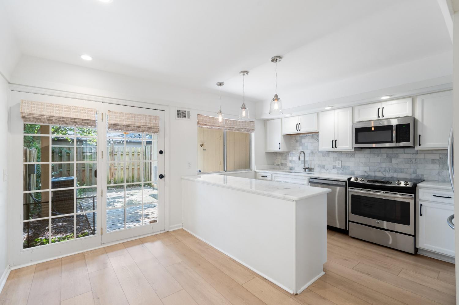 Beautifully updated end-unit townhome offering two bedrooms and one-and-a-half baths in a shaded, tree-lined community just minutes from Green Hills conveniences like Whole Foods, Trader Joe’s, and the YMCA. The spacious great room flows into a sleek eat-in kitchen featuring quartz countertops, marble backsplash, stainless steel appliances, and a large island with bar seating. Brand NEW wide plank flooring downstairs, recessed lighting, and a private fenced patio with string lights add charm and comfort. Upstairs includes a full bath, dual closets, and laundry connections. Covered parking available. Community amenities include a pool, picnic area, and green space for outdoor enjoyment.