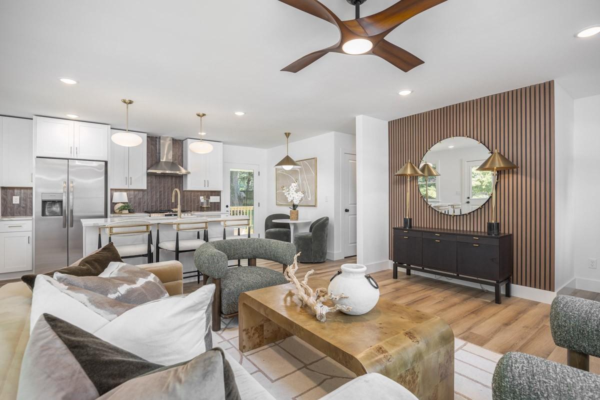 Welcome to this recently transformed home with a to-the-studs renovation. It boasts modern paint colors, sleek quartz counters, and stainless appliances. Enjoy the convenience of a smart Levitron electric panel, tankless water heater, green high efficiency inverter heat pumps, and an encapsulated crawl space. The primary suite on the first floor offers ease and privacy. Natural light floods the home, enhancing its warm ambiance. Outside, a private backyard with a huge covered deck awaits your gatherings. Perfectly situated, this home provides easy access to highways and is close to shopping, restaurants and grocery stores. Experience modern living at its best—comfort, style, and a prime location await!