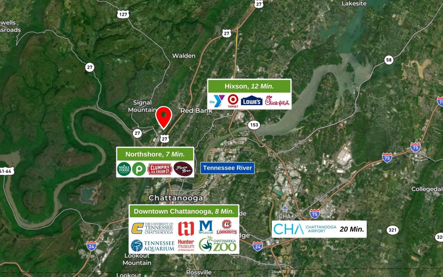 From downtown Chattanooga: Take US 27N to Signal Mountain Blvd exit. Keep right onto Signal Mountain Blvd. Take a right onto Mountain Creek Road. Community is on the right just down from Red Bank Elementary.