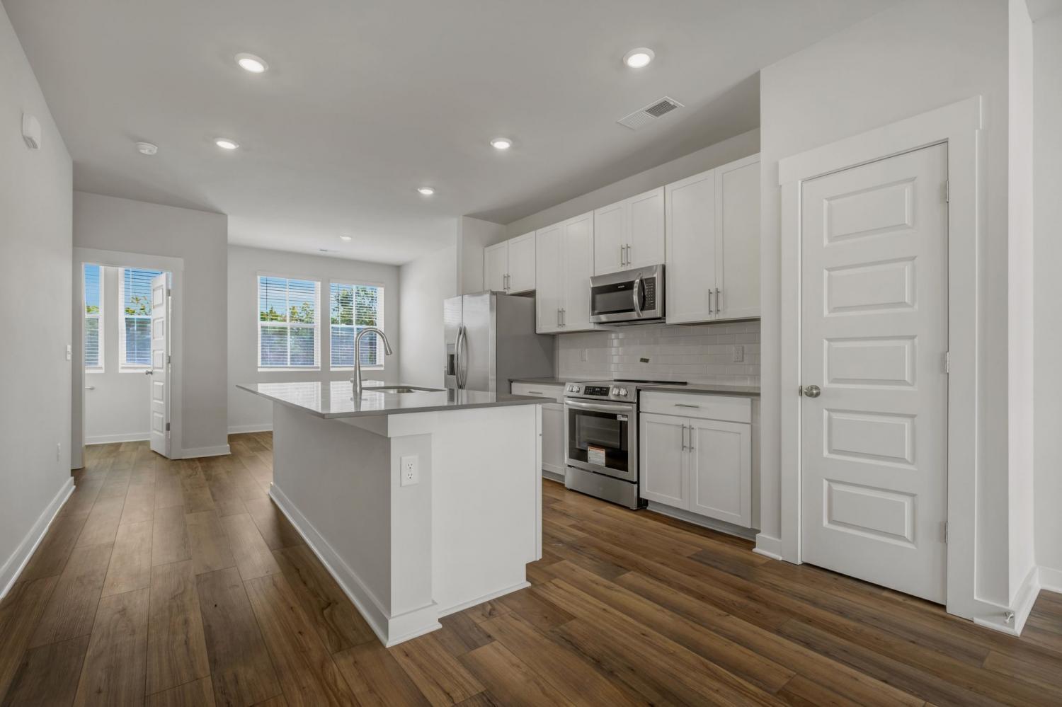 LOT #30 - Gatlinburg. Upon entry into this new three-story townhome is a convenient two-car garage for storage space. On the second floor is the main living area, featuring an expansive Great Room with direct access to a modern kitchen and dining area. Residing on the top level are two-bedroom suites situated at opposite ends of the home to grant privacy, both of which feature attached bathrooms for enhanced livability.