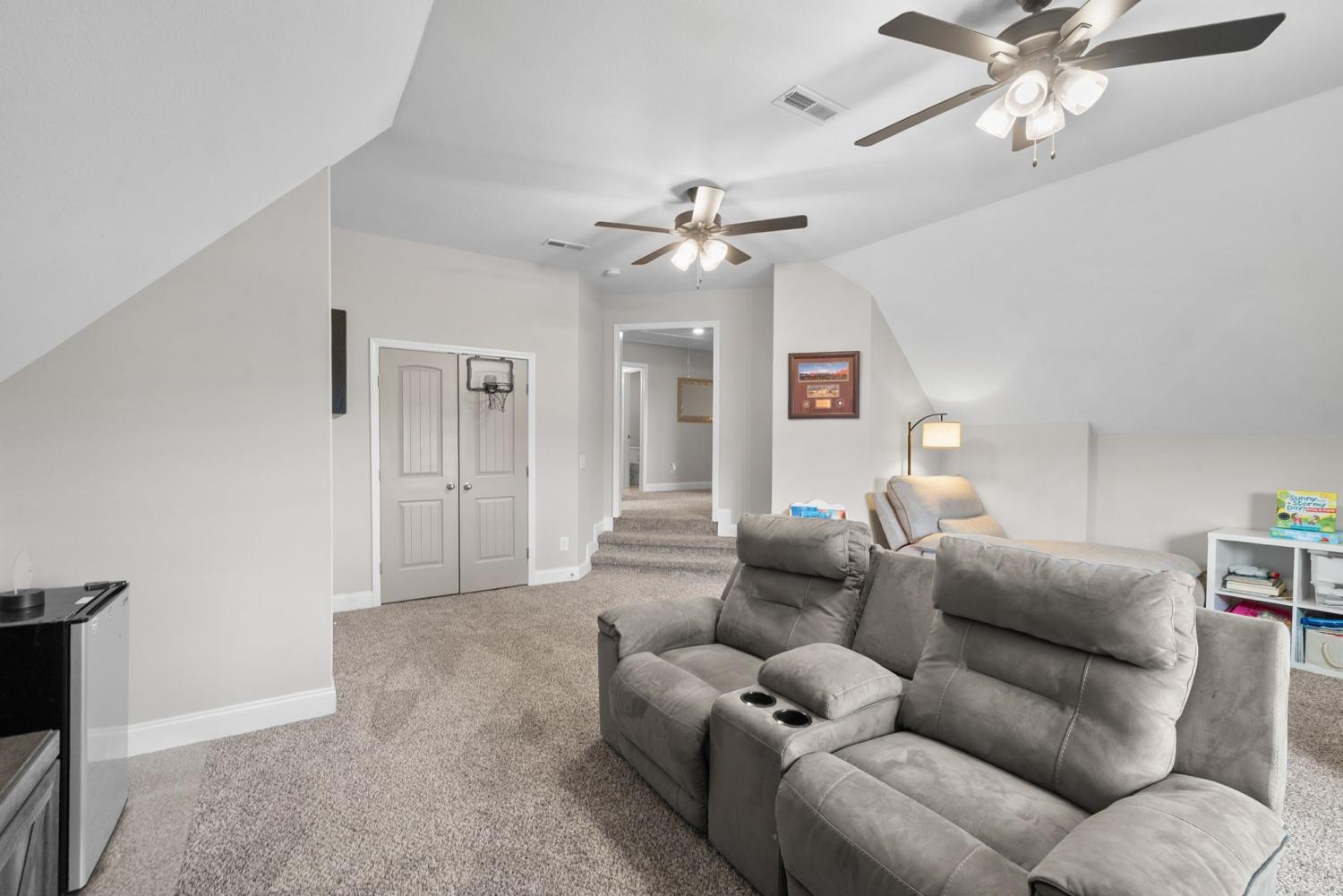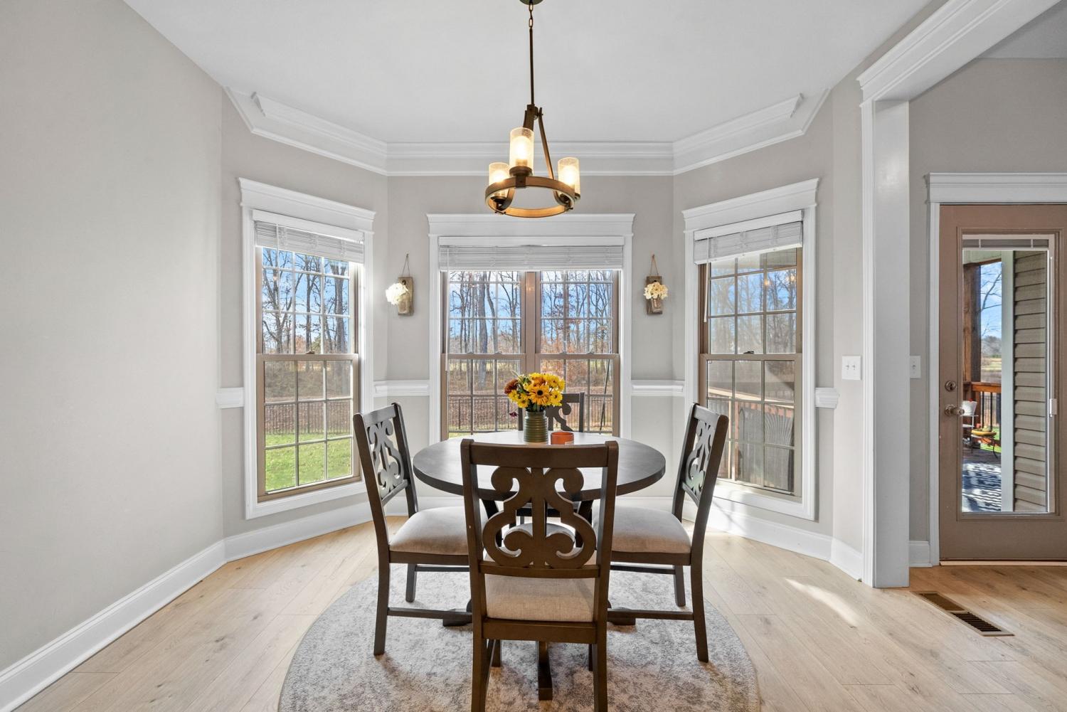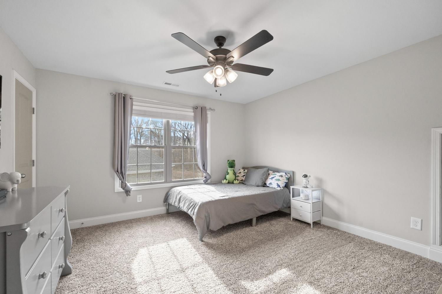Located in the sought after Easthaven community, this beautifully designed home blends comfort, style, and convenience. Residents enjoy resort style amenities including a pool, modern clubhouse, fitness center, playground, walking trail, and access to some of Clarksville’s Top Rated Schools. Perfectly positioned on a private, fully fenced, flat backyard, the home offers both privacy and outdoor usability. Tall ceilings and abundant natural light highlight the wide luxury vinyl plank flooring throughout the main level, no carpet on the first floor. The spacious living room feels bright and welcoming, flowing seamlessly into the gourmet kitchen featuring double ovens, an electric cooktop, stainless steel appliances, a Samsung touchscreen refrigerator, and elegant white granite countertops. The eat in dining area overlooks the backyard, while the formal dining room is perfect for gatherings and holiday entertaining. The oversized main level primary suite offers a peaceful retreat with dual built in closets and a spa inspired bath featuring separate vanities, an oversized tiled shower, and a soaking tub. A secondary bedroom on the main floor provides flexibility for guests or an office, supported by a full bath. A walk in laundry room with storage adds everyday convenience. Upstairs includes two spacious bedrooms with walk in closets, a double sink bathroom, and a large bonus room ideal for a media space, playroom, fitness area, and/or home office. There are endless possibilities! Enjoy year round outdoor living on the screened in patio, perfect for morning coffee, lemonade in the summer, or hot cocoa on winter mornings. The home also features a sodded yard and an oversized two car garage with new epoxy flooring. Located near Thirsty Goat Coffee & Beer Garden, shopping, grocery stores, and just minutes from Exit 11 for an easy commute to Nashville, this home offers exceptional Clarksville living. OPEN HOUSE: Saturday December 27th - 10:00A - 2:00P.