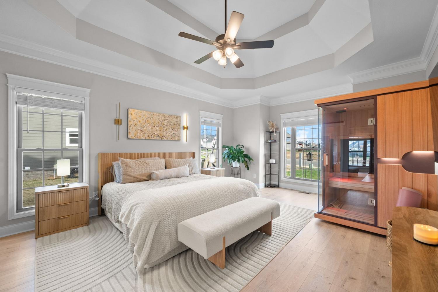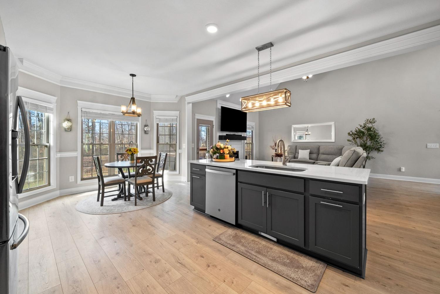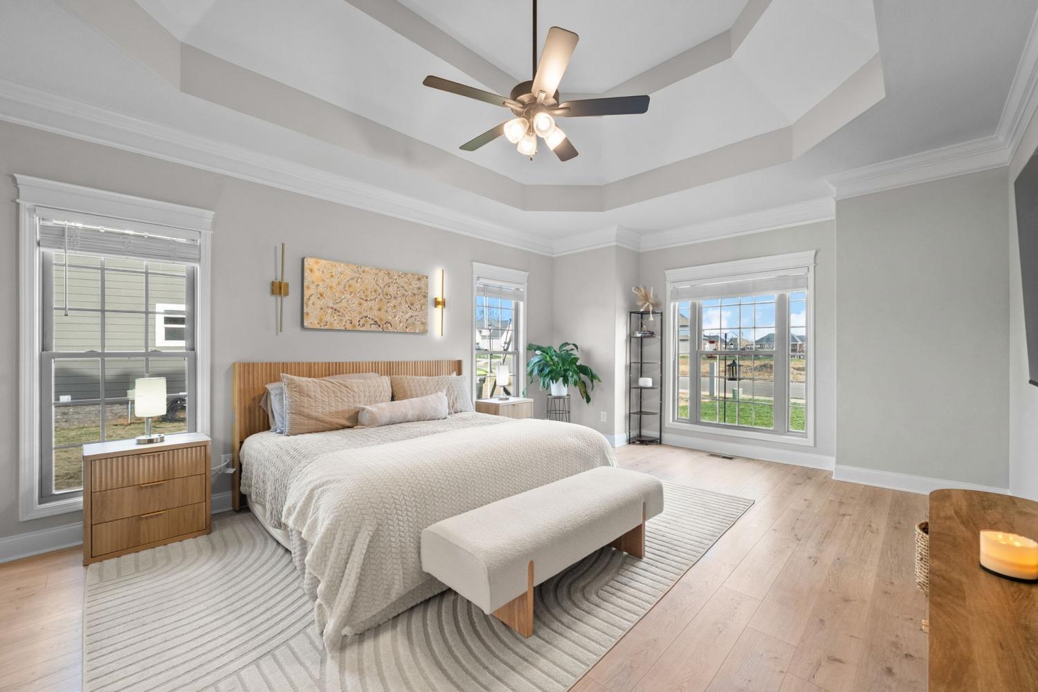 Located in the sought after Easthaven community, this beautifully designed home blends comfort, style, and convenience. Residents enjoy resort style amenities including a pool, modern clubhouse, fitness center, playground, walking trail, and access to some of Clarksville’s Top Rated Schools. Perfectly positioned on a private, fully fenced, flat backyard, the home offers both privacy and outdoor usability. Tall ceilings and abundant natural light highlight the wide luxury vinyl plank flooring throughout the main level, no carpet on the first floor. The spacious living room feels bright and welcoming, flowing seamlessly into the gourmet kitchen featuring double ovens, an electric cooktop, stainless steel appliances, a Samsung touchscreen refrigerator, and elegant white granite countertops. The eat in dining area overlooks the backyard, while the formal dining room is perfect for gatherings and holiday entertaining. The oversized main level primary suite offers a peaceful retreat with dual built in closets and a spa inspired bath featuring separate vanities, an oversized tiled shower, and a soaking tub. A secondary bedroom on the main floor provides flexibility for guests or an office, supported by a full bath. A walk in laundry room with storage adds everyday convenience. Upstairs includes two spacious bedrooms with walk in closets, a double sink bathroom, and a large bonus room ideal for a media space, playroom, fitness area, and/or home office. There are endless possibilities! Enjoy year round outdoor living on the screened in patio, perfect for morning coffee, lemonade in the summer, or hot cocoa on winter mornings. The home also features a sodded yard and an oversized two car garage with new epoxy flooring. Located near Thirsty Goat Coffee & Beer Garden, shopping, grocery stores, and just minutes from Exit 11 for an easy commute to Nashville, this home offers exceptional Clarksville living. OPEN HOUSE: Saturday December 27th - 10:00A - 2:00P.