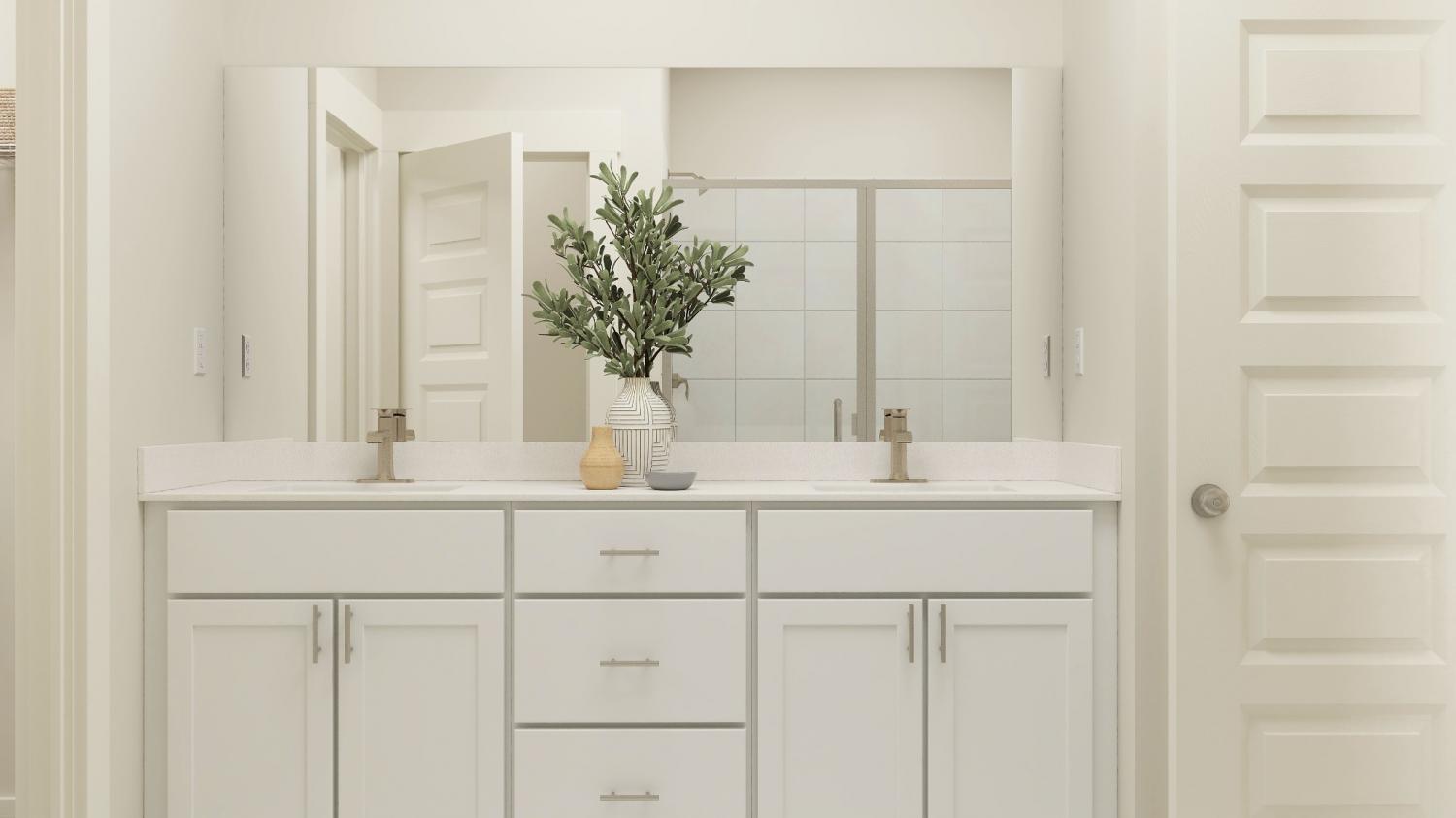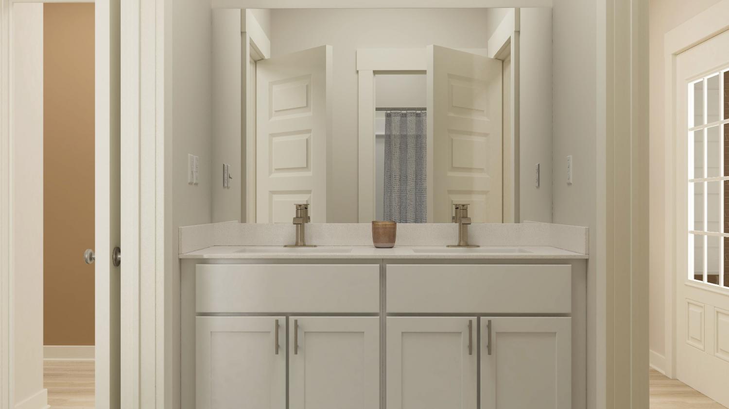 LOT #48 - Chestnut floorplan. With fantastic features including a mudroom near the garage entry, this single-level home boasts a low-maintenance layout designed for modern lifestyles. Two bedrooms are located off the foyer, leading to an open-concept floorplan with convenient access to a covered patio, ready for seamless entertaining and multitasking. The luxe owner’s suite is tucked away at the back of the home, complete with a spa-inspired bathroom and generous walk-in closet. *Images shown are from a nearby Chestnut in the community. Actual configuration and features may vary.