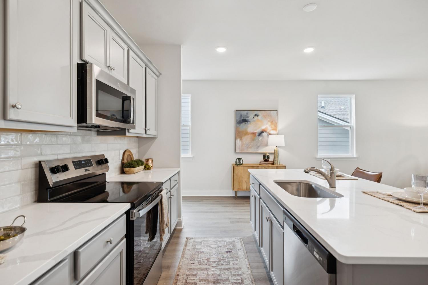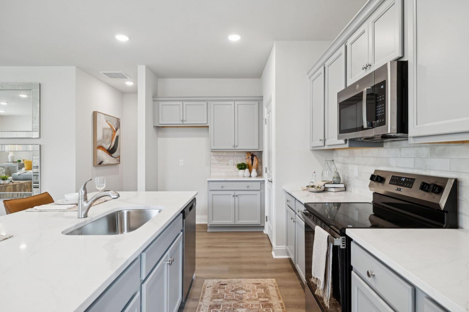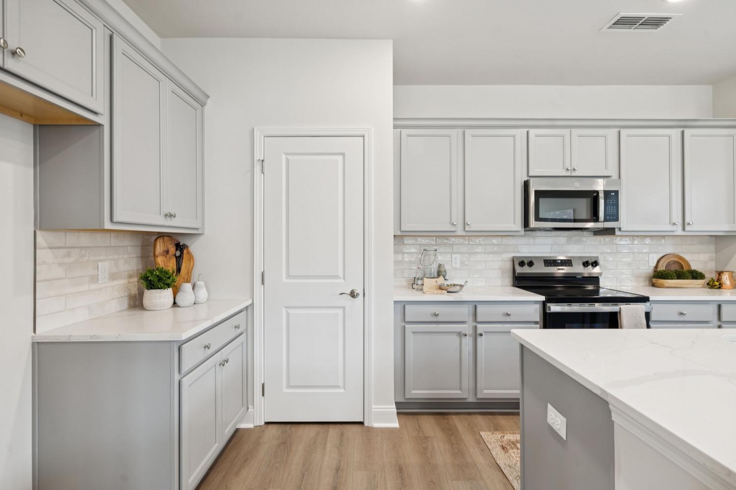 Homesite #127 – Welcome to Cedars at Cane Ridge, a thoughtfully designed 55+ community. The unique Palmer 3 bedroom plan is cleverly designed. After spending time in enjoying your wide open living space filled with natural lighting, fabulously designed kitchen showing the highly requested Canvas Collection by Ashton woods, perfect for entertaining, fall in love with the rest of this home! The spacious primary bedroom has the room and flow you are sure to enjoy. The primary bathroom offers large step in tile shower and double vanities separated by the entry of your huge walk in closet. What is different about this plan is that the two guest bedrooms, both have have access to a full bathroom, Additional highlights include luxurious vinyl plank flooring throughout the main living areas and a convenient laundry room at the garage entry. Don't forget that large inviting covered back patio for those evenings relaxing outdoors! Come and join us in the thriving Cane Ridge community. We are just 3 short miles from Tanger outlets, restaurants, parks, interstate 24, and more! See you soon! The Canvas Collection showcases quartz countertops, a herringbone tile backsplash, stainless steel appliances, and a spacious walk-in pantry. The kitchen flows into the dining area and family room, with seamless access to the rear covered patio—ideal for relaxed outdoor living. ctions include the new Tanger Outlets, dining options, TriStar Emergency Center, and abundant parks and recreation opportunities.