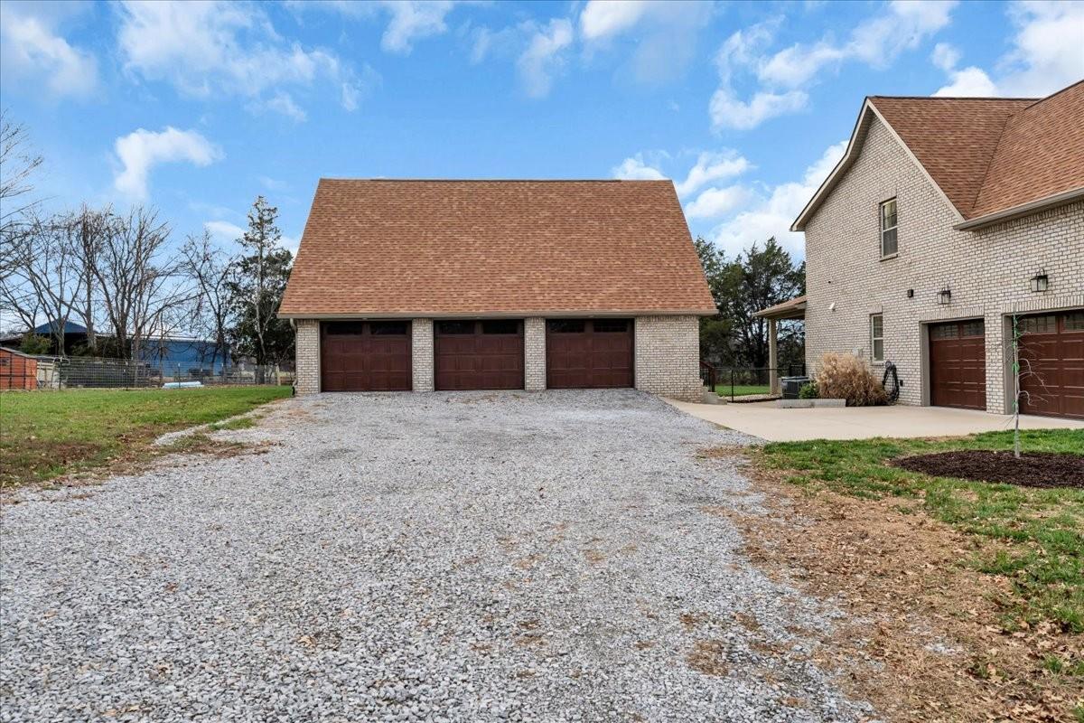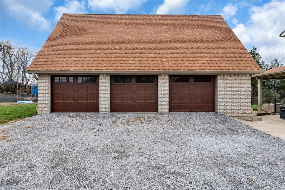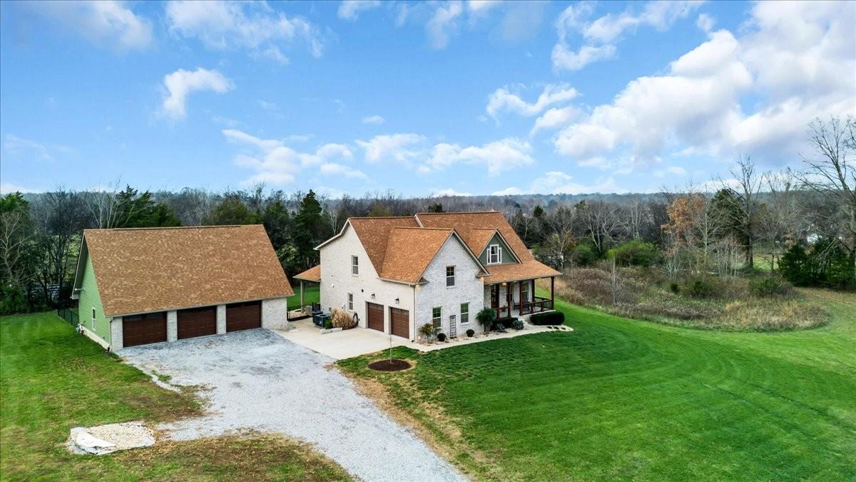 Enjoy peaceful living just minutes from Clarksville and Ft. Campbell, with 3 easy routes to Nashville. This beautiful all- brick home sits on 3+ acres with no backyard neighbors, a fenced yard, and a picturesque pond - plenty of room for a pool or whatever you desire! Inside you will find 4 bedrooms, 2.5 baths, and 2600 sq ft of comfortable living space. The spacious bonus room is perfect for a home theatre, playroom or office. The primary suite features an oversized soaking tub for ultimate relaxation. Hardwood floors flow through the main living areas, and tile accents all wet spaces. The gorgeous kitchen includes a 36” gas stove, fridge, dishwasher and microwave. Outside, a 1200 sq ft detached 3 bay shop offers 12 ft ceilings, heat, water and even a lift - ideal for hobbyists or small business owners. An additional outbuilding provides even more storage. This property is the perfect blend of country charm and modern convenience- a peaceful setting ready for your next chapter (and your next project!).