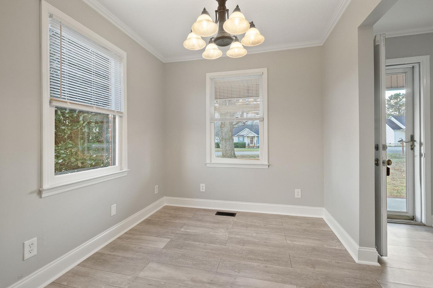 All-brick 3 bedroom, 2 bath home with LVP flooring throughout for easy living. The kitchen features a crisp tile backsplash, and the bathroom offers a tiled shower. An attached carport and concrete drive provide convenient parking. Recent updates include a new roof, updated landscaping, fresh interior paint, and new light fixtures, giving the home a clean and updated feel. Move-in ready and low maintenance.