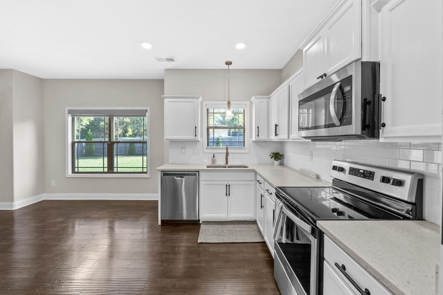 Welcome home! This move-in ready gem sits in the highly desirable Sango area and shines with sleek modern touches — quartz countertops, stainless steel appliances, and absolutely no carpet for easy living and effortless cleanup. This charming 4-bed, 2.5-bath beauty is hitting the market thanks to a job relocation — meaning you get the lucky chance to call it home! All four spacious bedrooms are located upstairs, along with a convenient laundry room complete with cabinetry for storage. The vaulted primary suite offers a spa-like escape featuring a jetted tub, separate shower, and two walk-in closets for all the space you could want. Modern Contemporary kitchen with quartz counters, ample white cabinets with Stainless Steel appliances. Dining room features custom ceiling millwork and wainscoting. Step outside and unwind on the covered back patio, where open skies stretch behind you and no backyard neighbors offer added peace and privacy. The fenced yard is perfect for play, pets, or simply enjoying your view. Designed for comfort and function, this open layout makes everyday living smooth and entertaining a joy. Just minutes from shopping, restaurants, and everything Sango has to offer — it’s the ultimate place to call home. Perfectly placed for life on the move! Zip onto I-24 or hop over to 41A for a smooth cruise straight to Nashville one way and Fort Campbell the other. Zoned for Sango Elementary and the popular Richview Middle & Clarksville High School campus, school commutes are a breeze. With a two-car garage, smart floorplan, and well-kept systems, this home is truly turnkey. Schedule your showing today — this one is ready when you are.