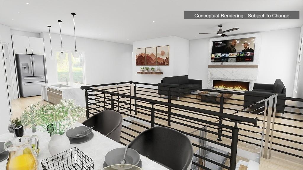 This fully renovated 4-bedroom, 3-bath luxury estate sits on 4.5 private acres just minutes from Clarksville and has been taken down to the studs with a completely new custom floor plan. The open-concept main living area features soaring ceilings with wrapped beams, LED recessed lighting, and an electric fireplace. The kitchen offers granite countertops, stainless steel appliances, a walk-in corner pantry, center island, and modern soft close cabinetry. A dedicated office with oversized windows fills the space with natural light and overlooks the in-ground pool. The main-level primary suite is a private retreat with its own electric fireplace and a spacious en-suite bath. The fully finished basement includes a large rec room with a third electric fireplace, trey ceiling, a bar-ready area with a full bar build-out available as an upgrade, and a built-in finished storm shelter for added peace of mind. Additional highlights include inground pool with brand new pool pump, new HVAC, new roof, new ductwork, new drywall, luxury vinyl plank flooring, tile, and soft modern carpet in select areas, a cedar-wrapped front porch, full concrete driveway, oversized 625 sqft attached 2-car garage, and a 720 sqft finished detached heated and cooled 2-car garage/shop with power. Every detail has been carefully curated for luxury, comfort, and privacy. ***Rendered photos do not reflect the open ceiling and wrapped beams***