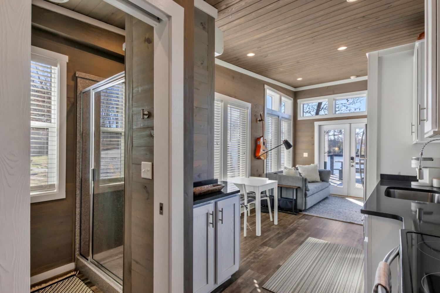 Welcome to your turnkey escape on Monteagle Mountain, nestled on the quiet side of the gated Water’s Edge Retreat community. This beautifully appointed tiny home with waterfront access offers the perfect blend of comfort, charm, & convenience—ideal as a vacation getaway, short-term rental investment or even primary residence. Enjoy the ease & functionality of one level living with two dedicated bedrooms & 1 full bath. This thoughtfully designed home sleeps up to eight guests with custom built bunk beds in one room, a queen in the next bedroom, & a queen sleeper sofa in the living. Offered fully furnished & ready to rent or enjoy. The modern kitchen includes a dishwasher & is well-equipped for entertaining with its expandable kitchen table, owners closet & pantry for extended stays, while the in-home washer & dryer provide everyday convenience for owners & quest. Step outside & you’ll immediately appreciate the huge front deck, ideal for dining, relaxing, and enjoying peaceful lake views. Unwind in the hammock swings, gather around the fire pit in the evenings, or stroll down to your own private beach for swimming and lakeside lounging. The community dock is just steps away, providing quick and easy access to the water to launch your kayak, go fishing, or simply enjoying the lake lifestyle. Additional highlights include abundant under-deck storage and a dedicated dog run, making this property both practical & pet-friendly. Quiet, scenic, & completely move-in ready, this Monteagle Mountain gem combines comfort, nature, & convenience in one unforgettable lakefront setting. The Retreat is gated retreat with a 75 acre lake perfect for paddle boarding, swimming & fishing plus, kids love the playground, community pavilions, firepits & kayak rentals. It offers amazing hiking throughout the community, waterfall hike is just down the road & South Cumberland Park offers over 200 miles of outstanding hiking trails, leading to overlooks, waterfalls and great climbing areas.